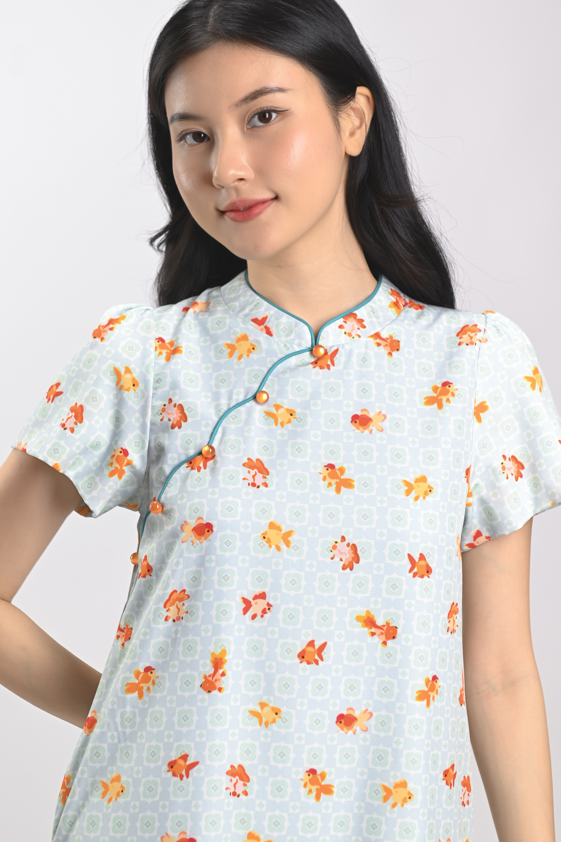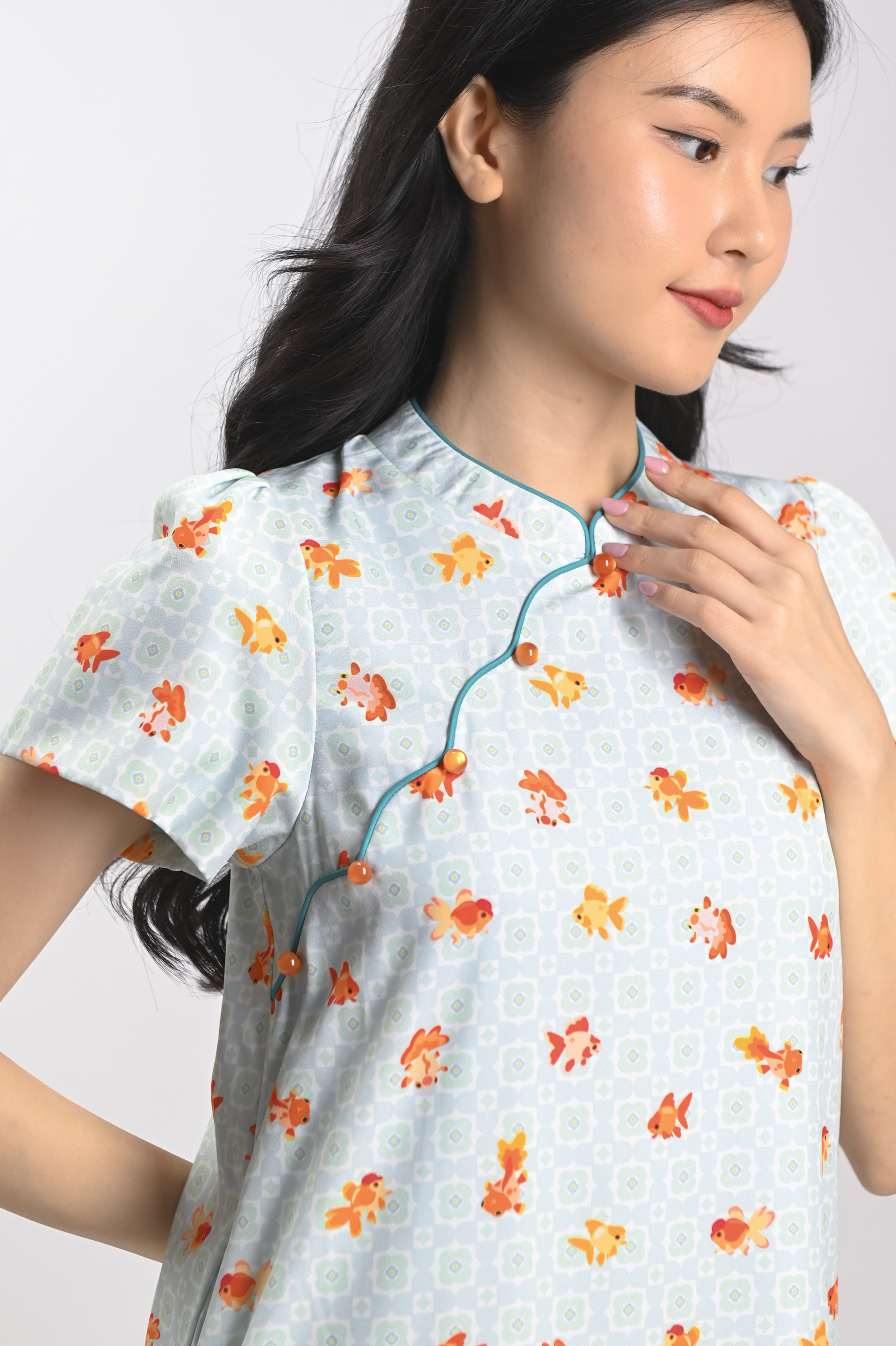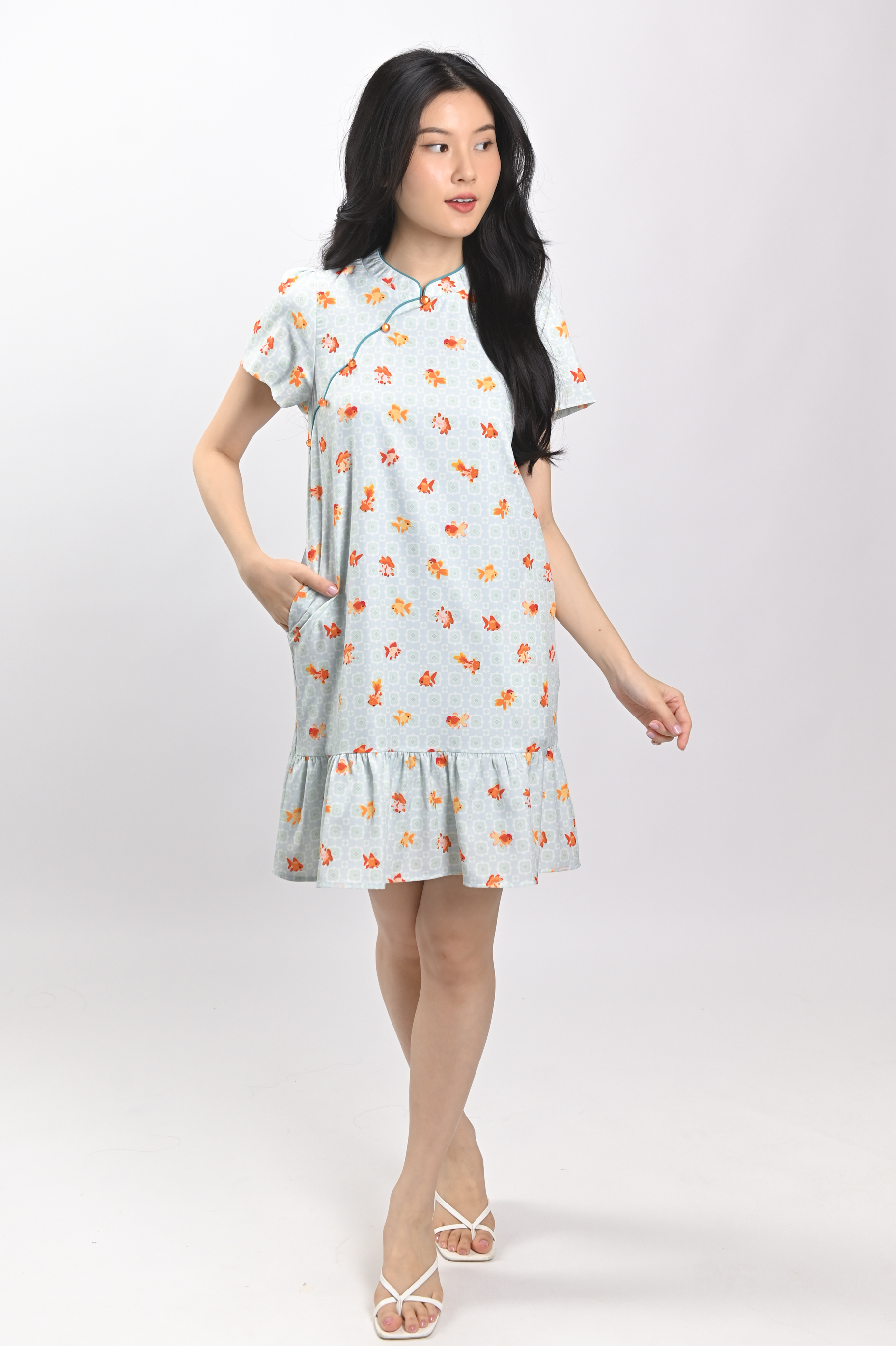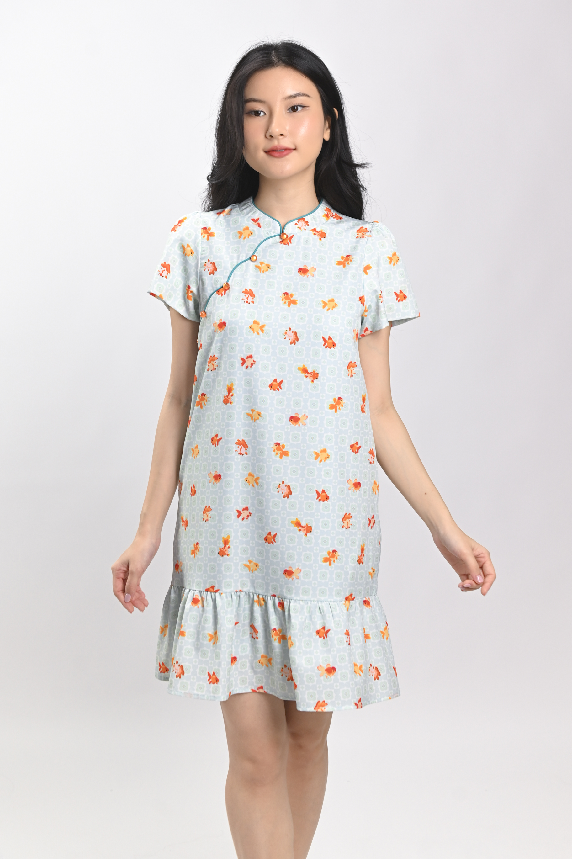 LUCKY RIVER SLEEVED CHEONGSAM DRESS