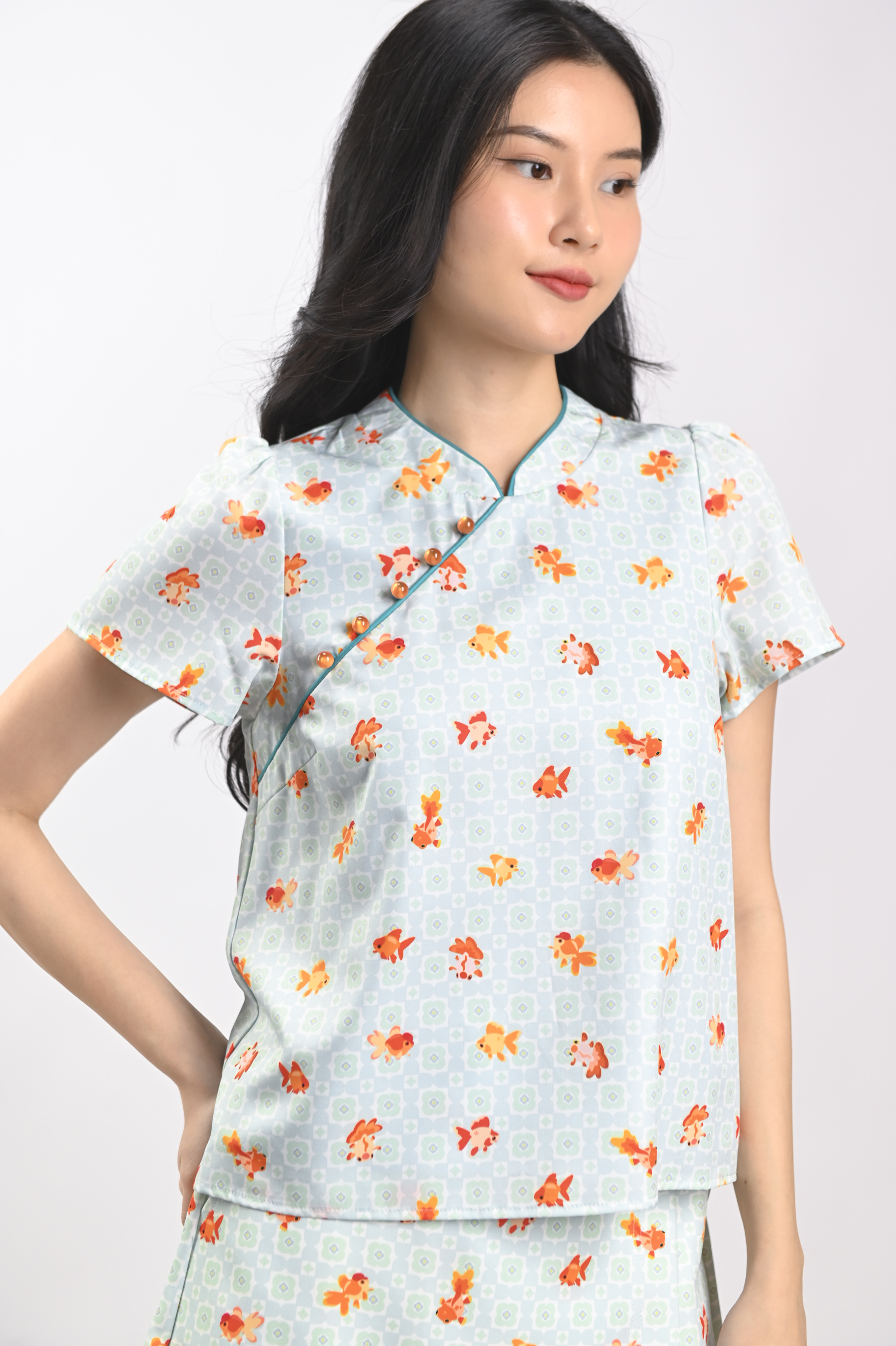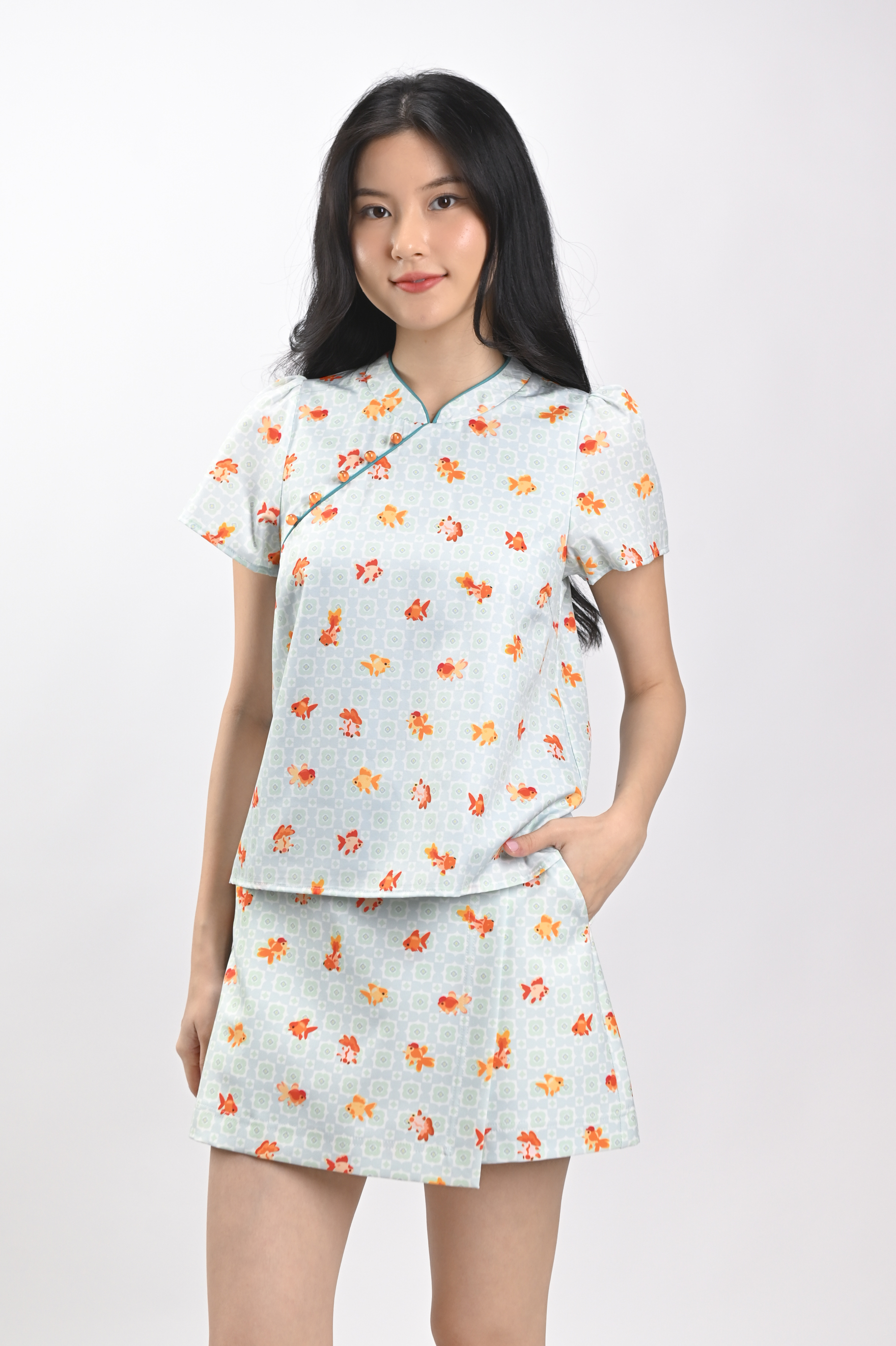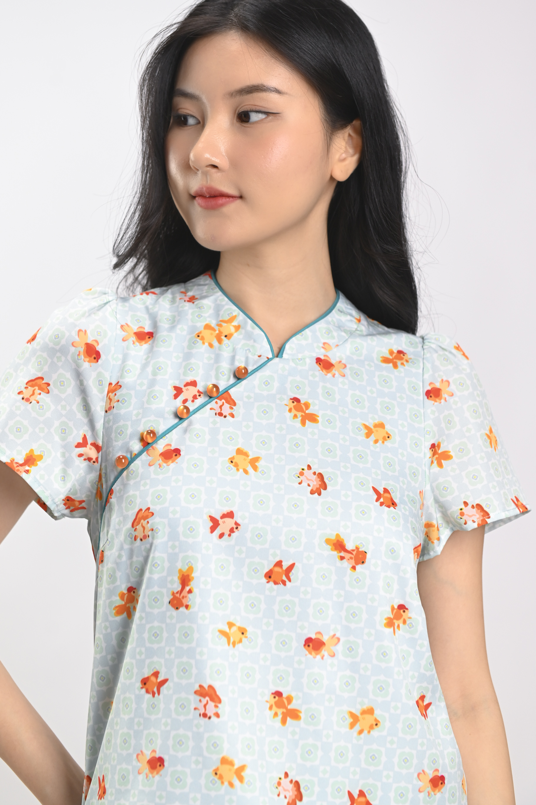 LUCKY RIVER SLEEVED CHEONGSAM TOP