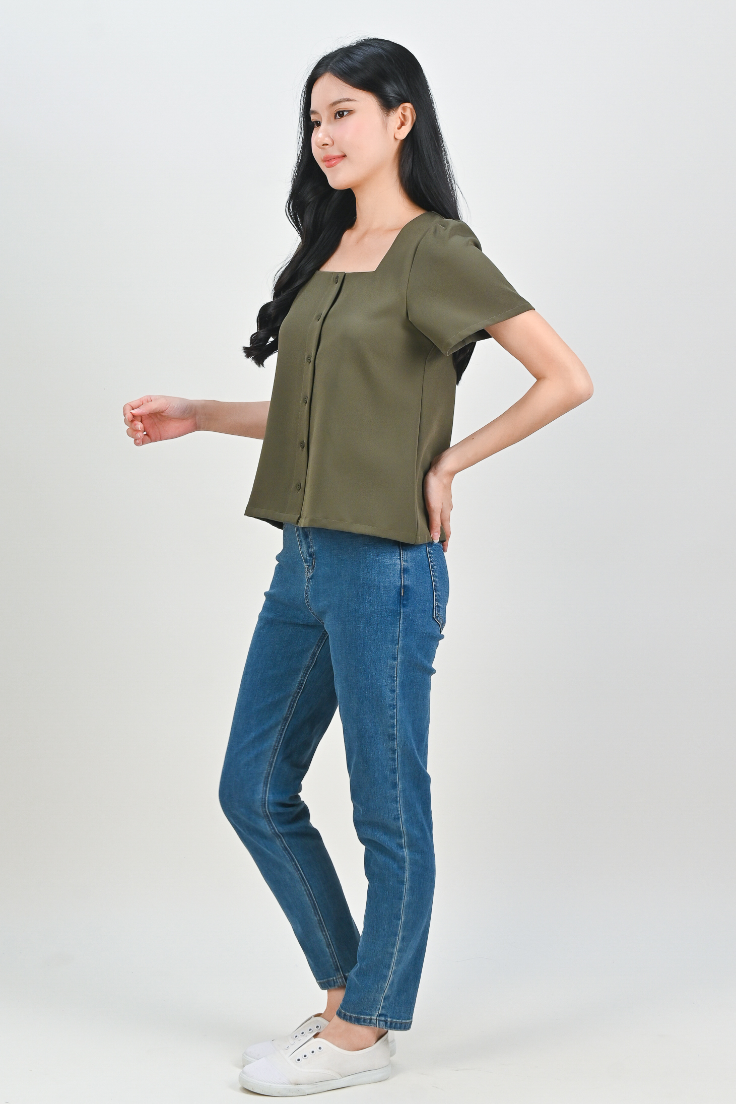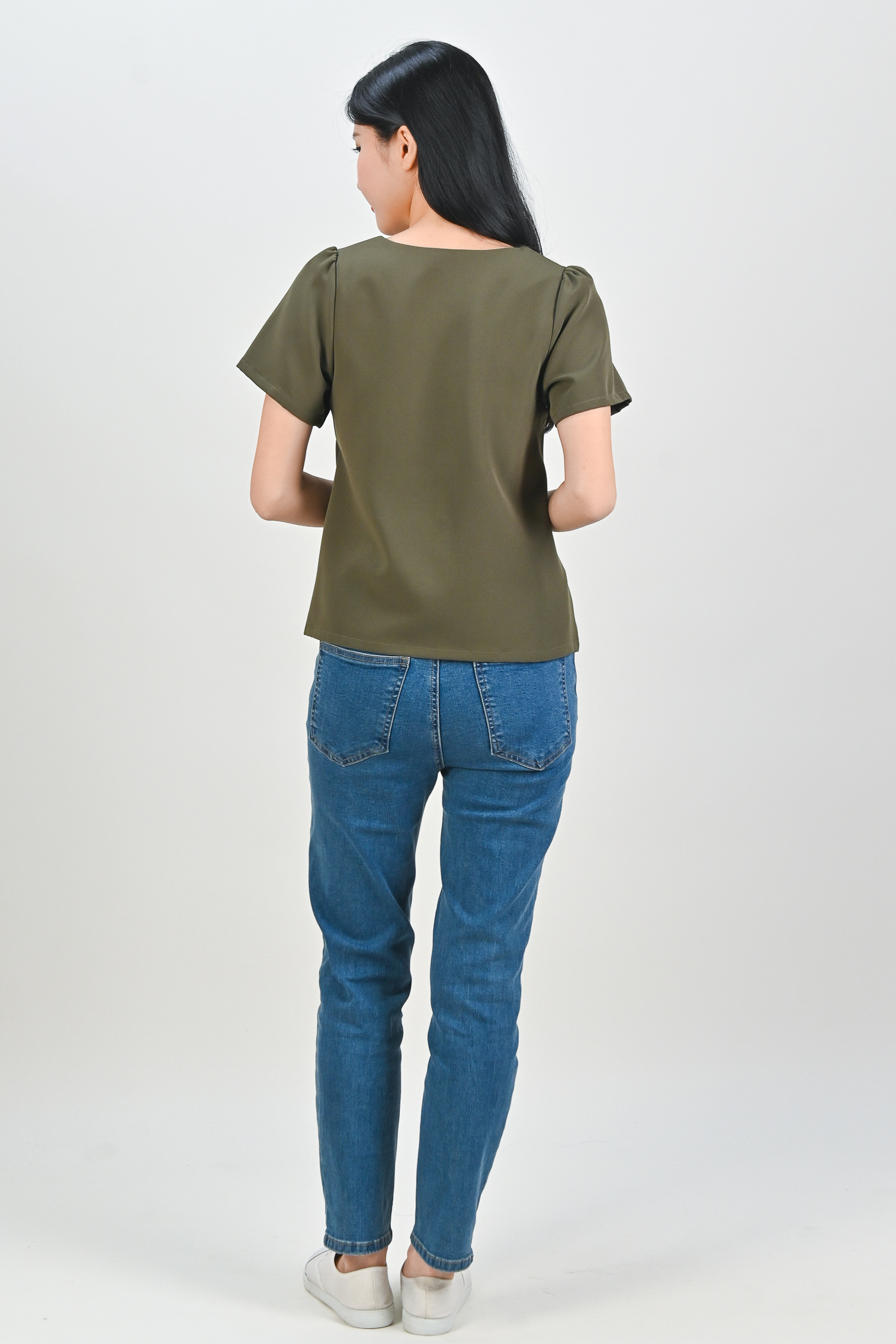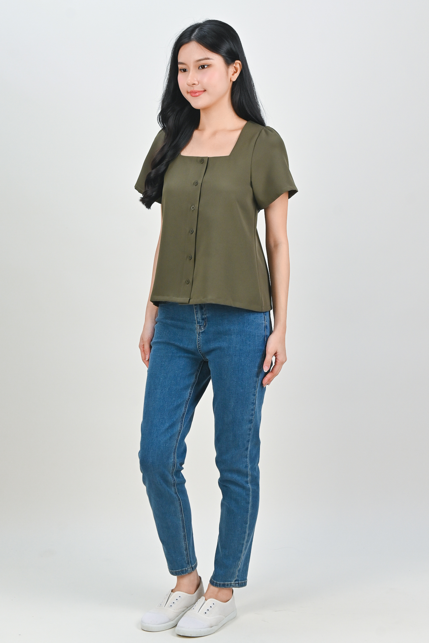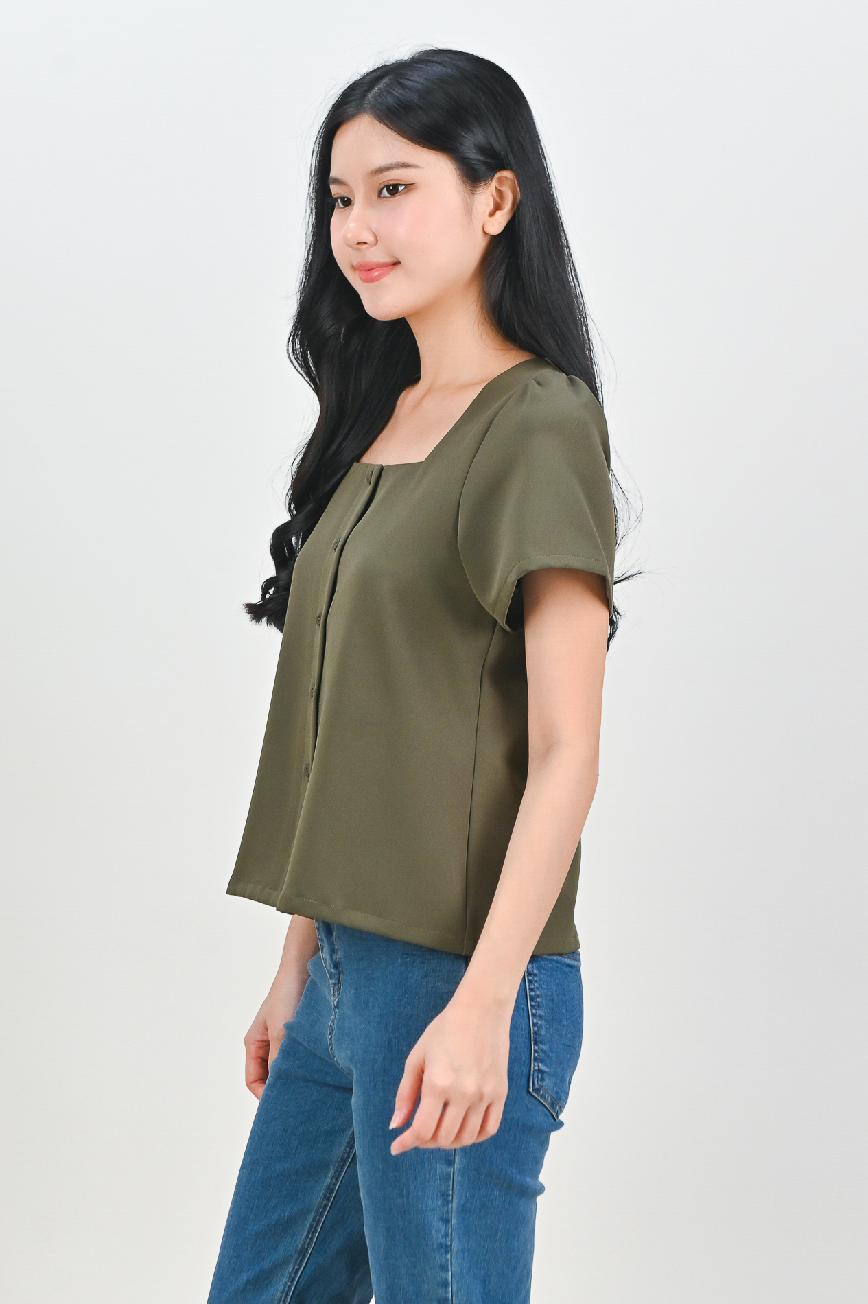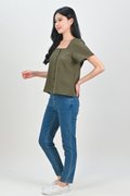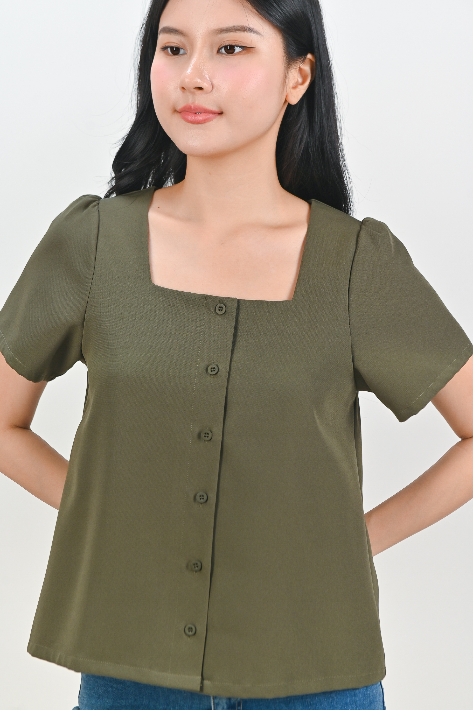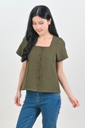 LULIE SQUARE-NECK SLEEVED TOP IN GREEN