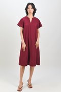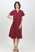 LUMINA V-NECK SLEEVED MIDI DRESS IN WINE