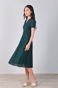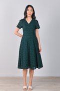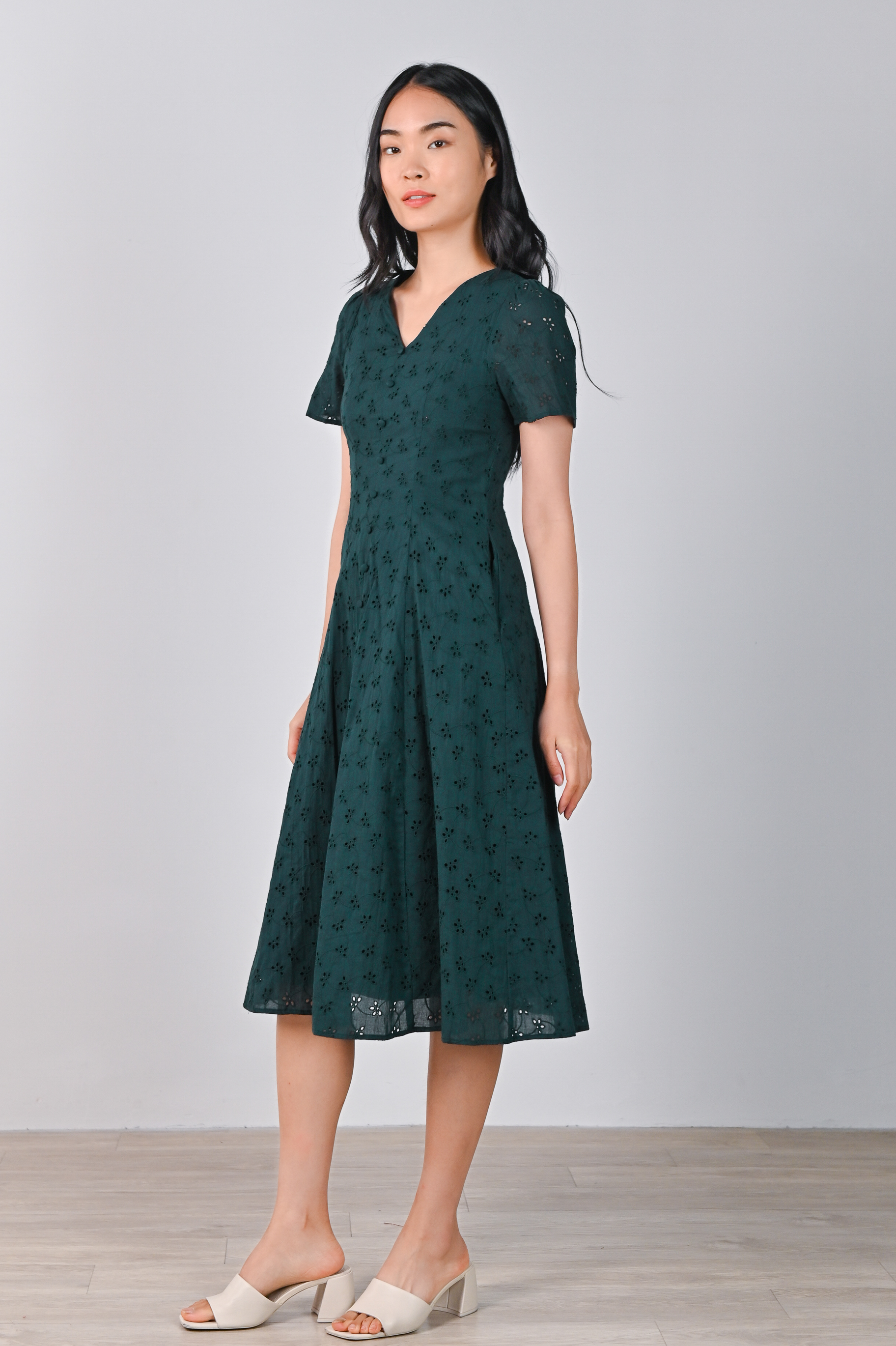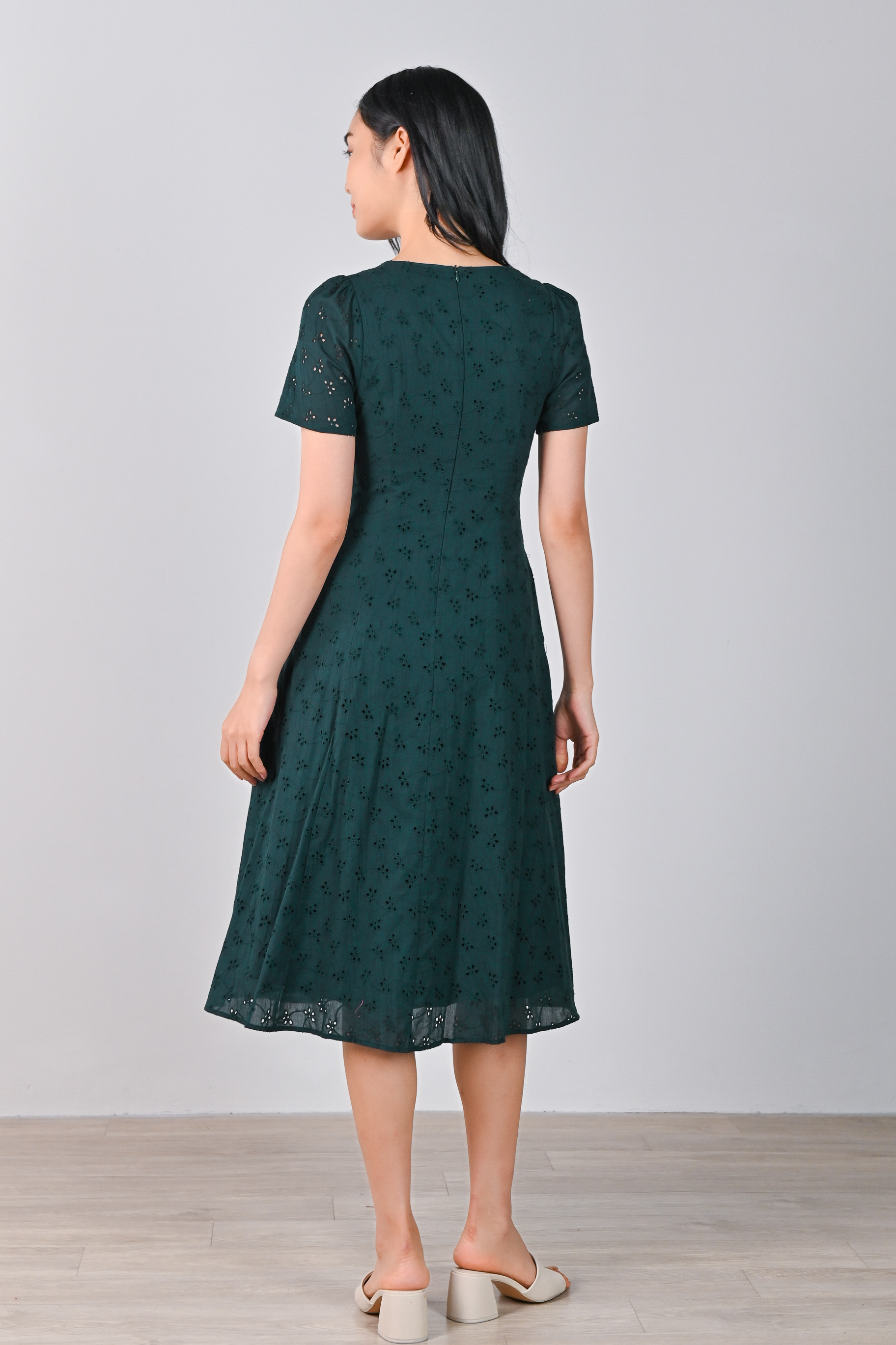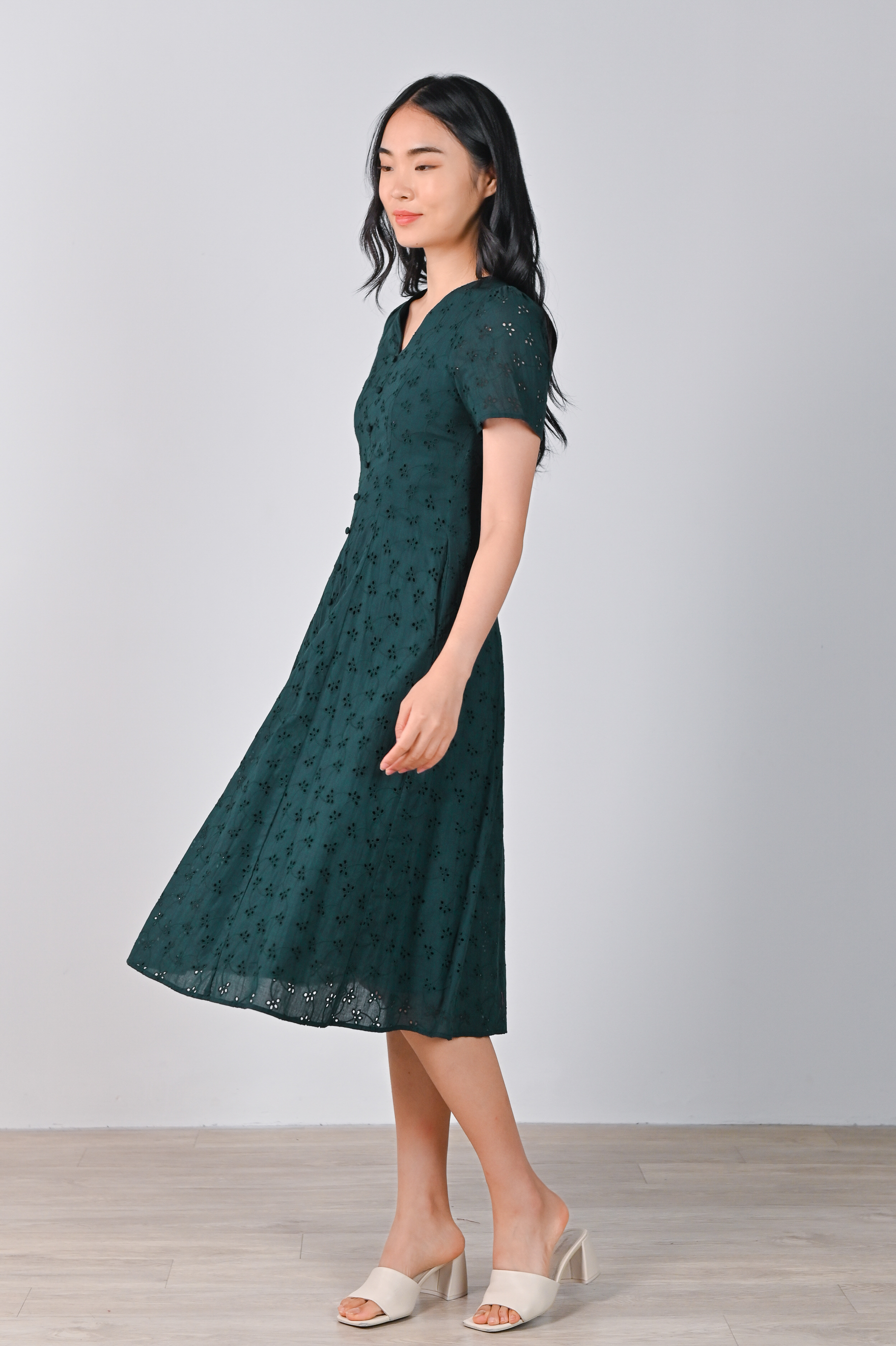 LUNARIA EYELET SLEEVED BUTTON DRESS IN FOREST
