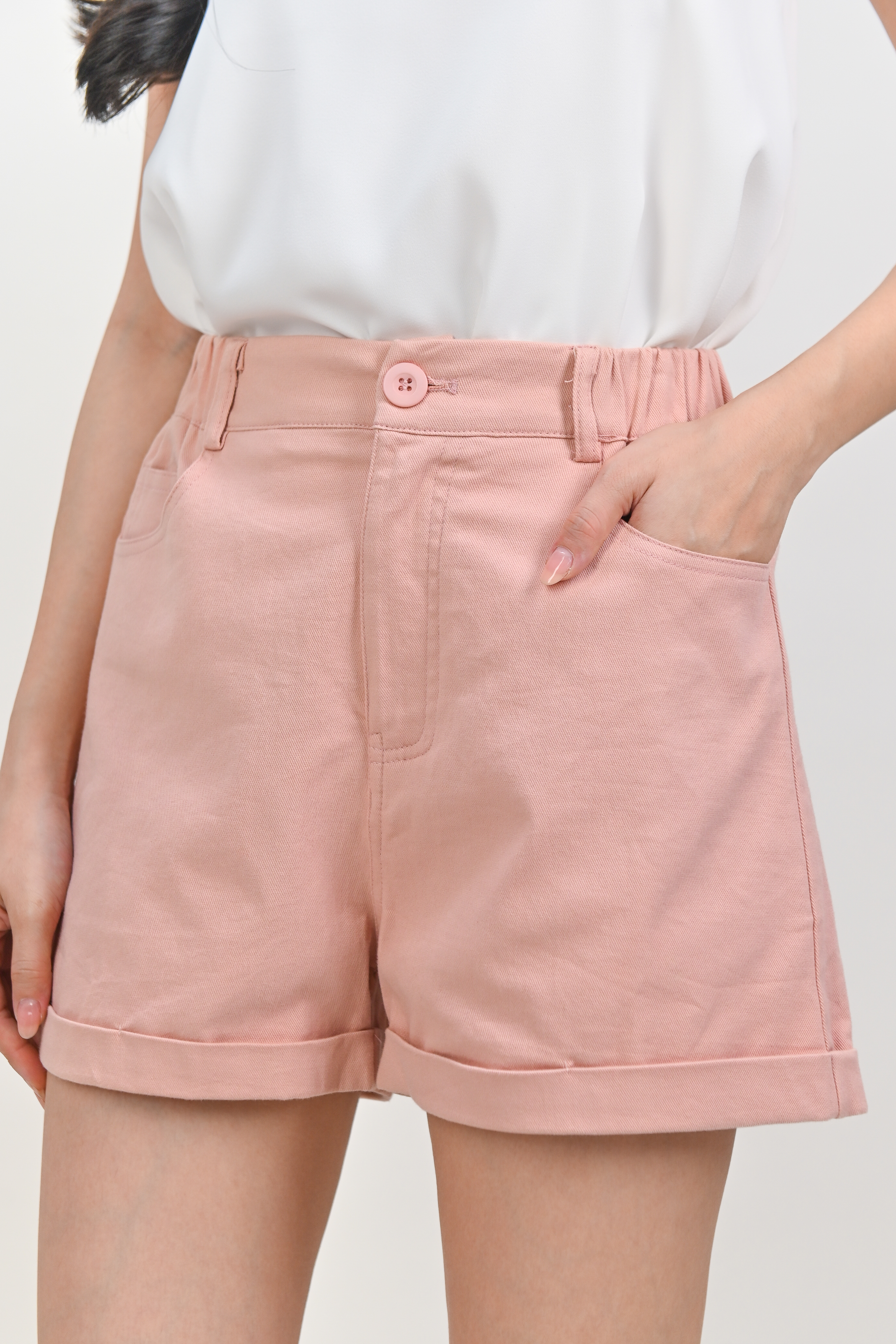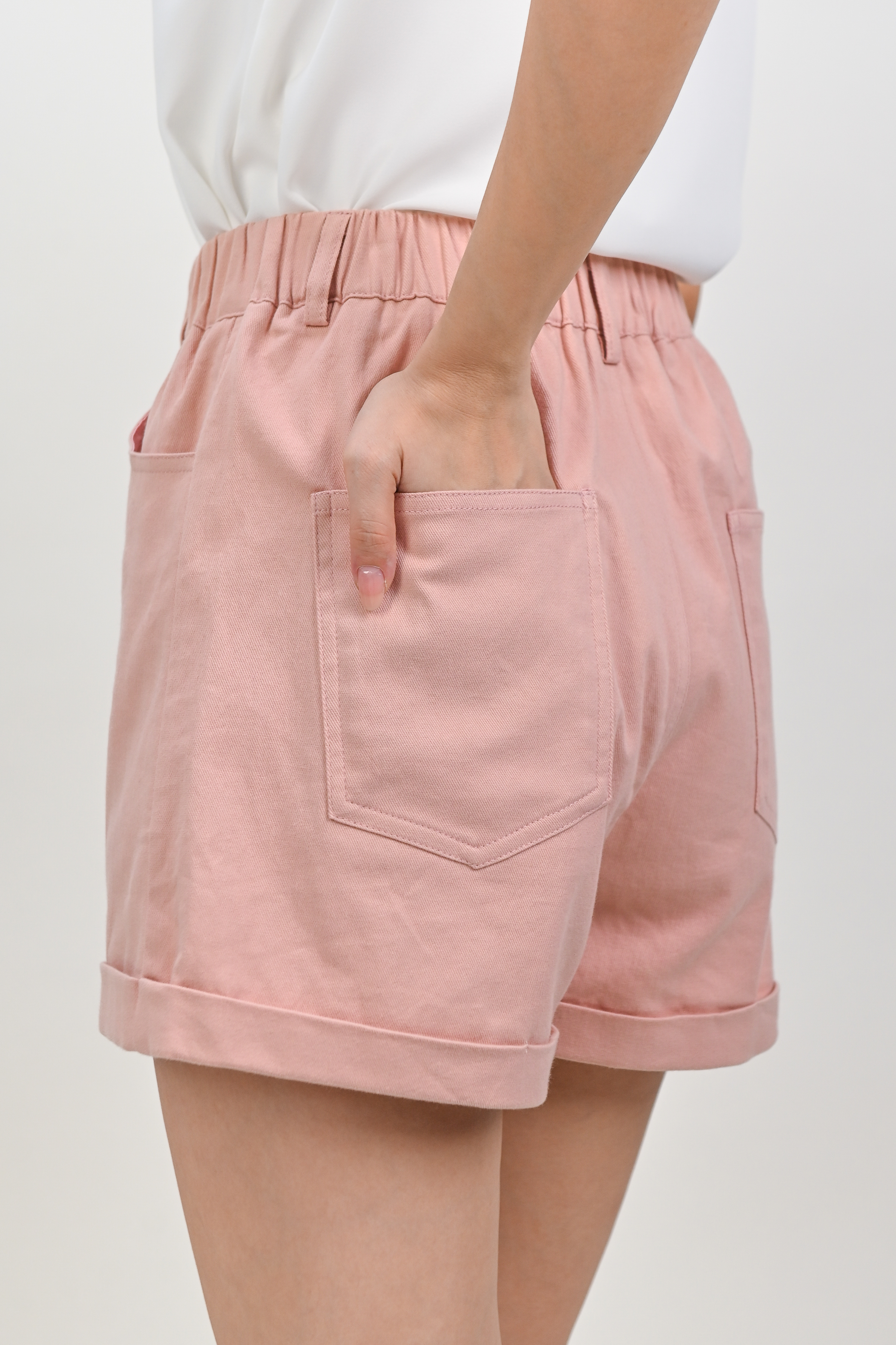 LYNNY ELASTIC-WAIST SHORTS IN PINK