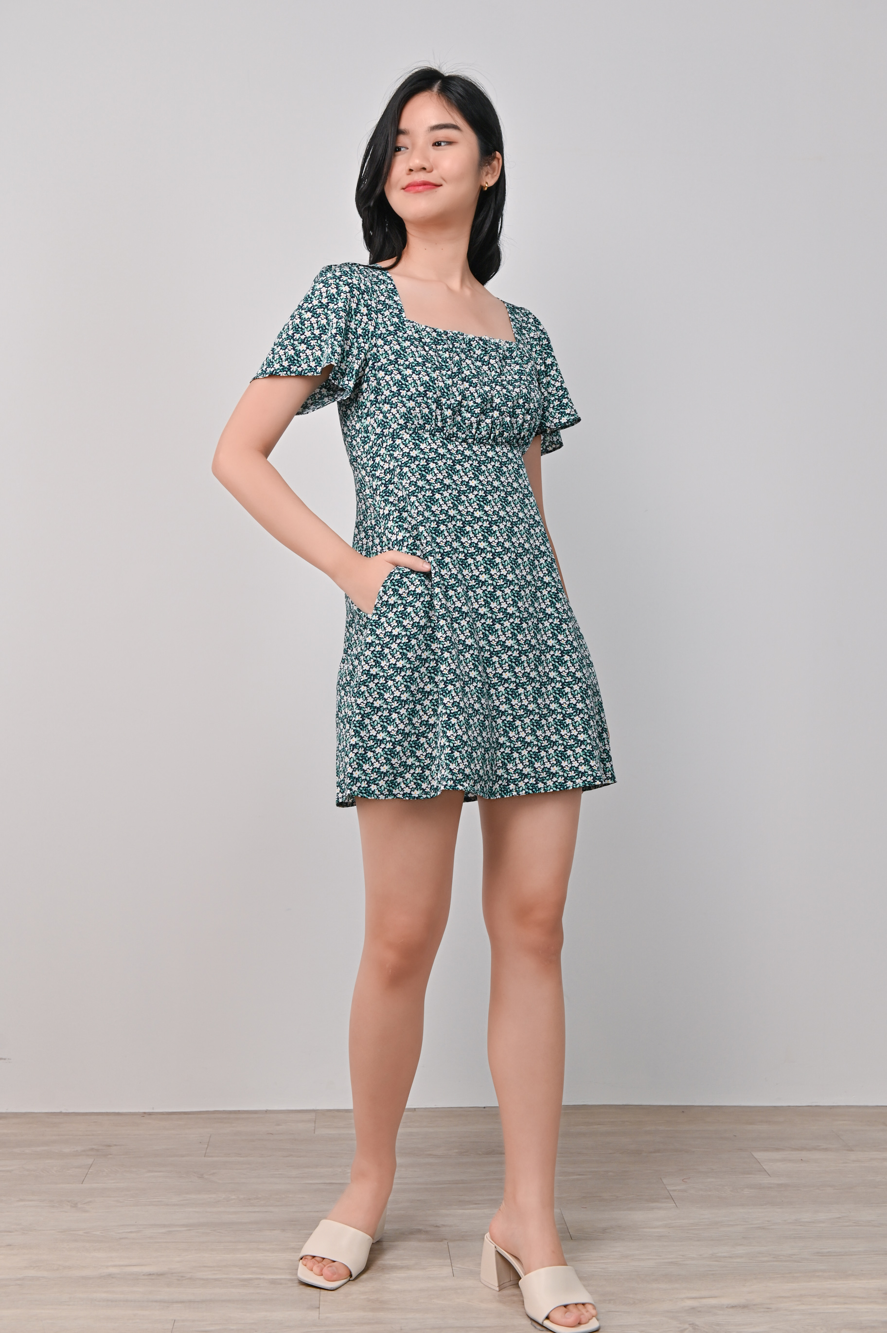 LYRENE FLORAL DRESS-ROMPER IN NAVY
