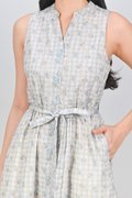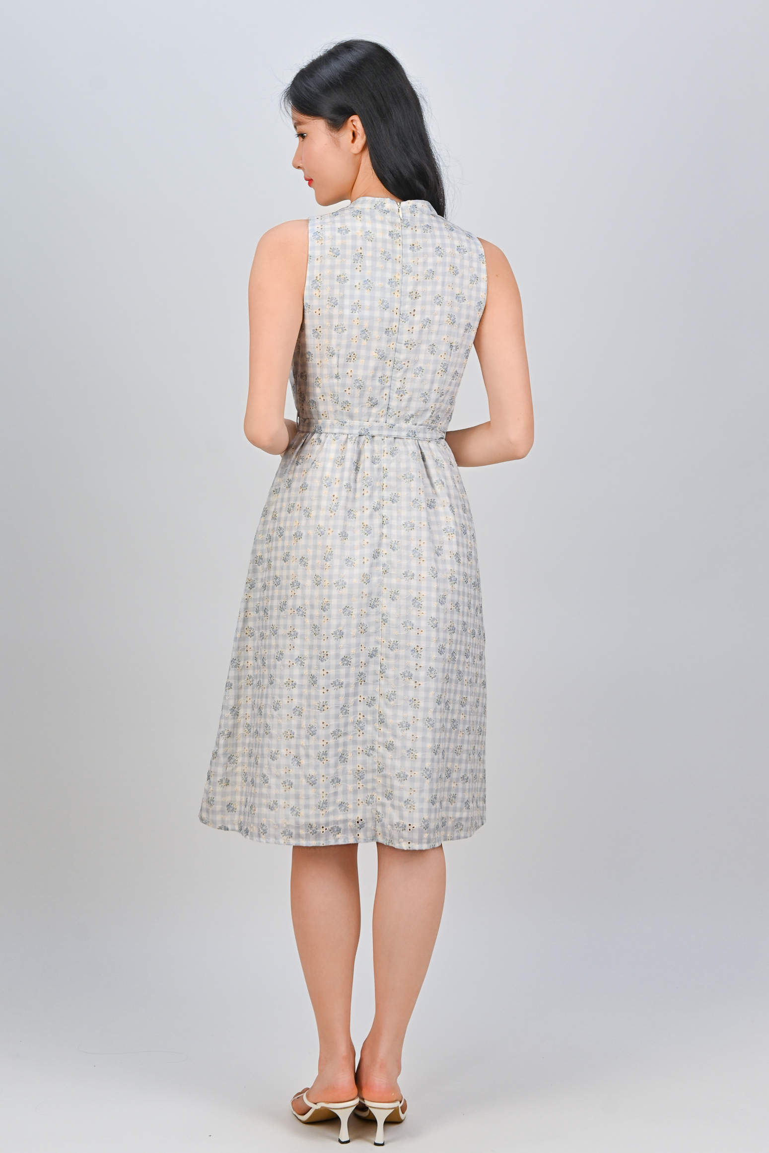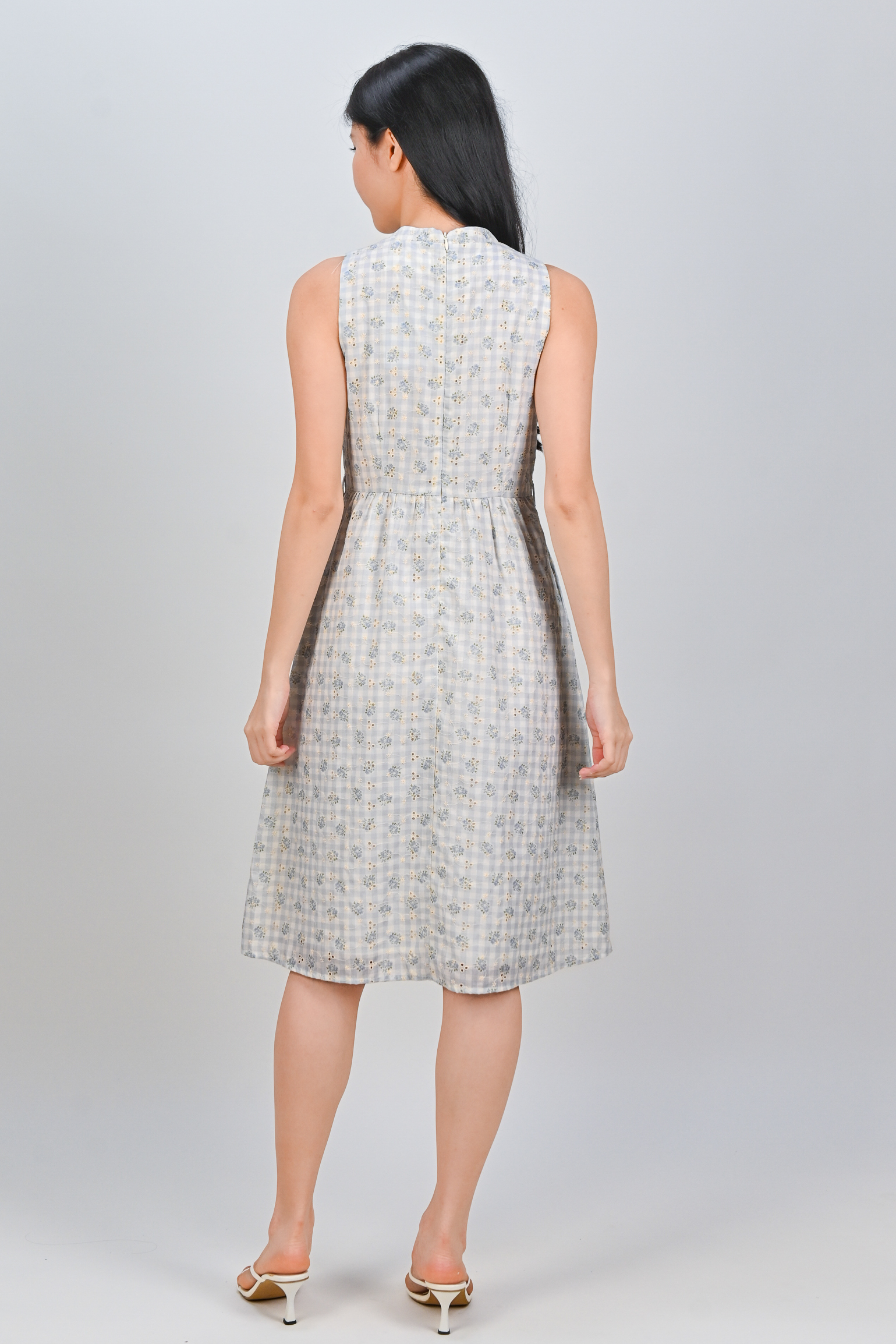MAELIE GINGHAM EYELET SLEEVELESS SHIRT-DRESS