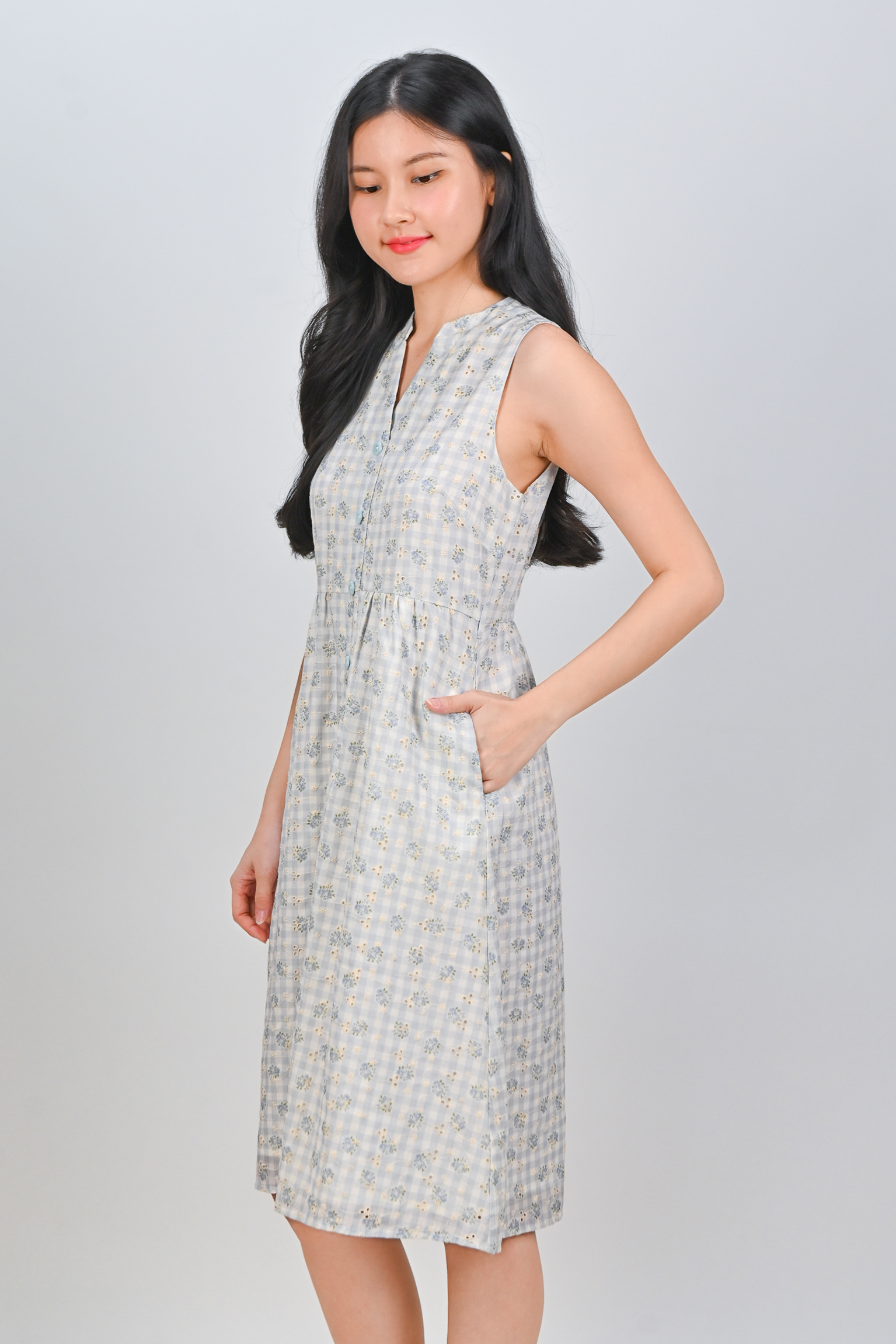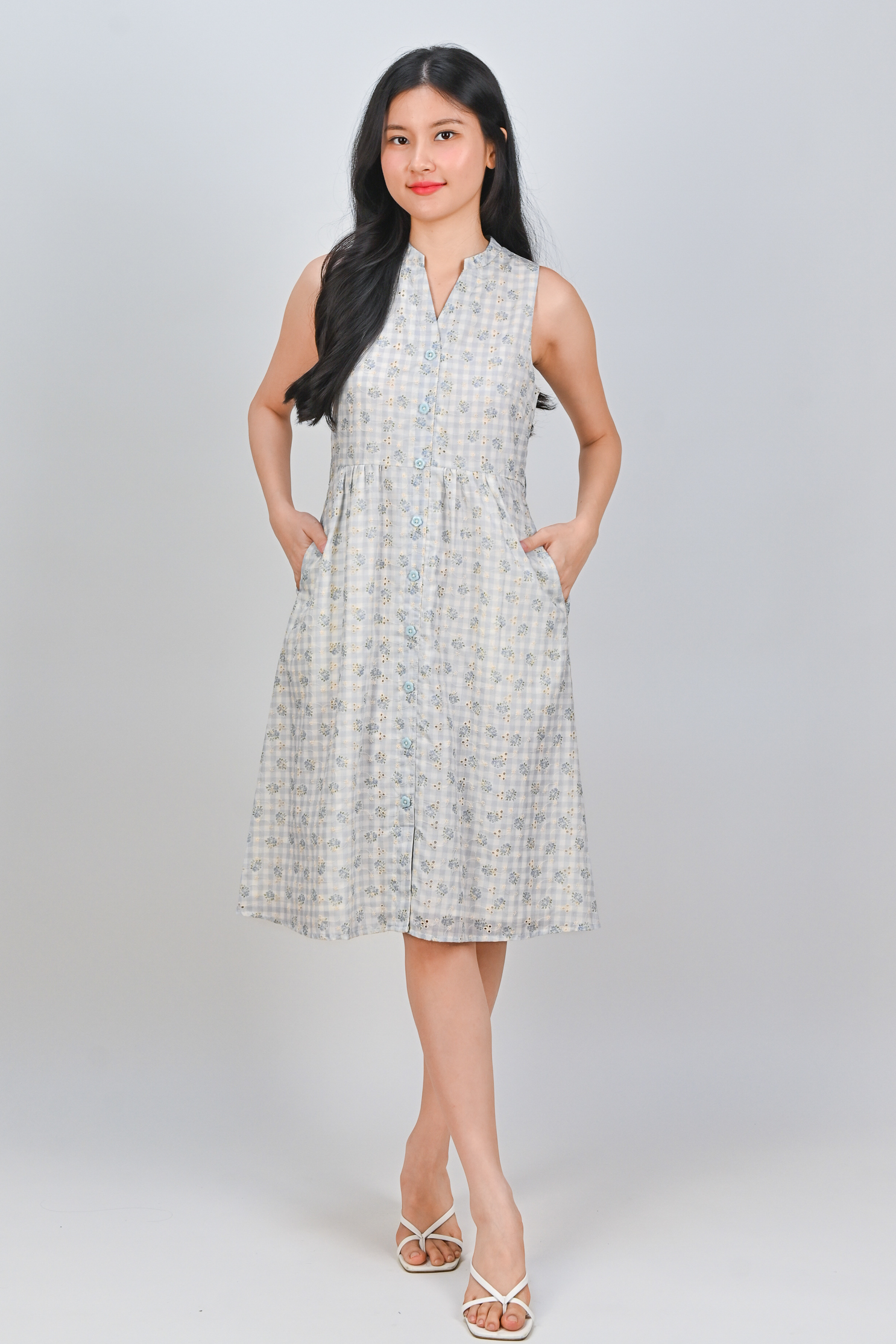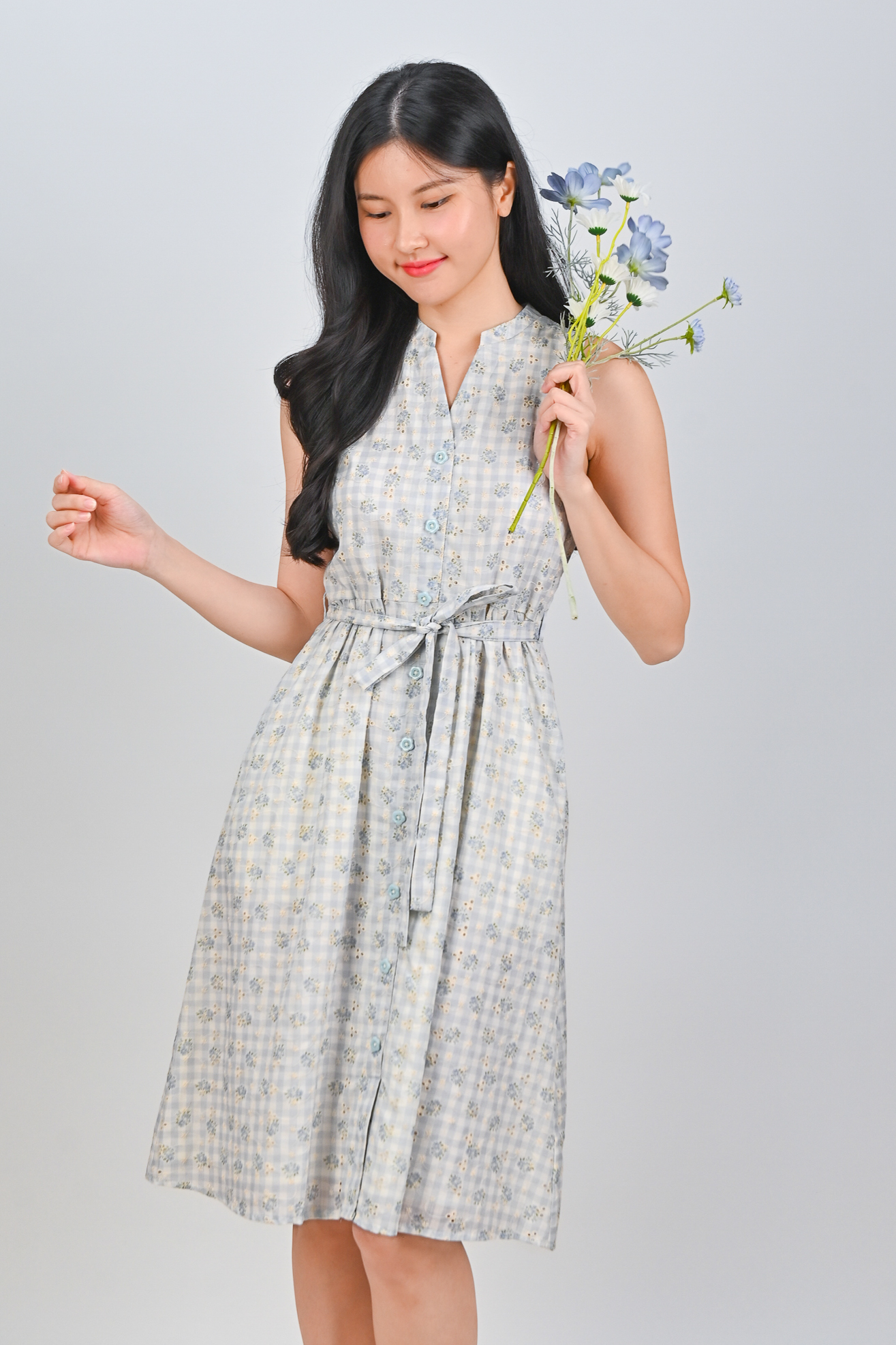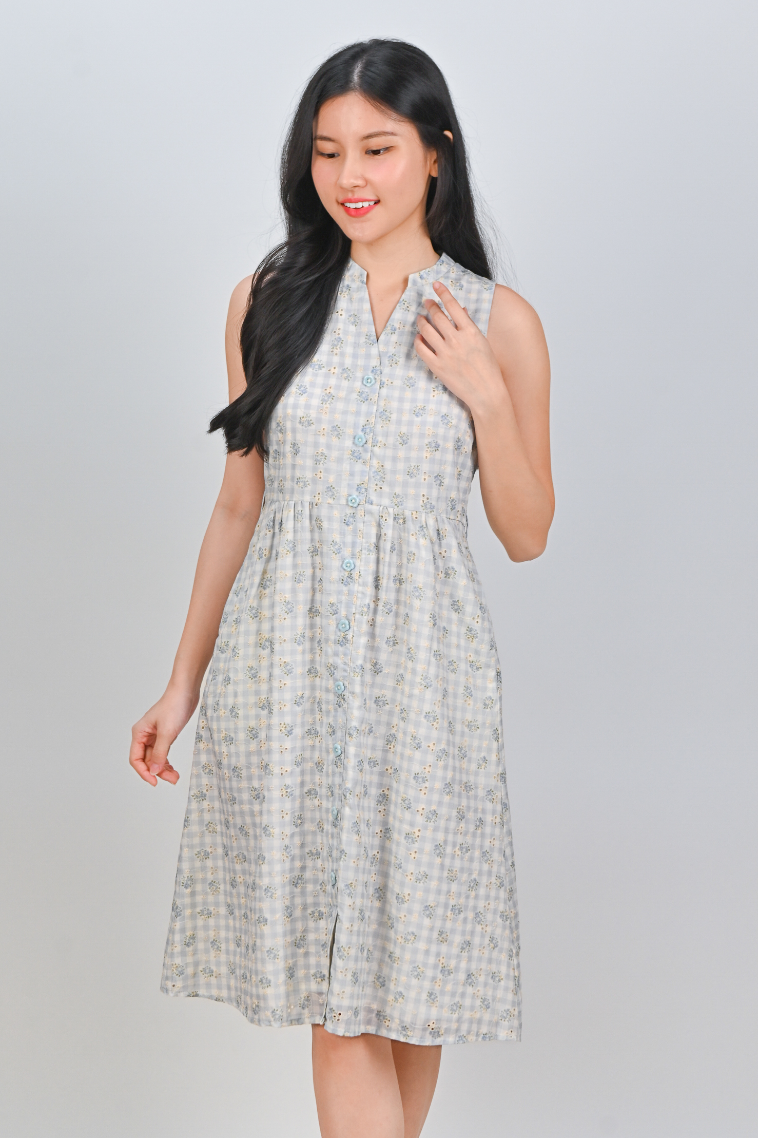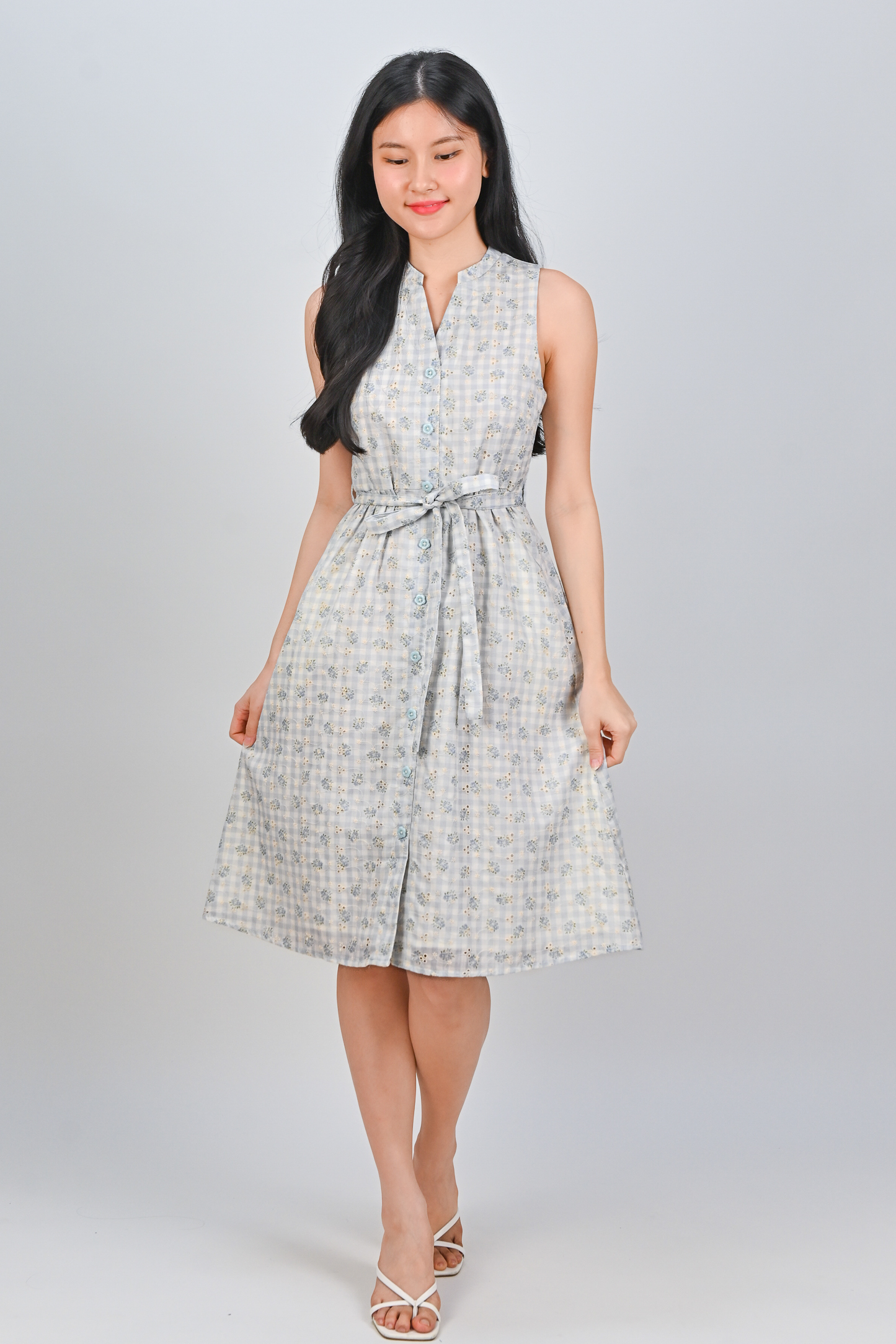Actual stocks may varyGingham checks and flower bursts! Our Maelie Gingham Sleeveless Shirt-Dress is a reminder that style can be both effortless and enchanting! ☀️