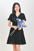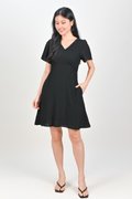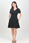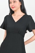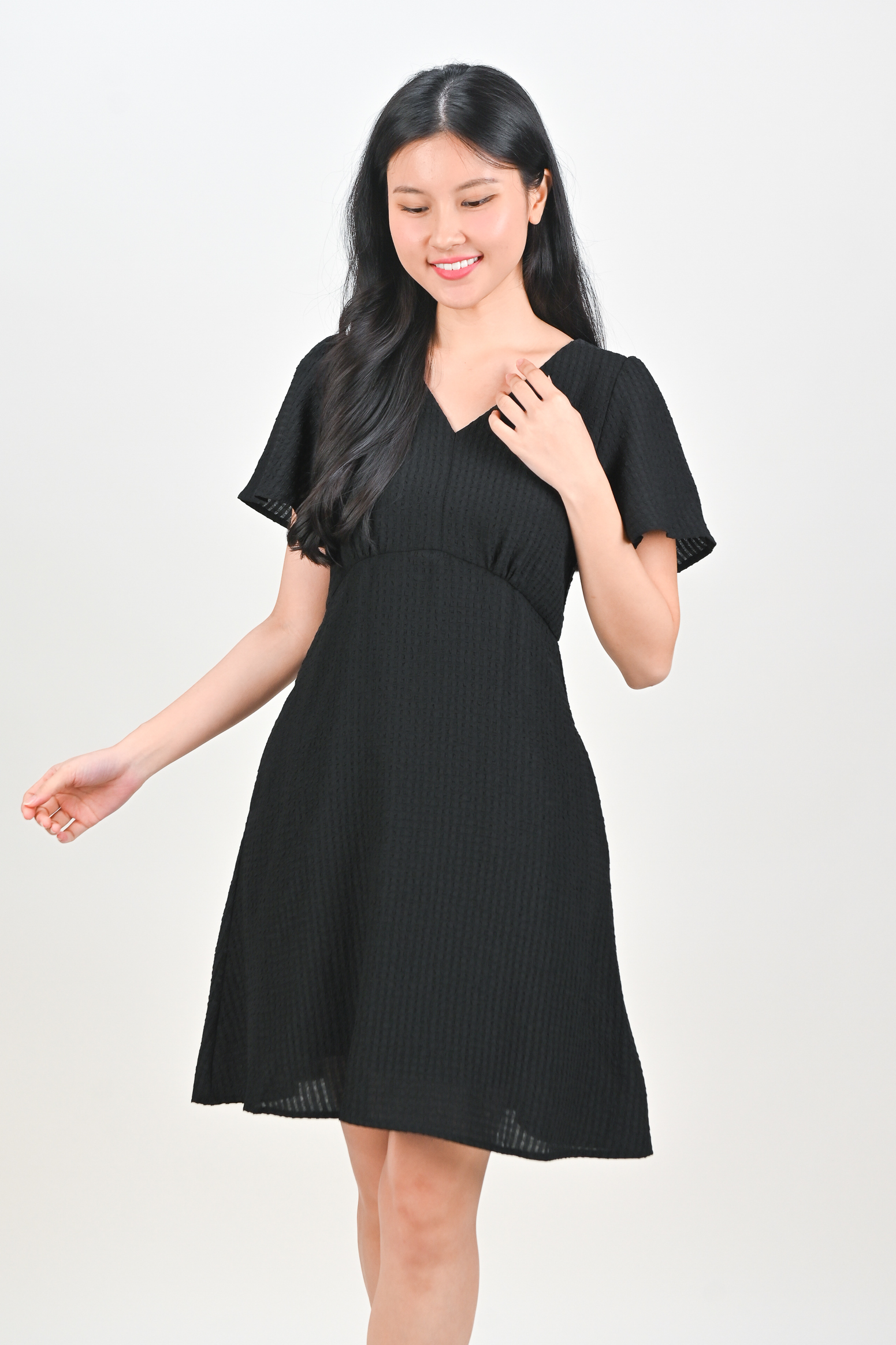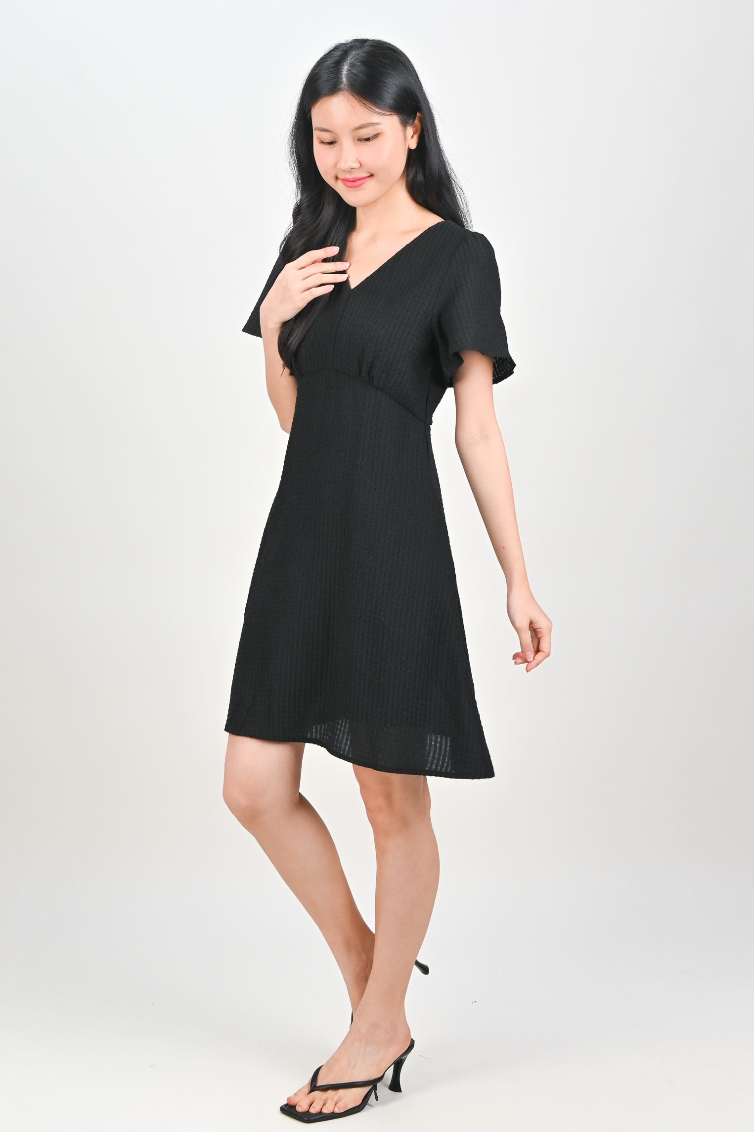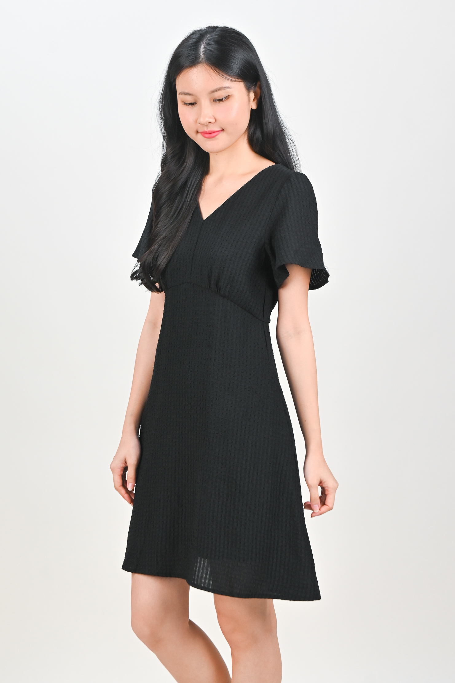 MAGARA TEXTURED SLEEVED DRESS IN BLACK