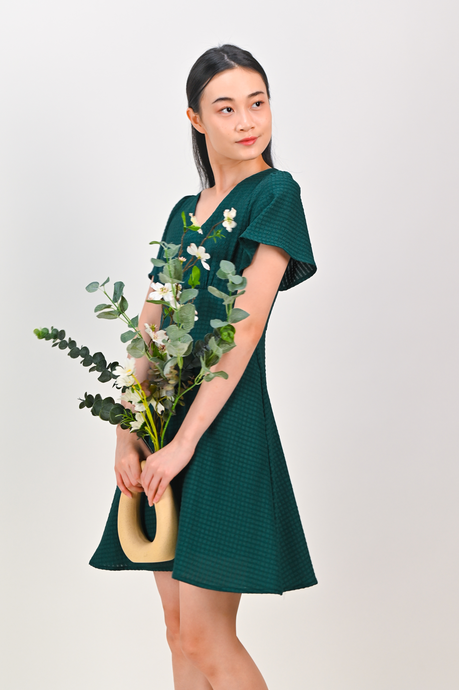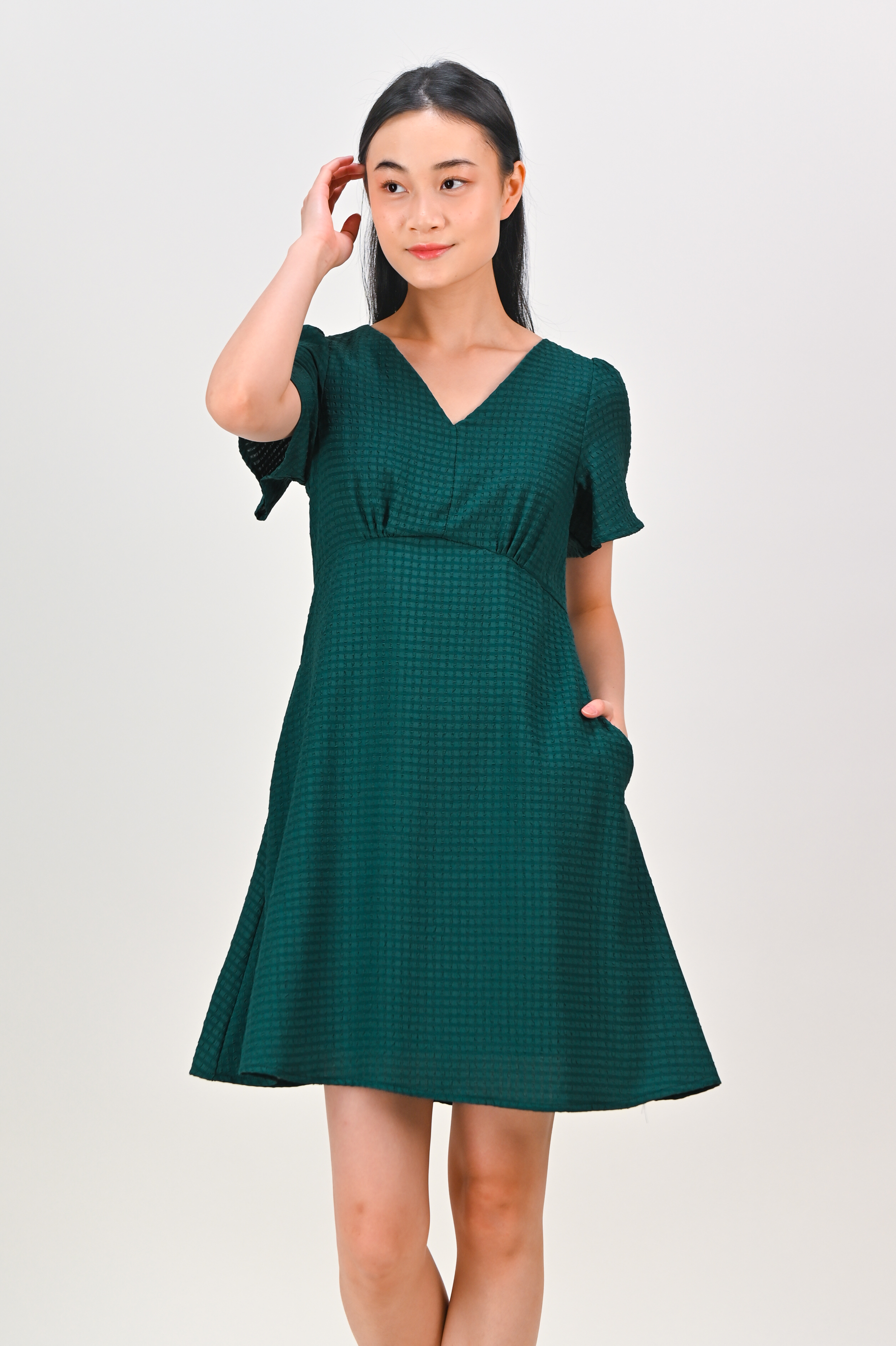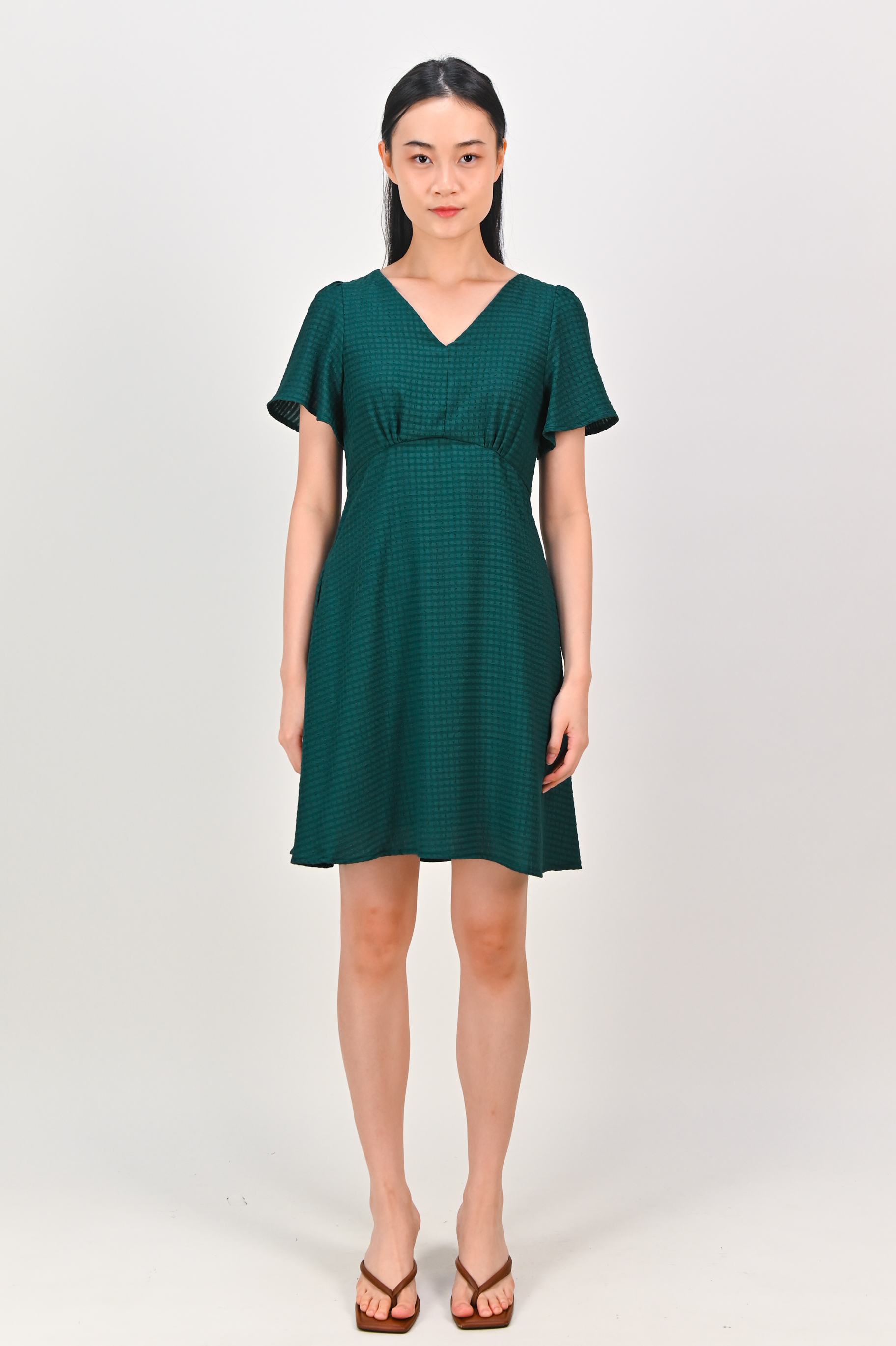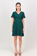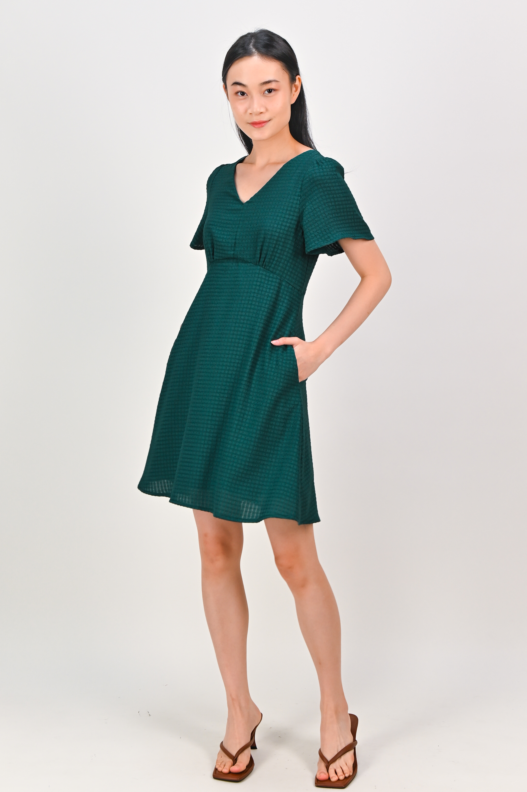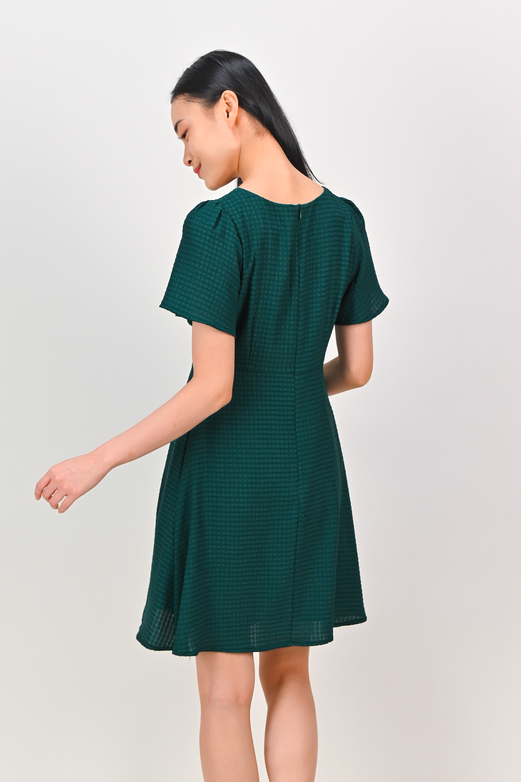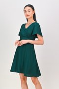 MAGARA TEXTURED SLEEVED DRESS IN FOREST