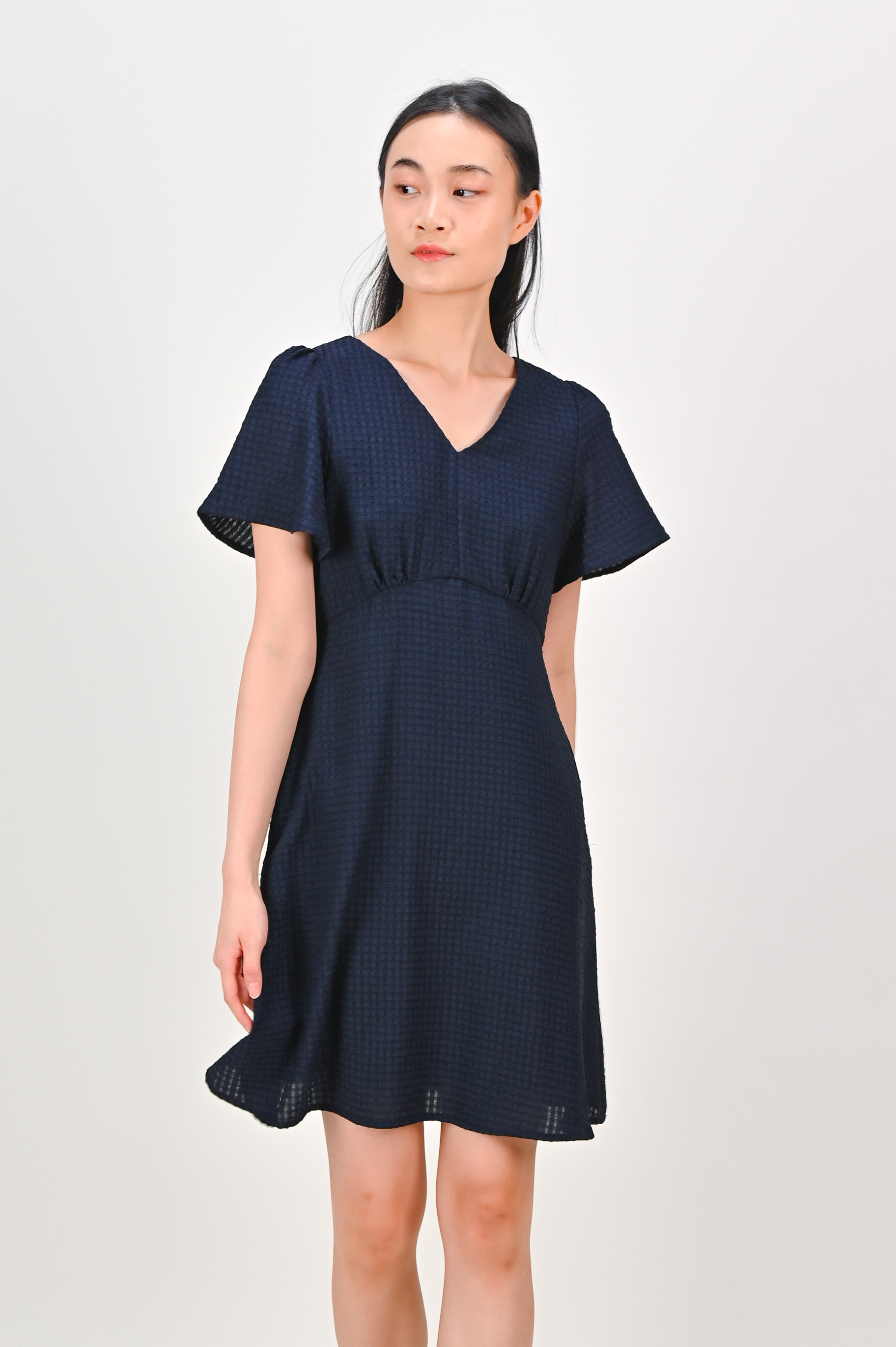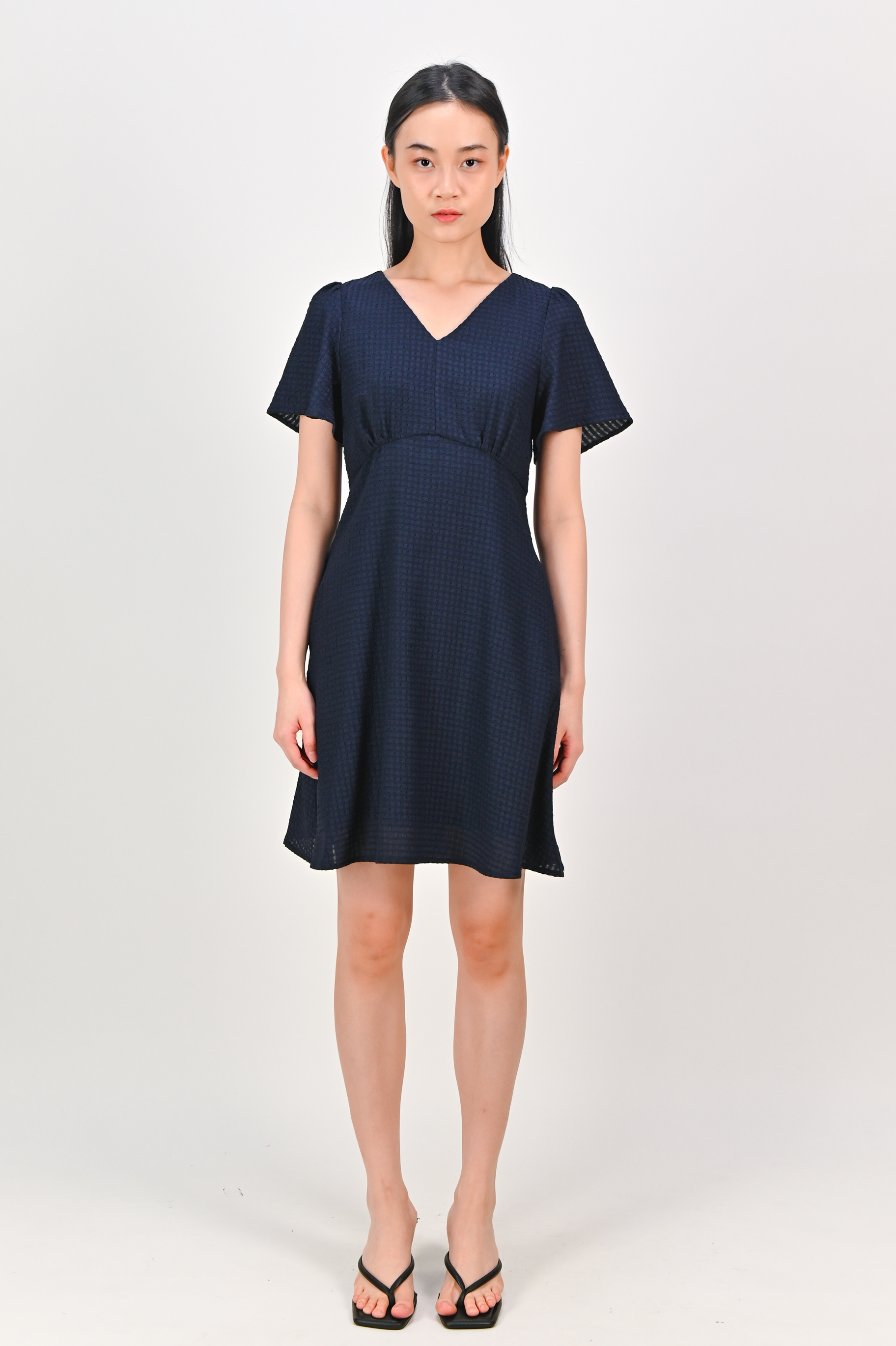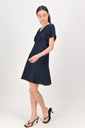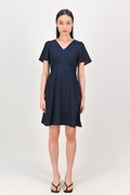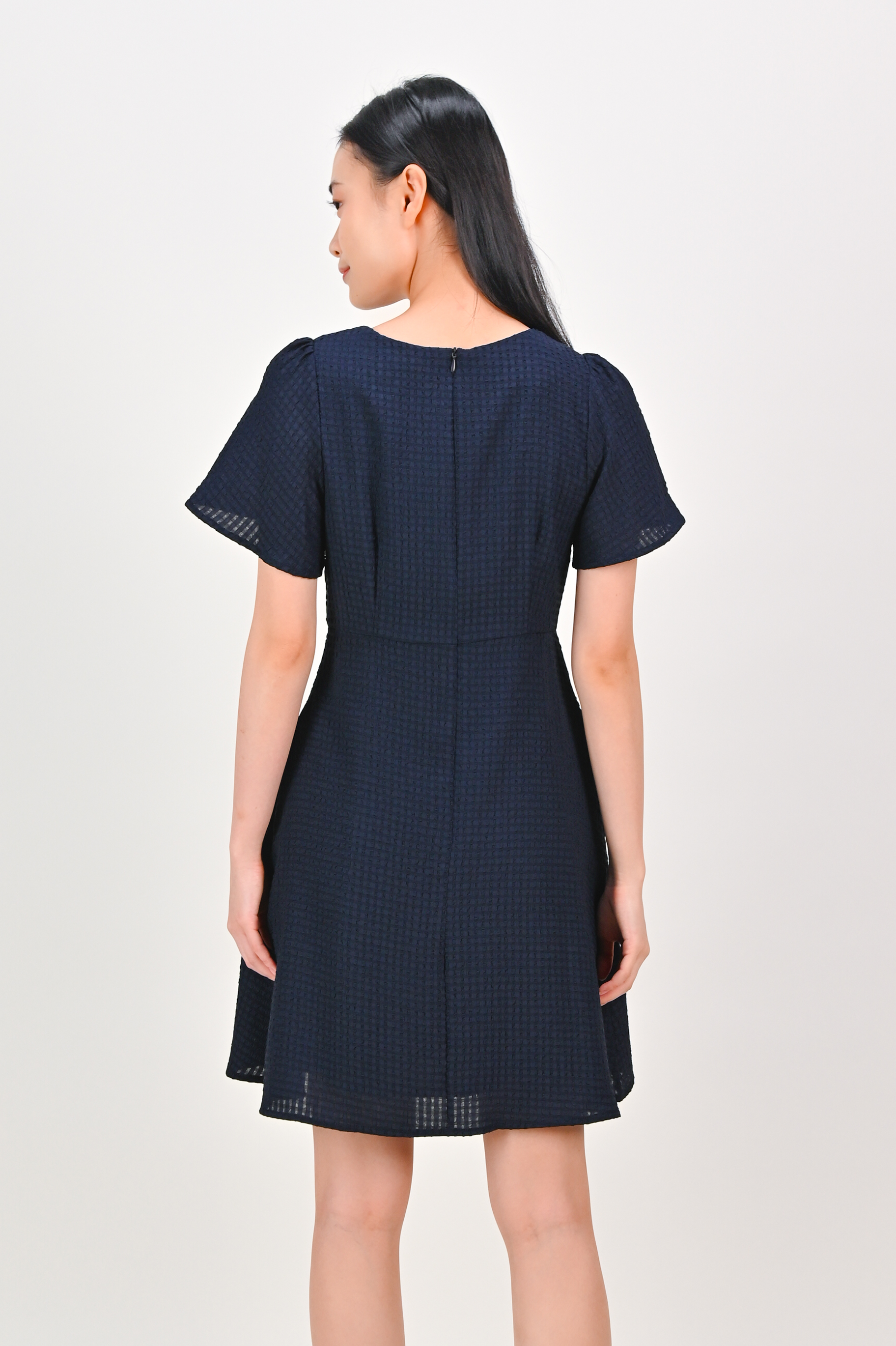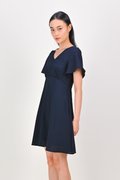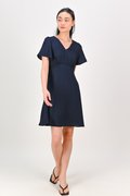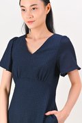 MAGARA TEXTURED SLEEVED DRESS IN NAVY
