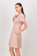 MAGARA TEXTURED SLEEVED DRESS IN PINK
