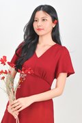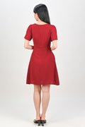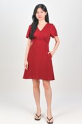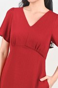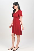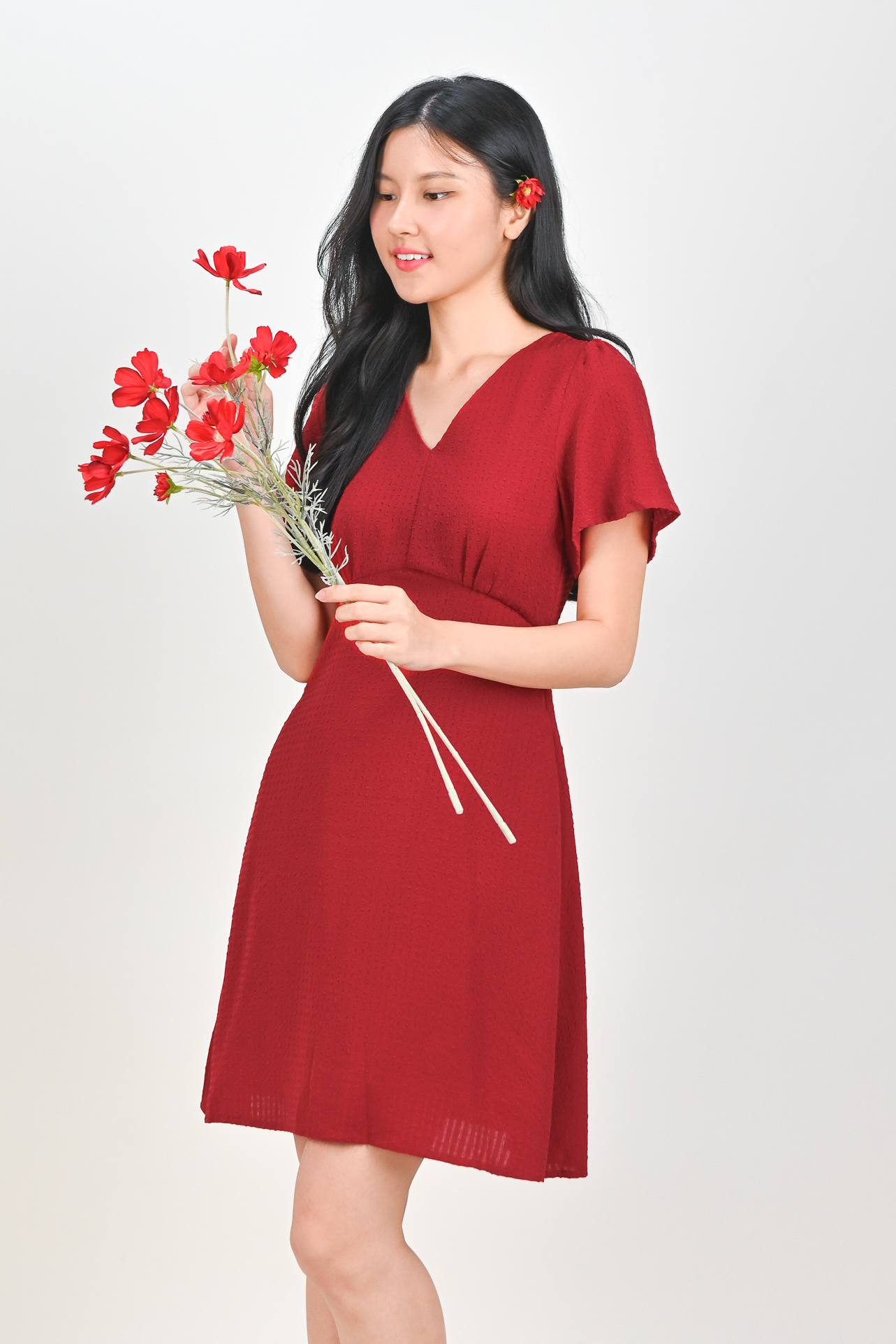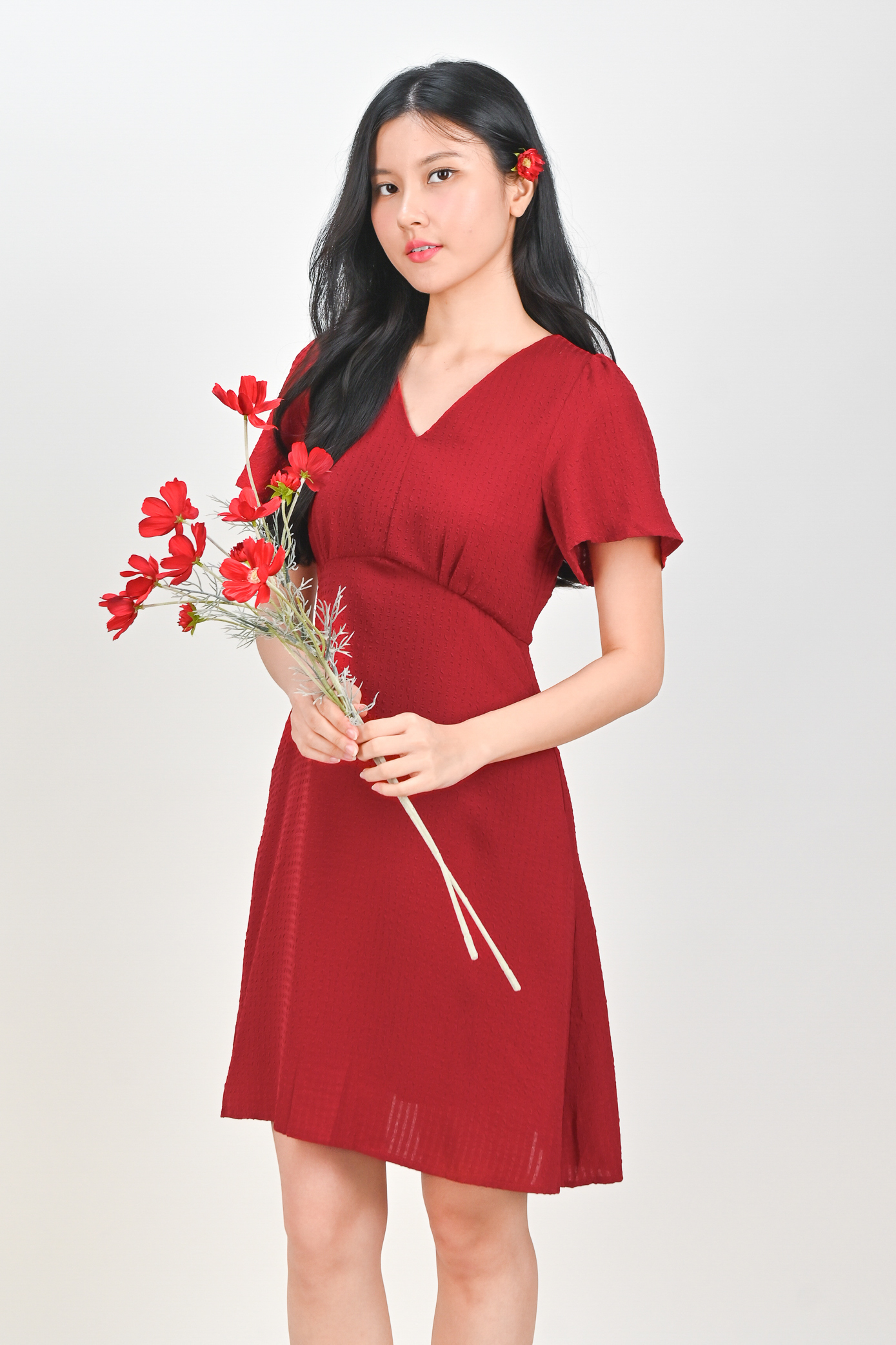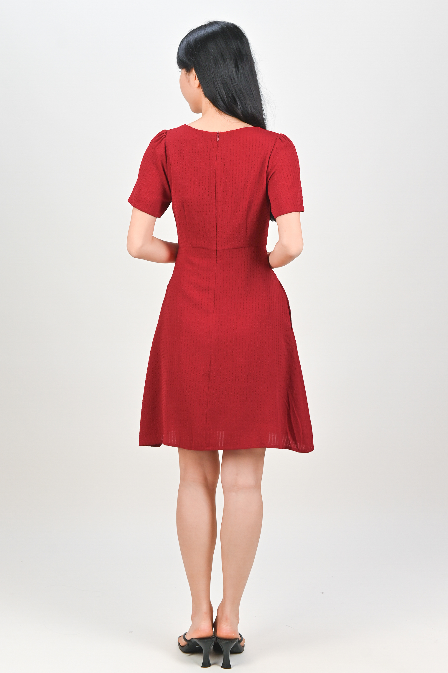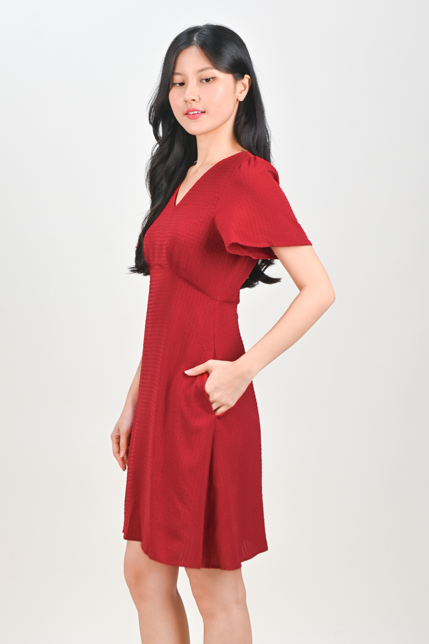 MAGARA TEXTURED SLEEVED DRESS IN RED