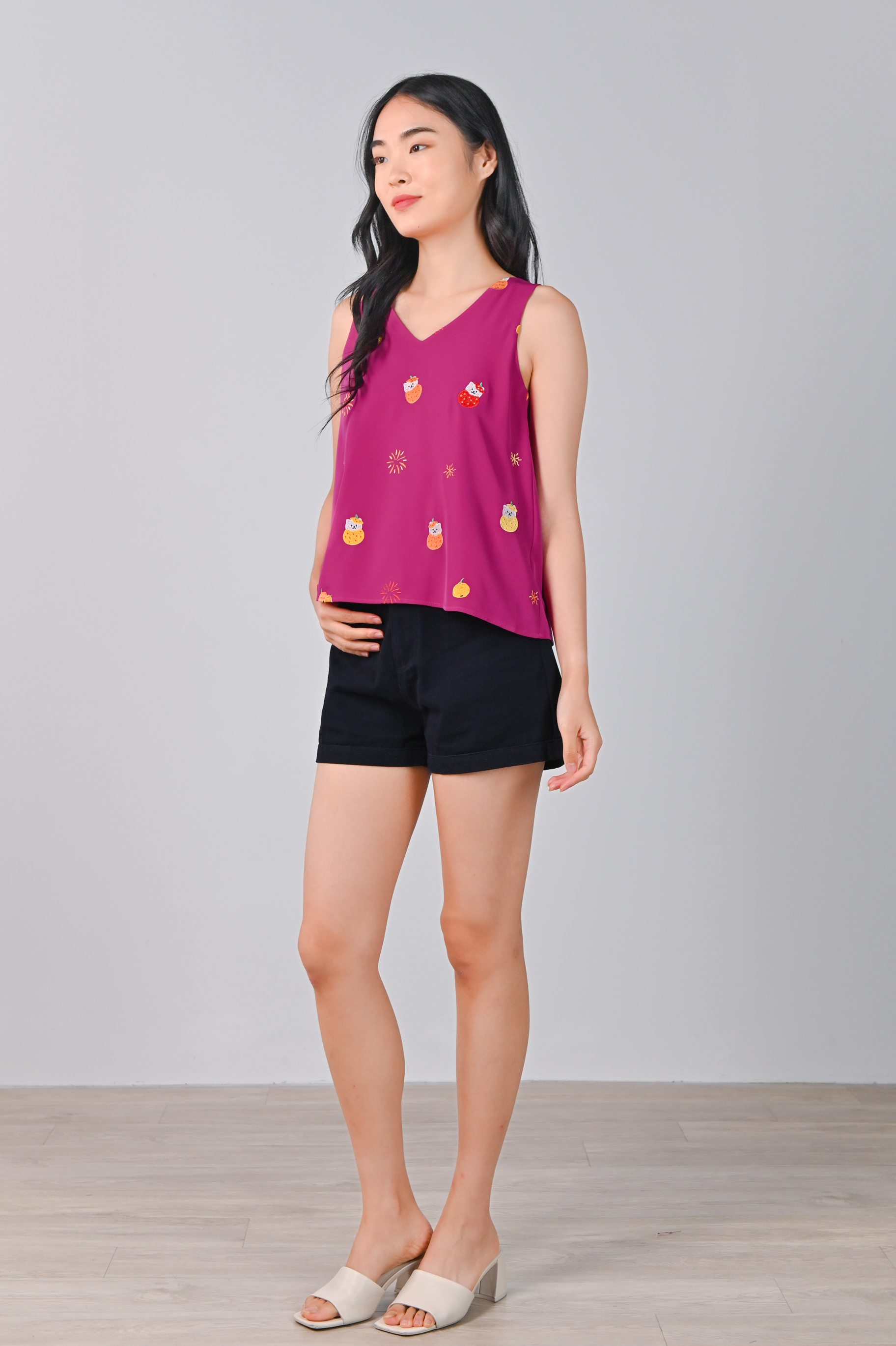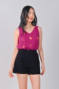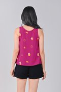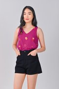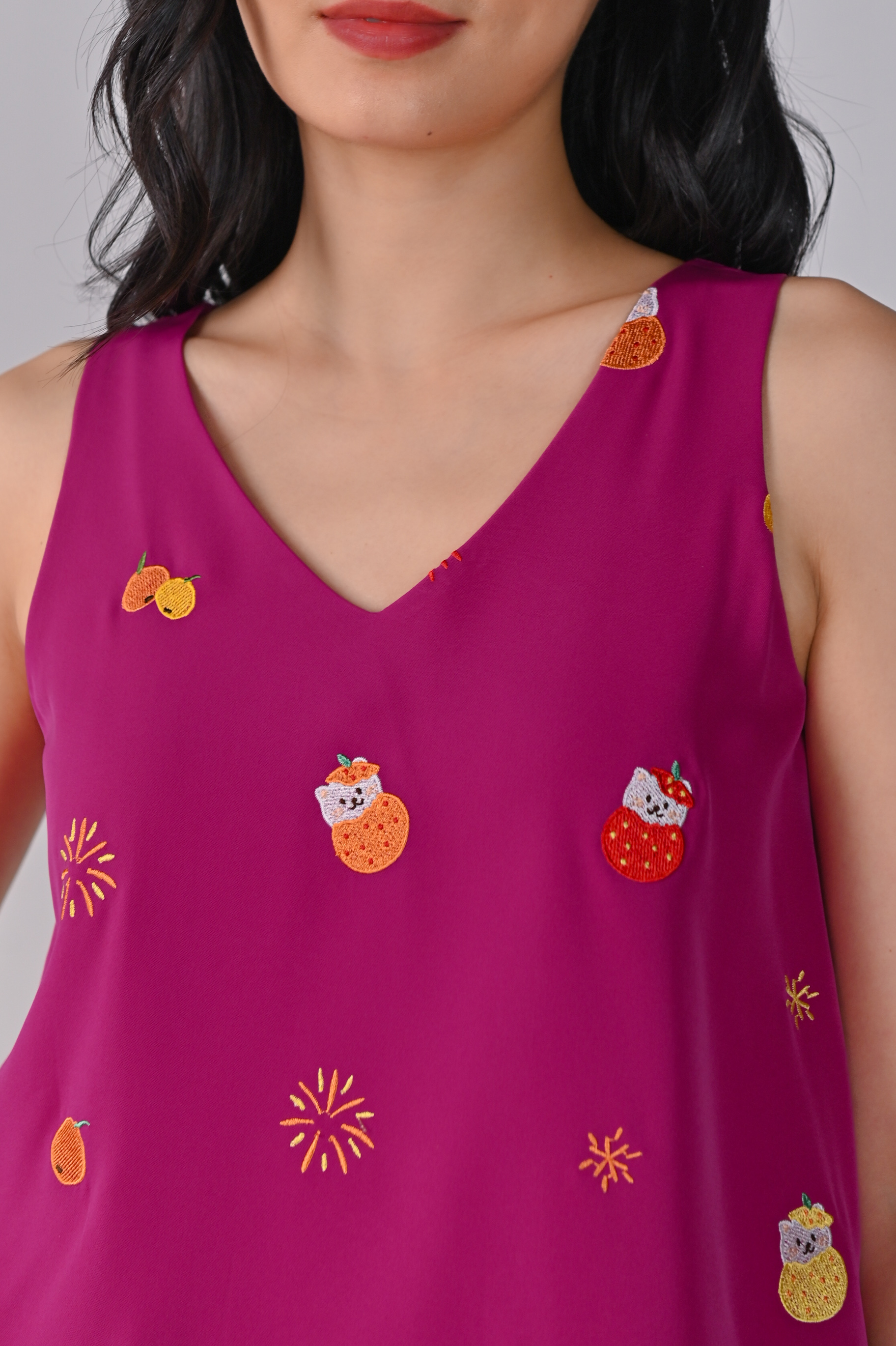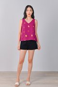 MAGENTA FORTUNE CAT EMB. TWO-WAY TOP