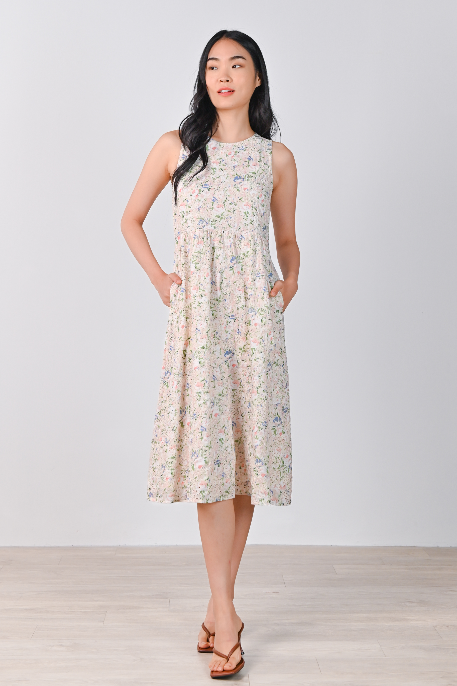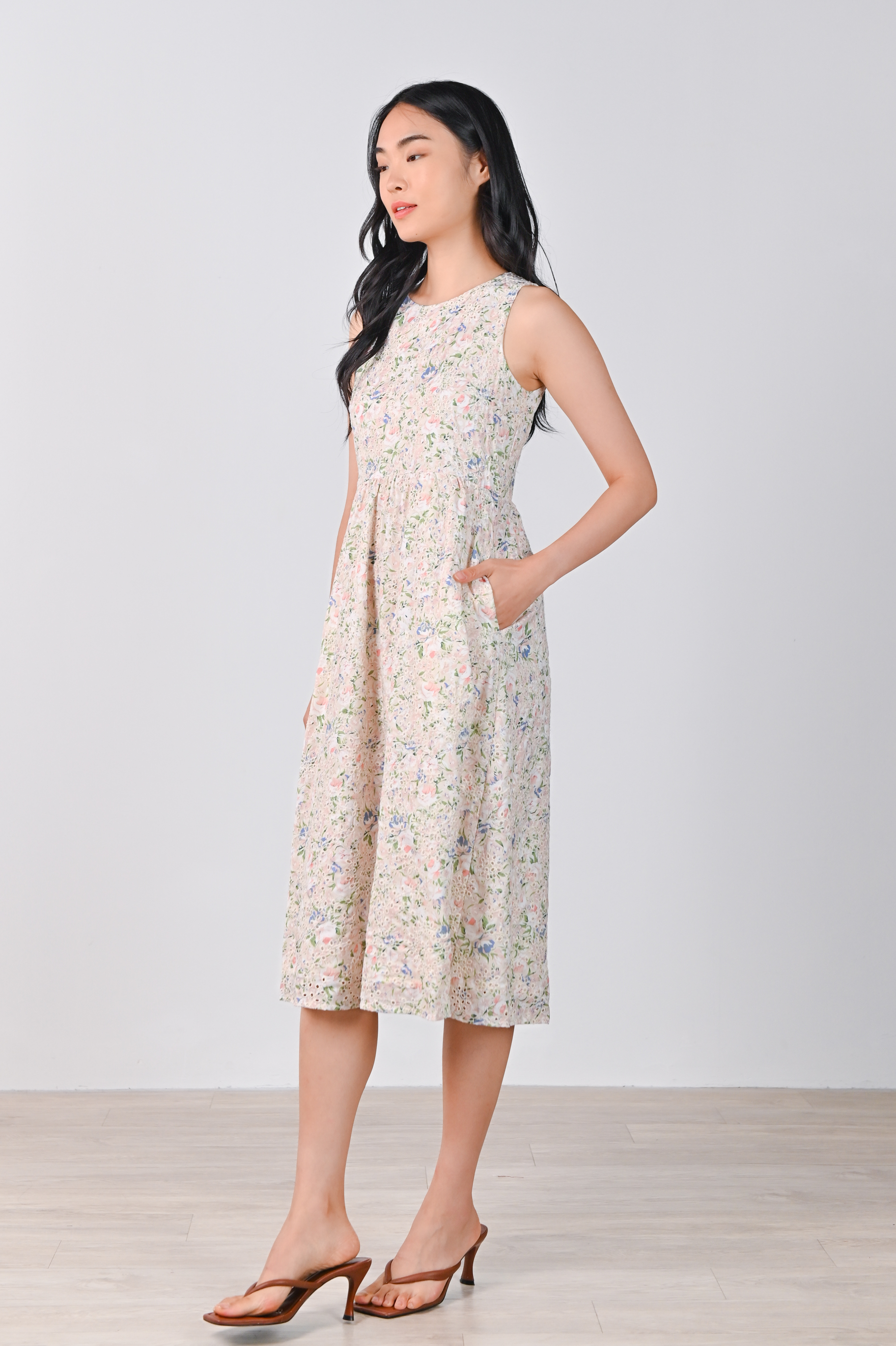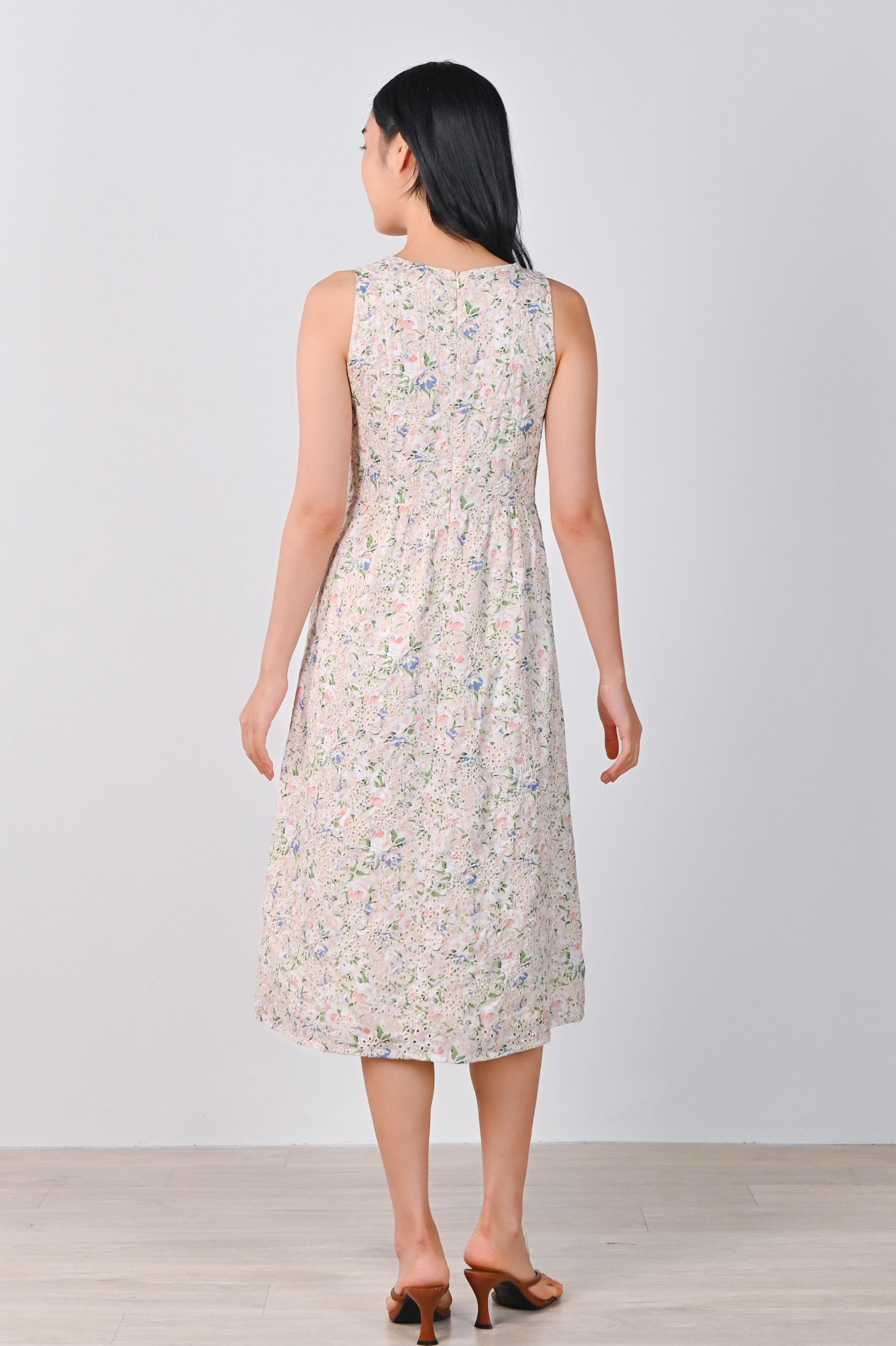 MAJA PINK FLORAL EYELET SLEEVELESS DRESS