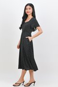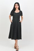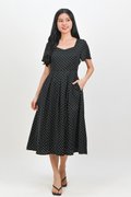 MARANTHA SWEETHEART SLEEVED MIDI DRESS IN BLACK POLKA
