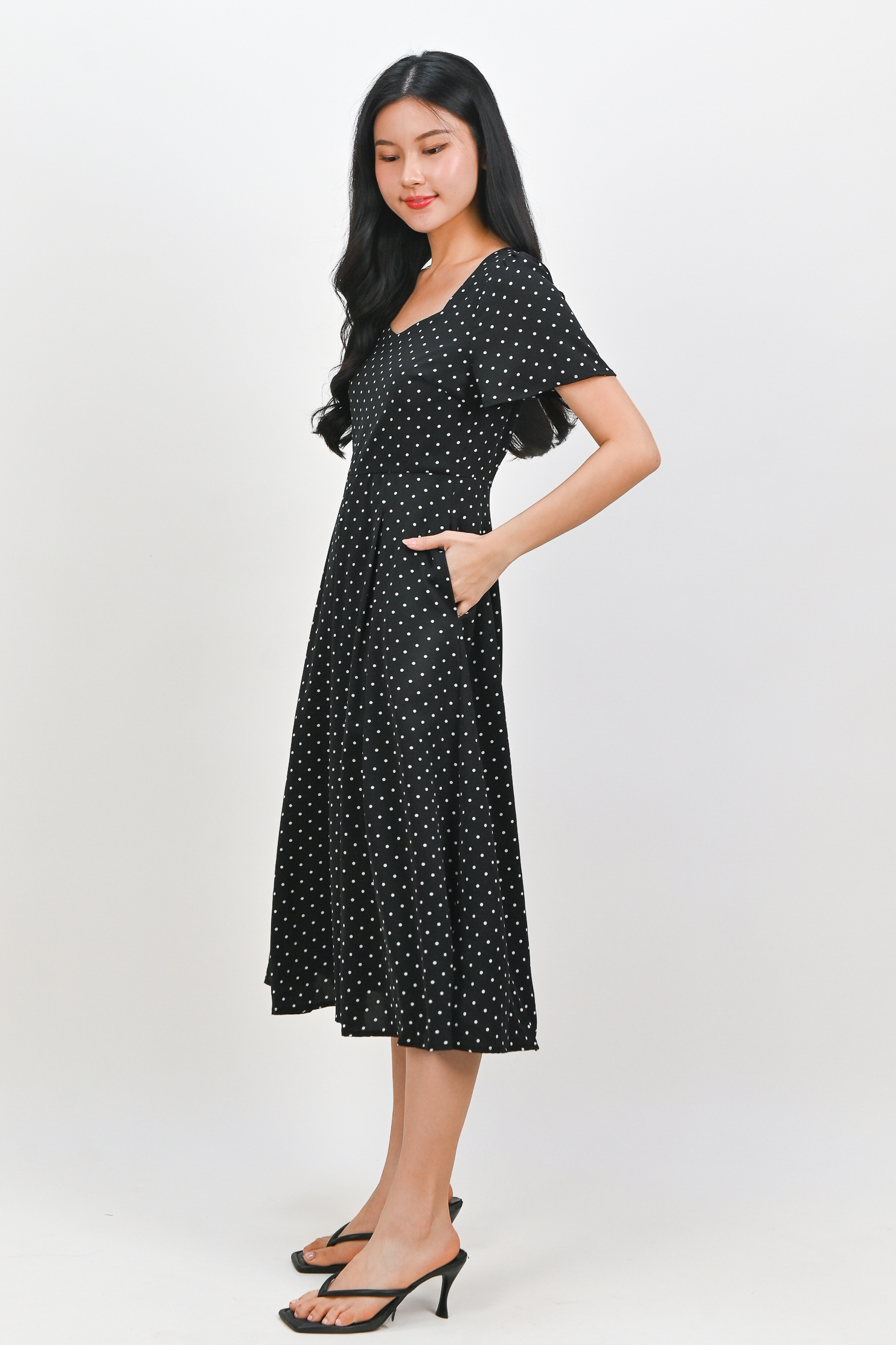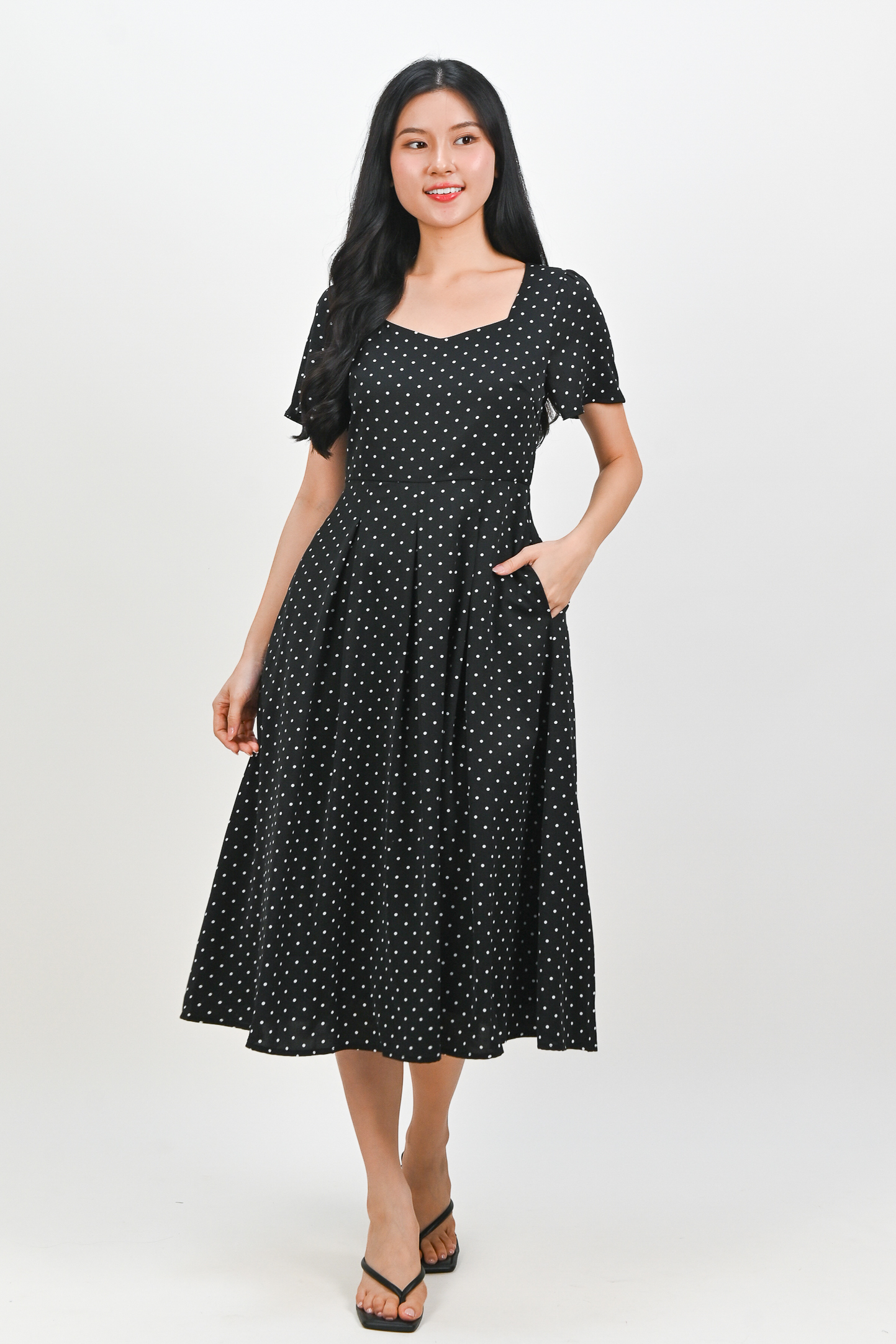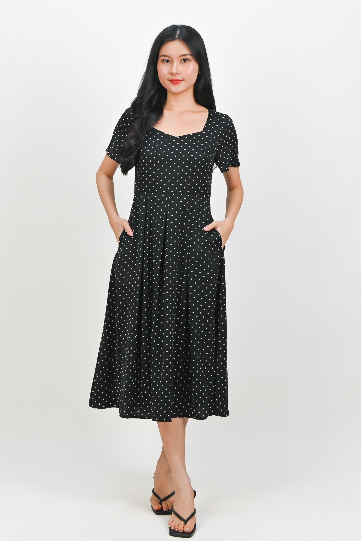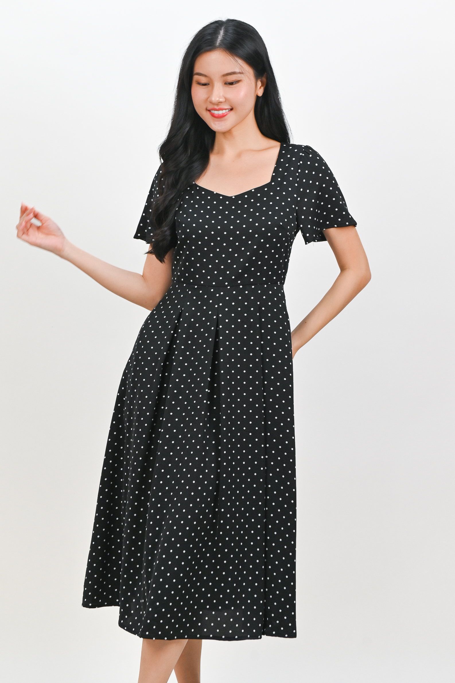 Actual stocks may varyPolka dot party, anytime, anywhere 🎉 Radiate bits of joy throughout your day in our Marantha Midi Dress 🖤