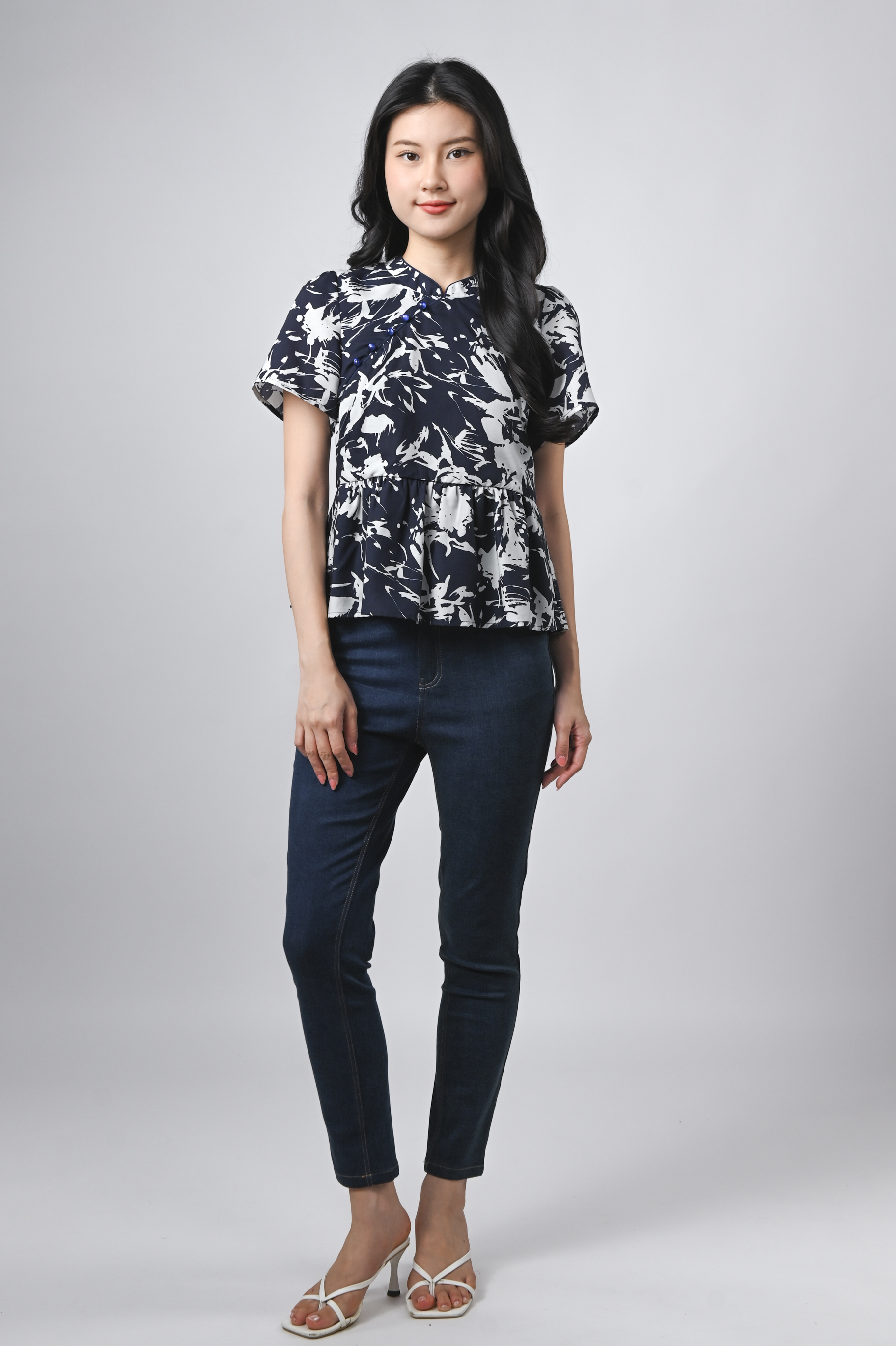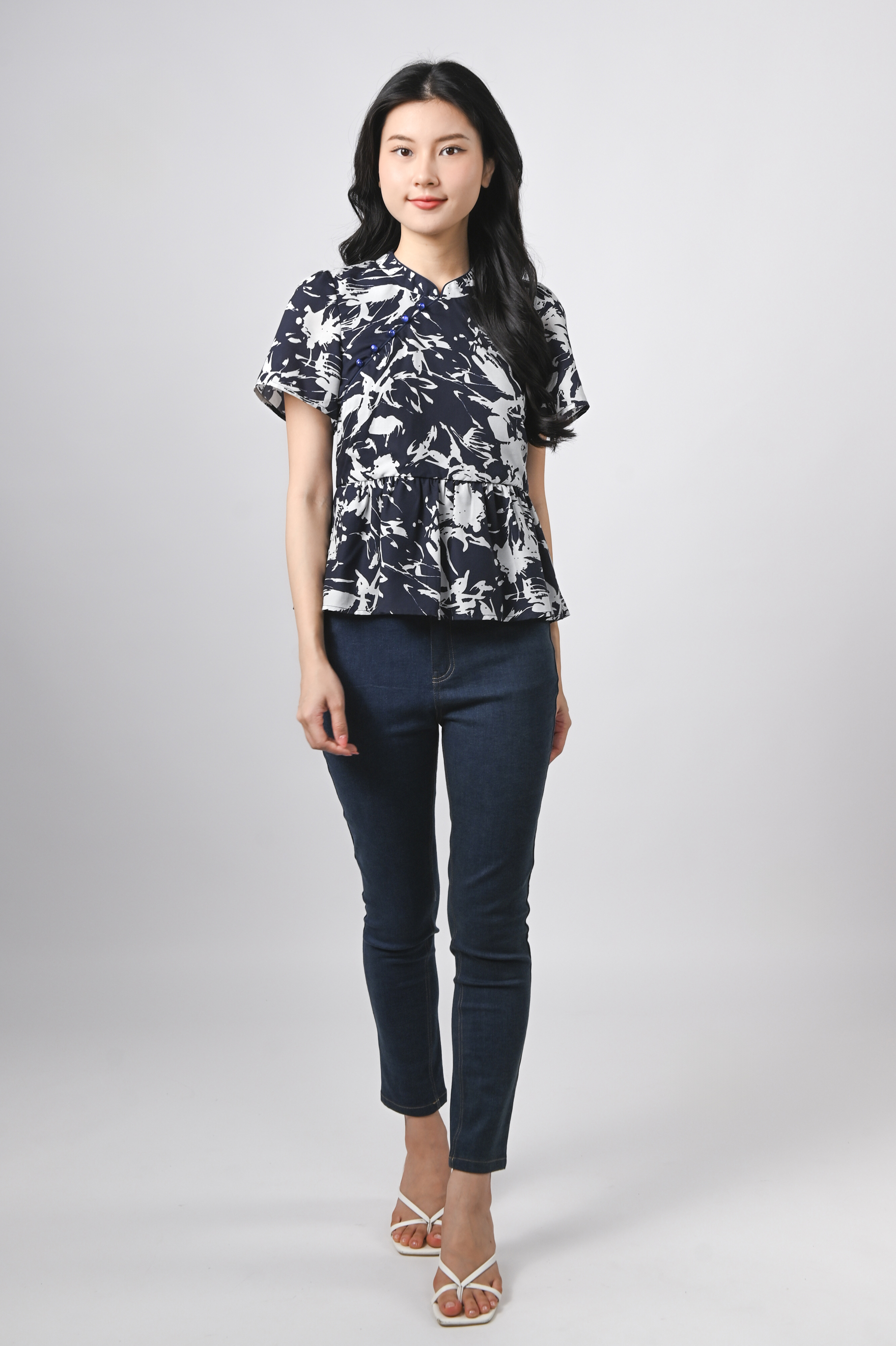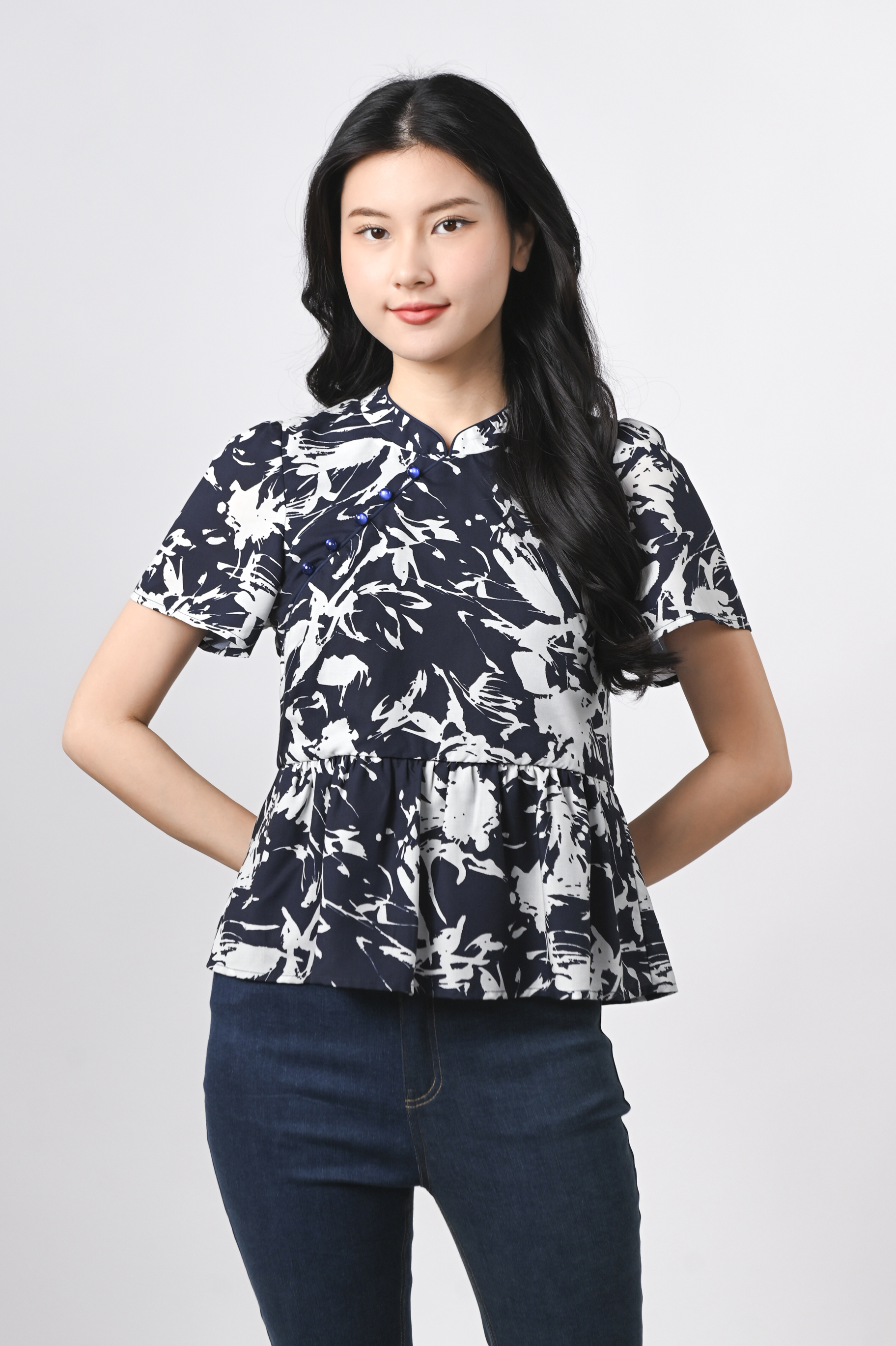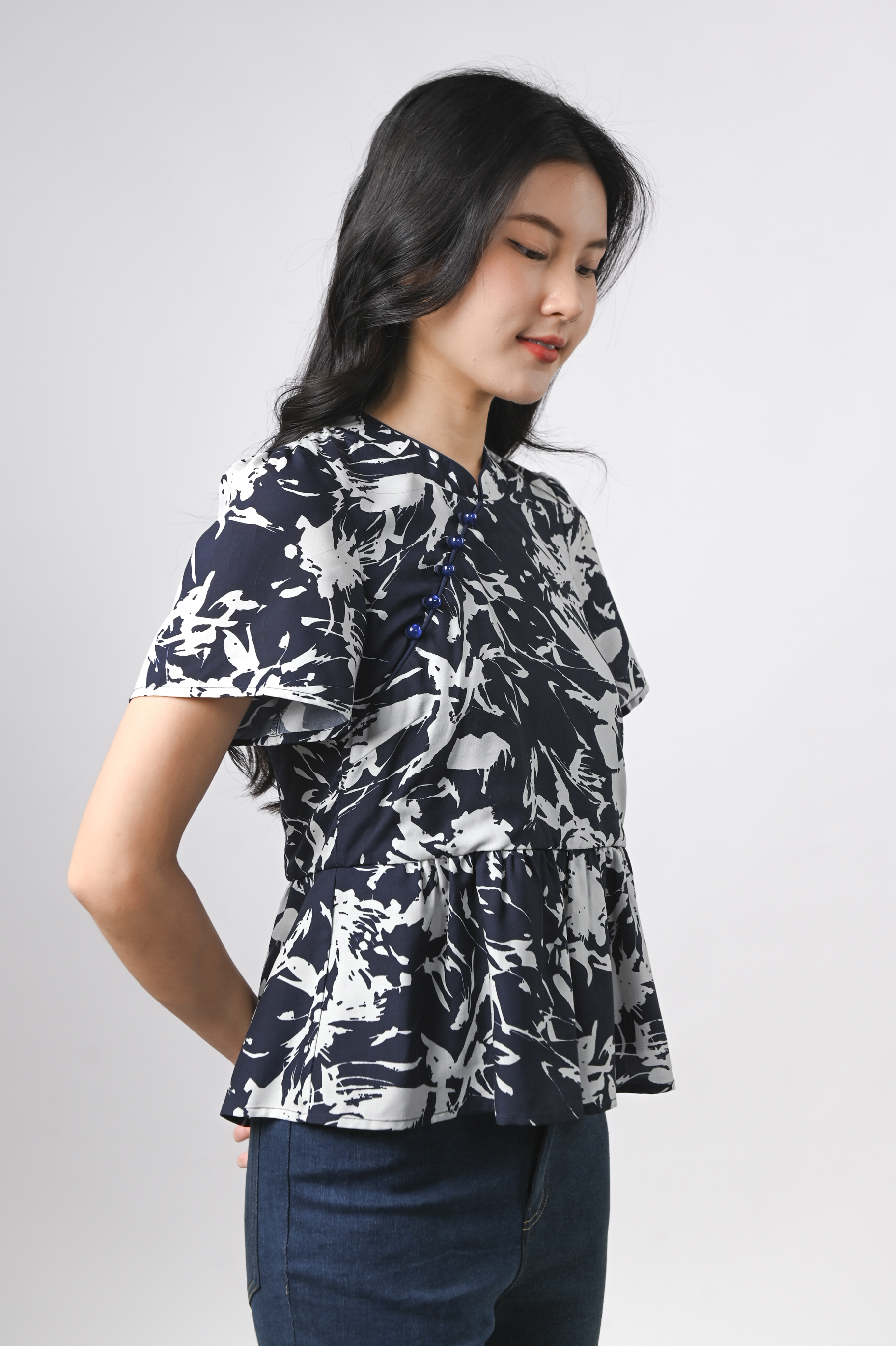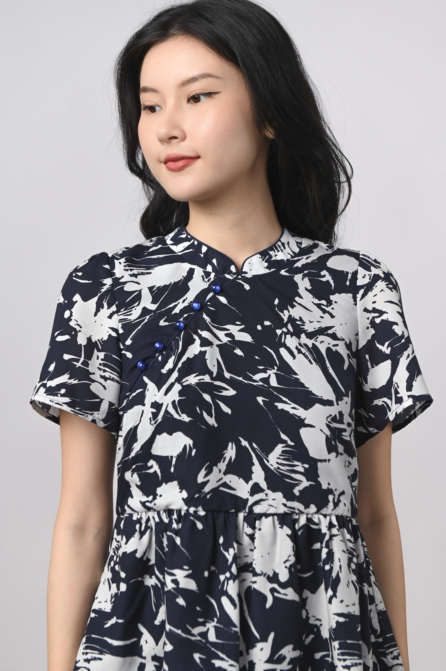 MIDNIGHT BRUSH SLEEVED CHEONGSAM TOP