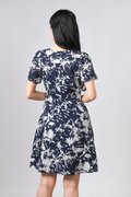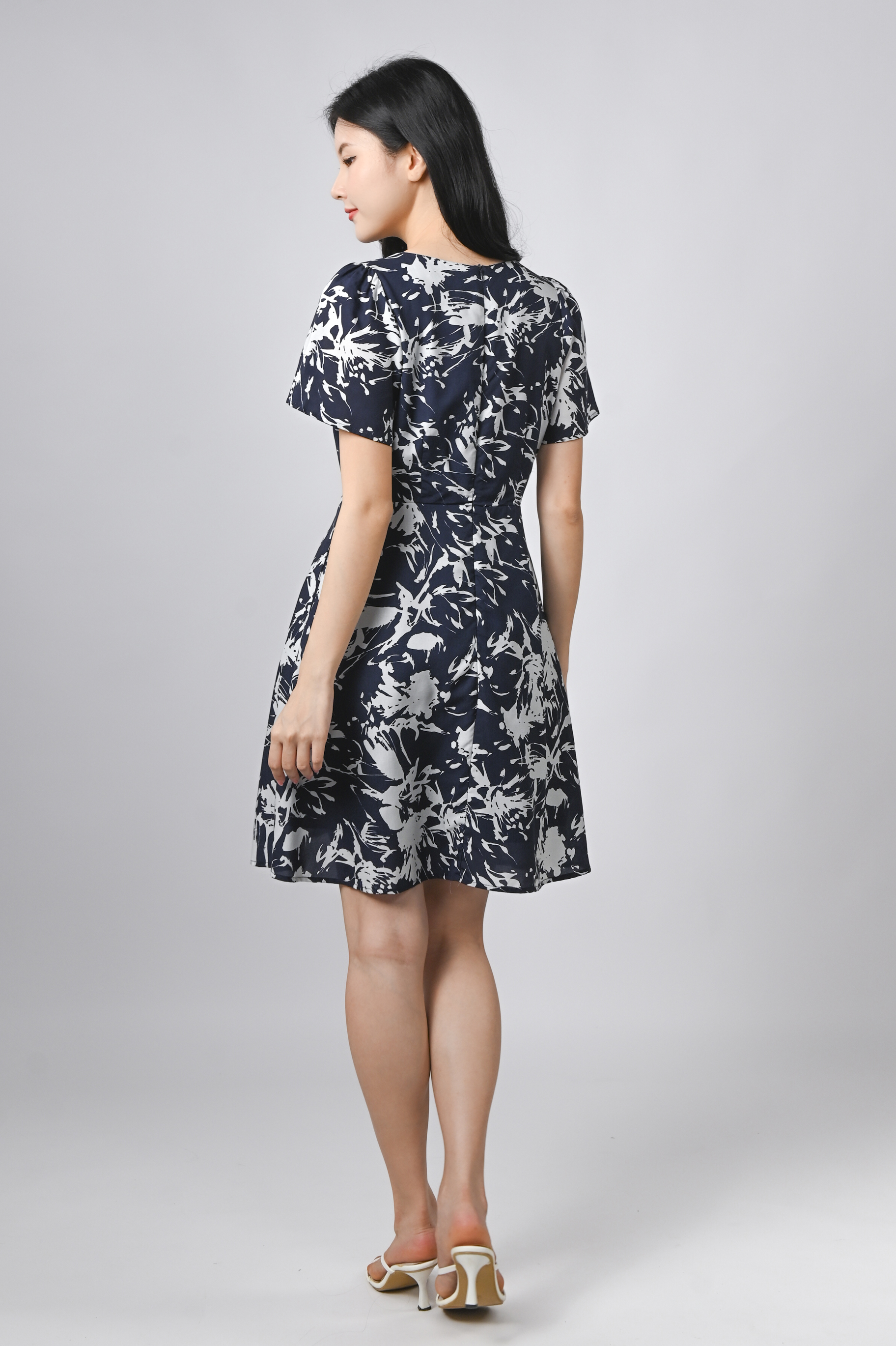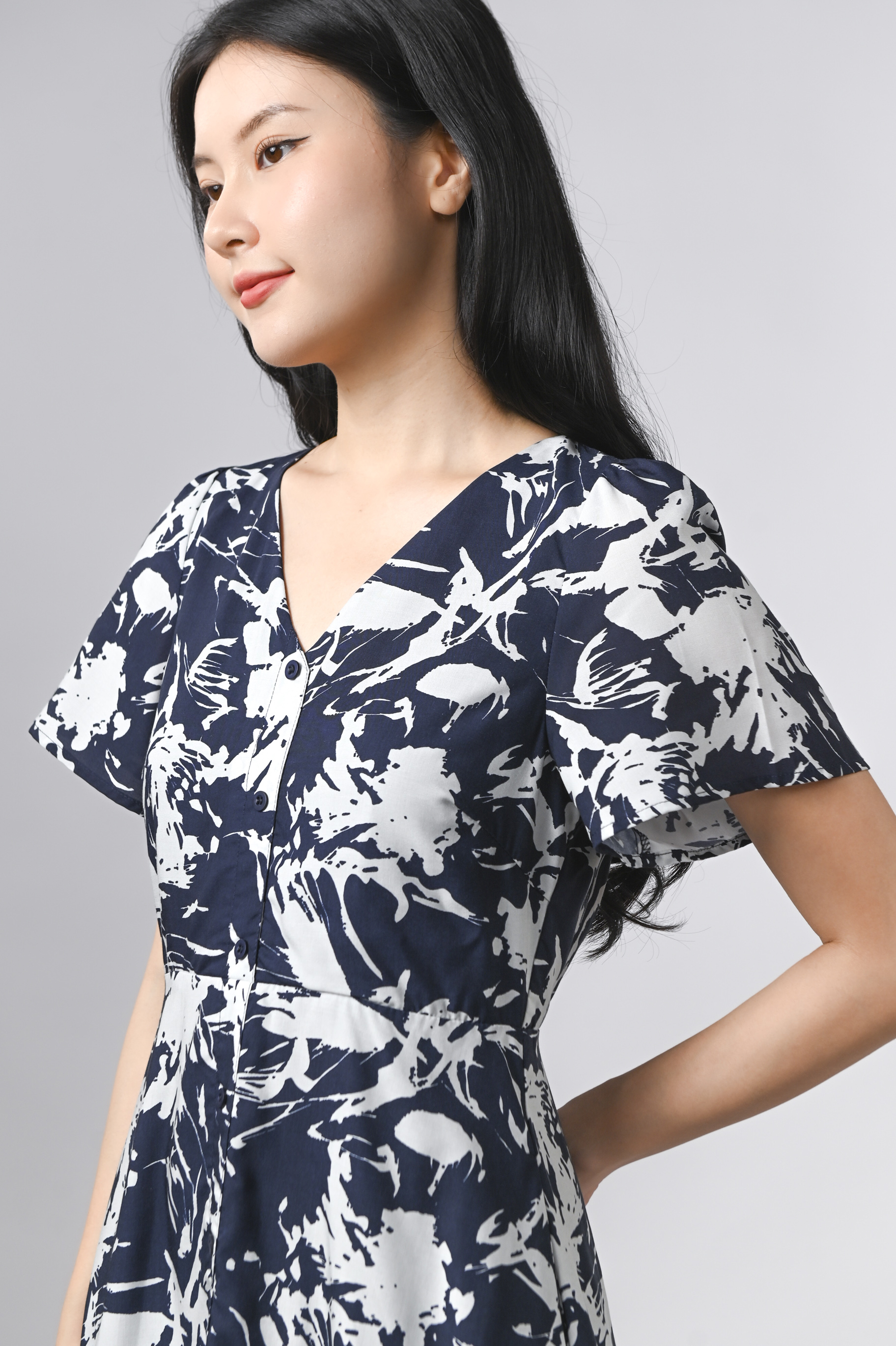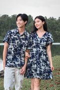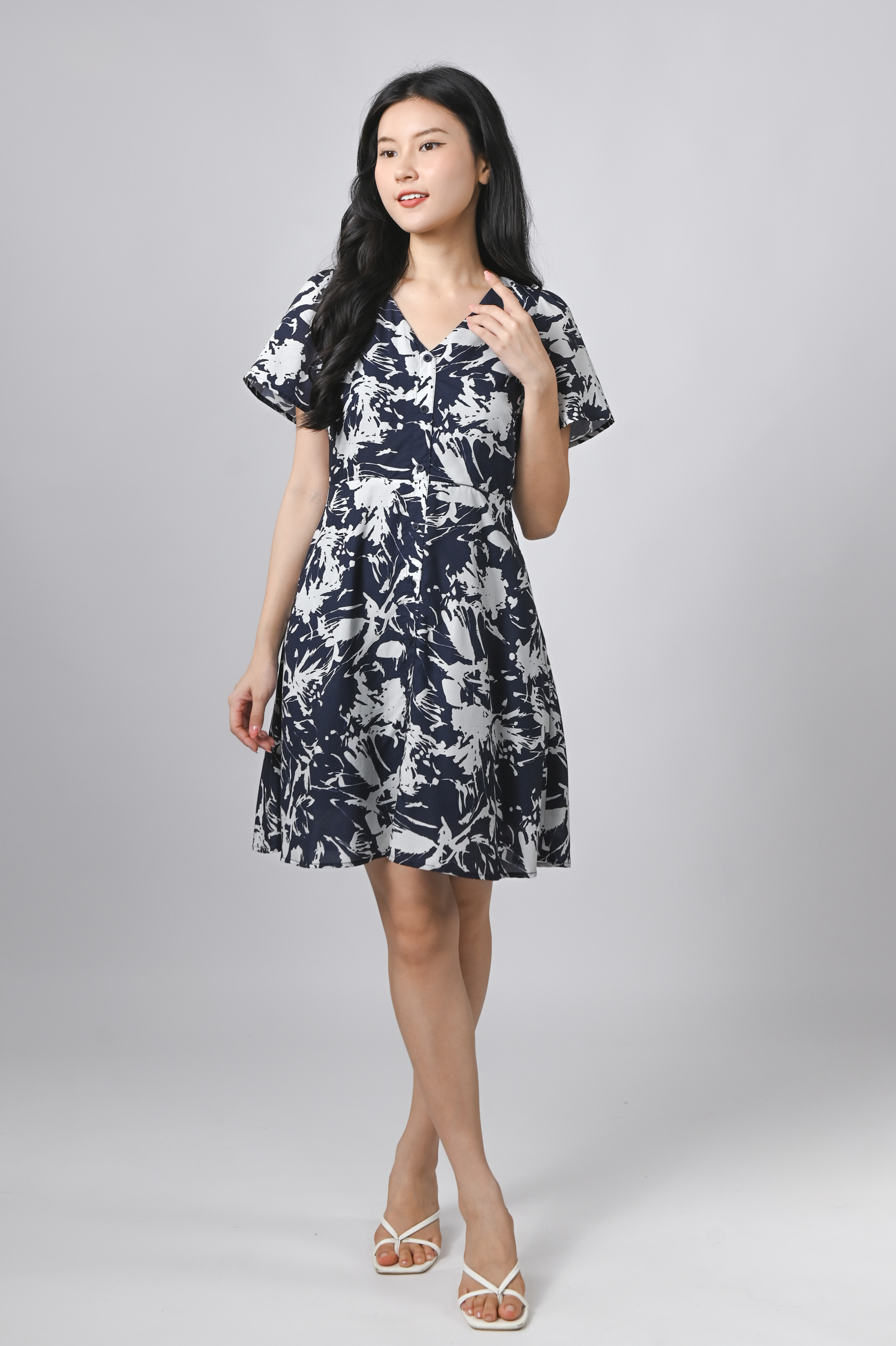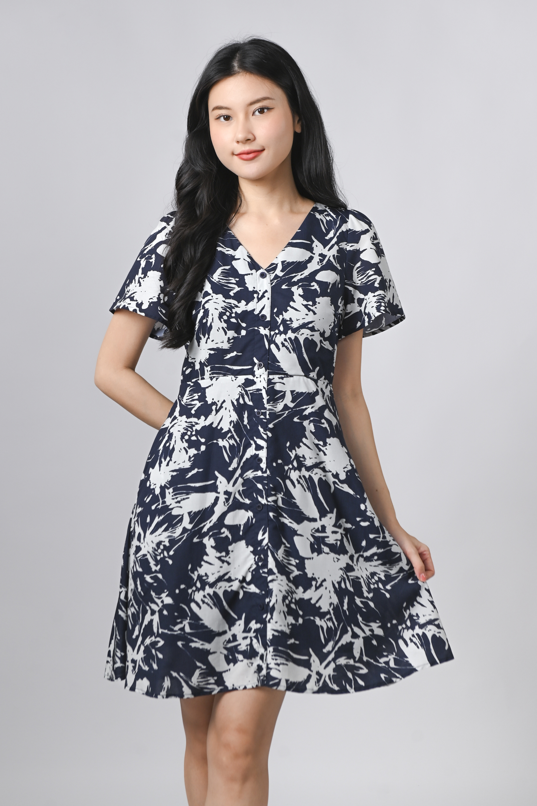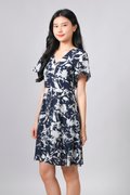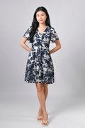 MIDNIGHT BRUSH SLEEVED SHORT BUTTON DRESS
