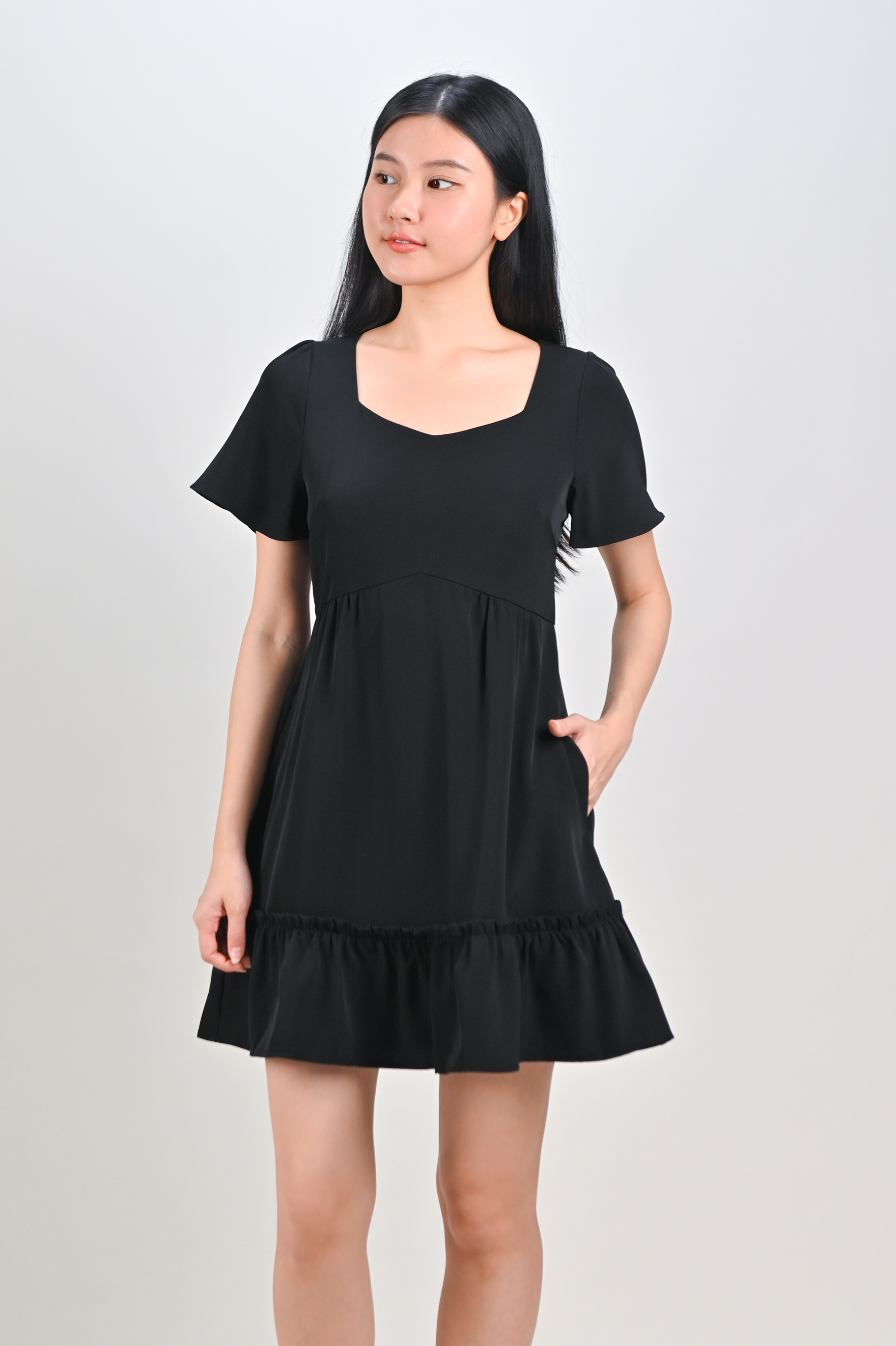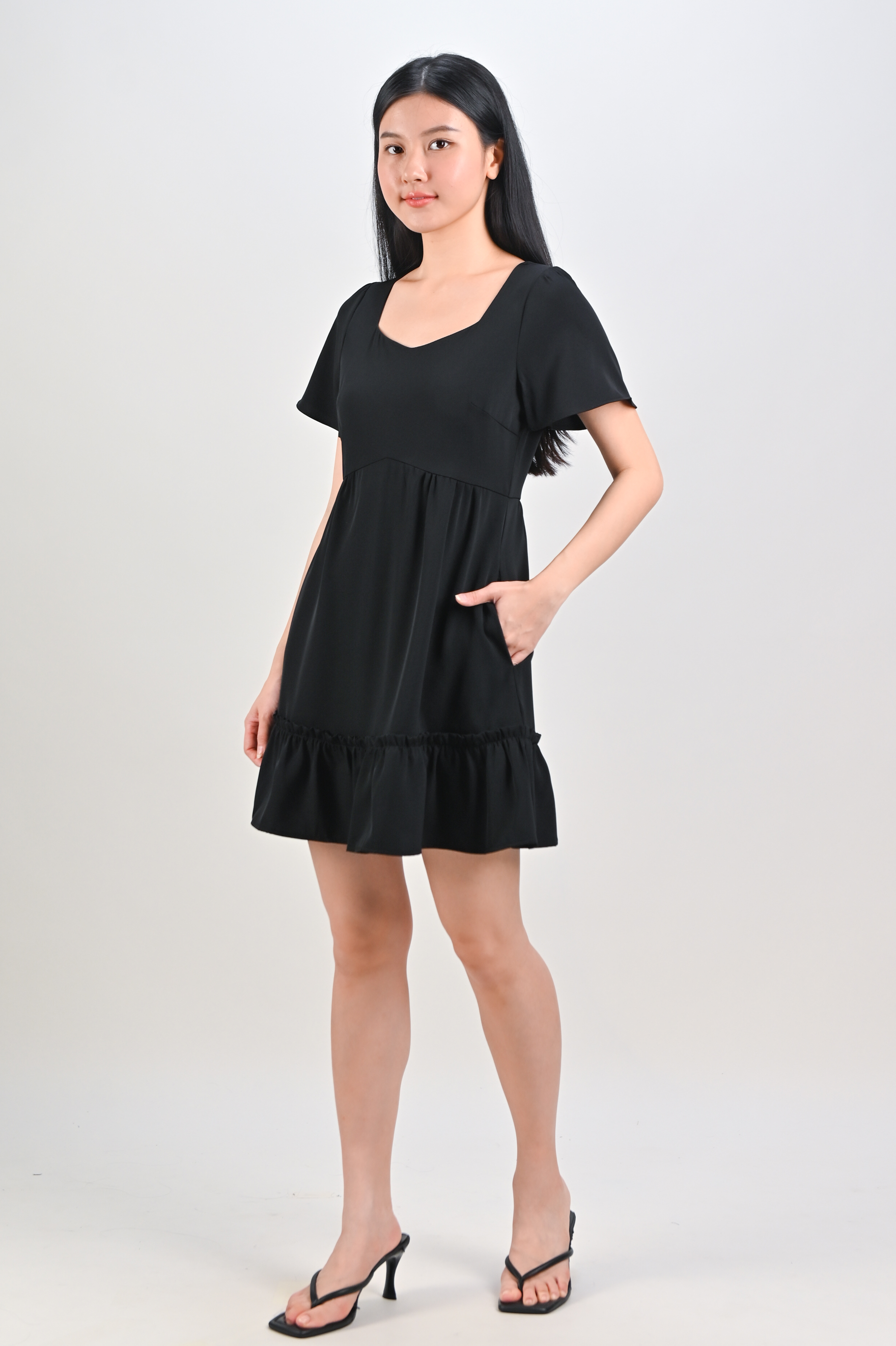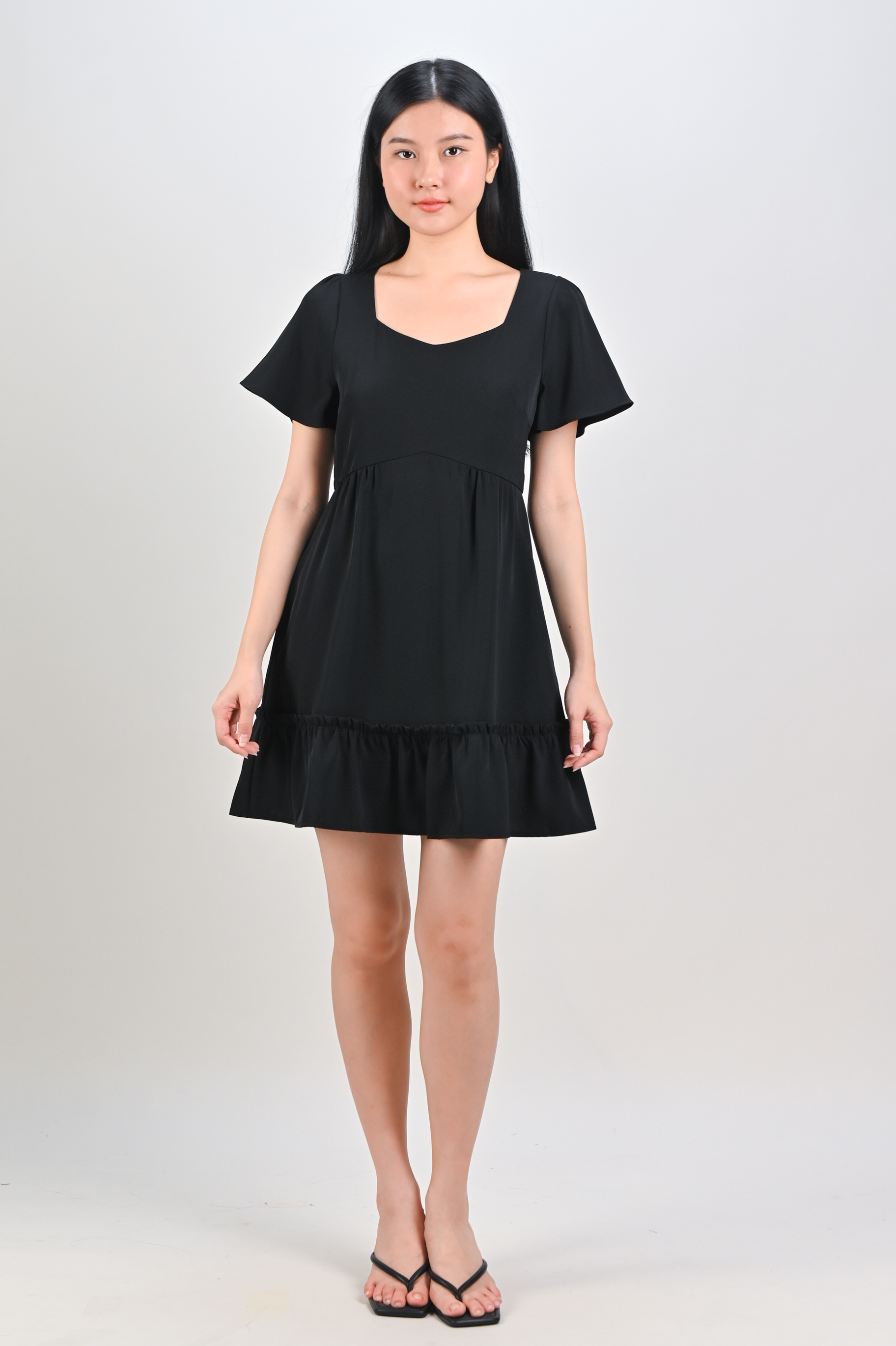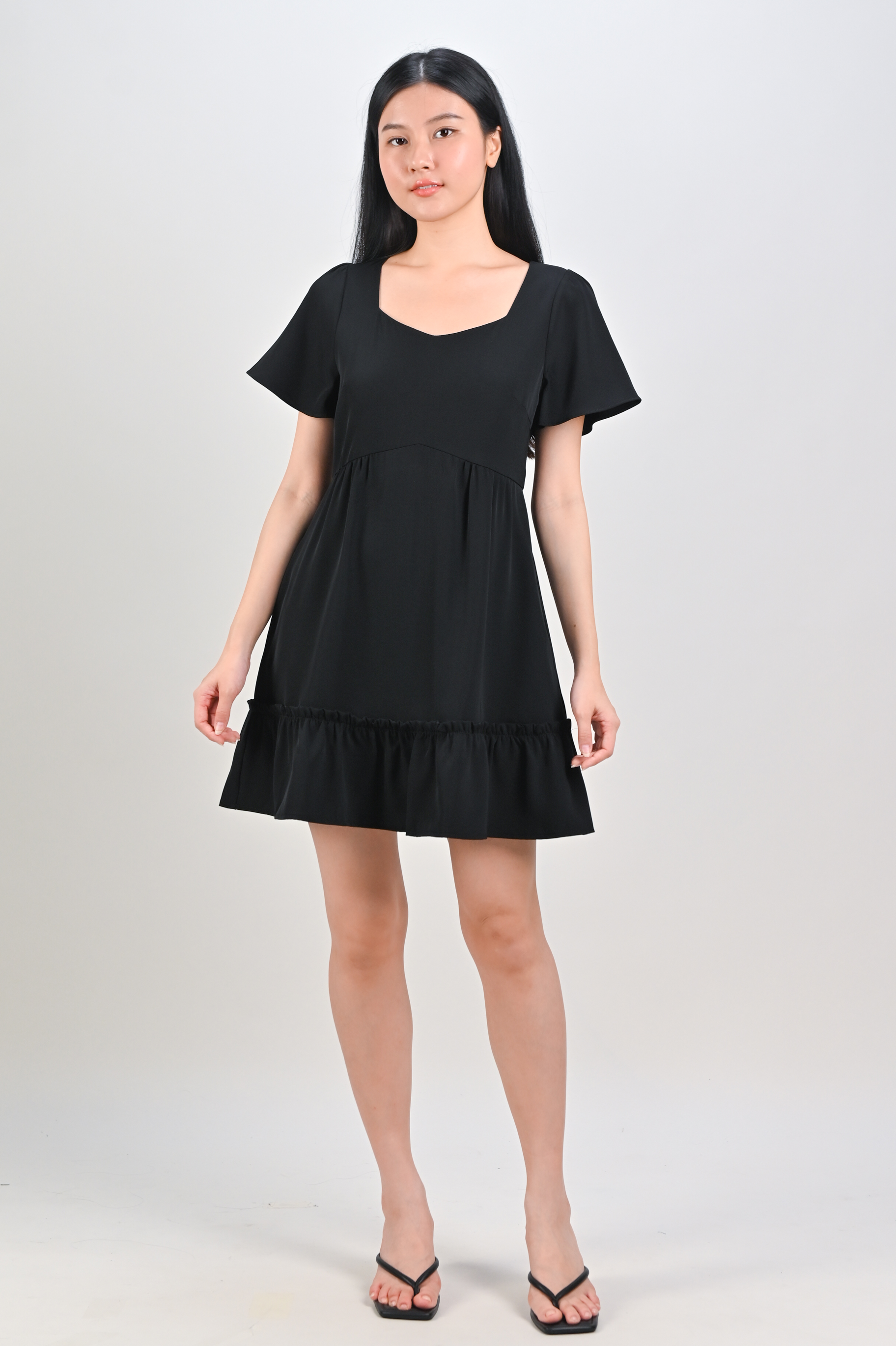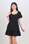 MIDORI SWEETHEART FLOUNCE DRESS-ROMPER IN BLACK