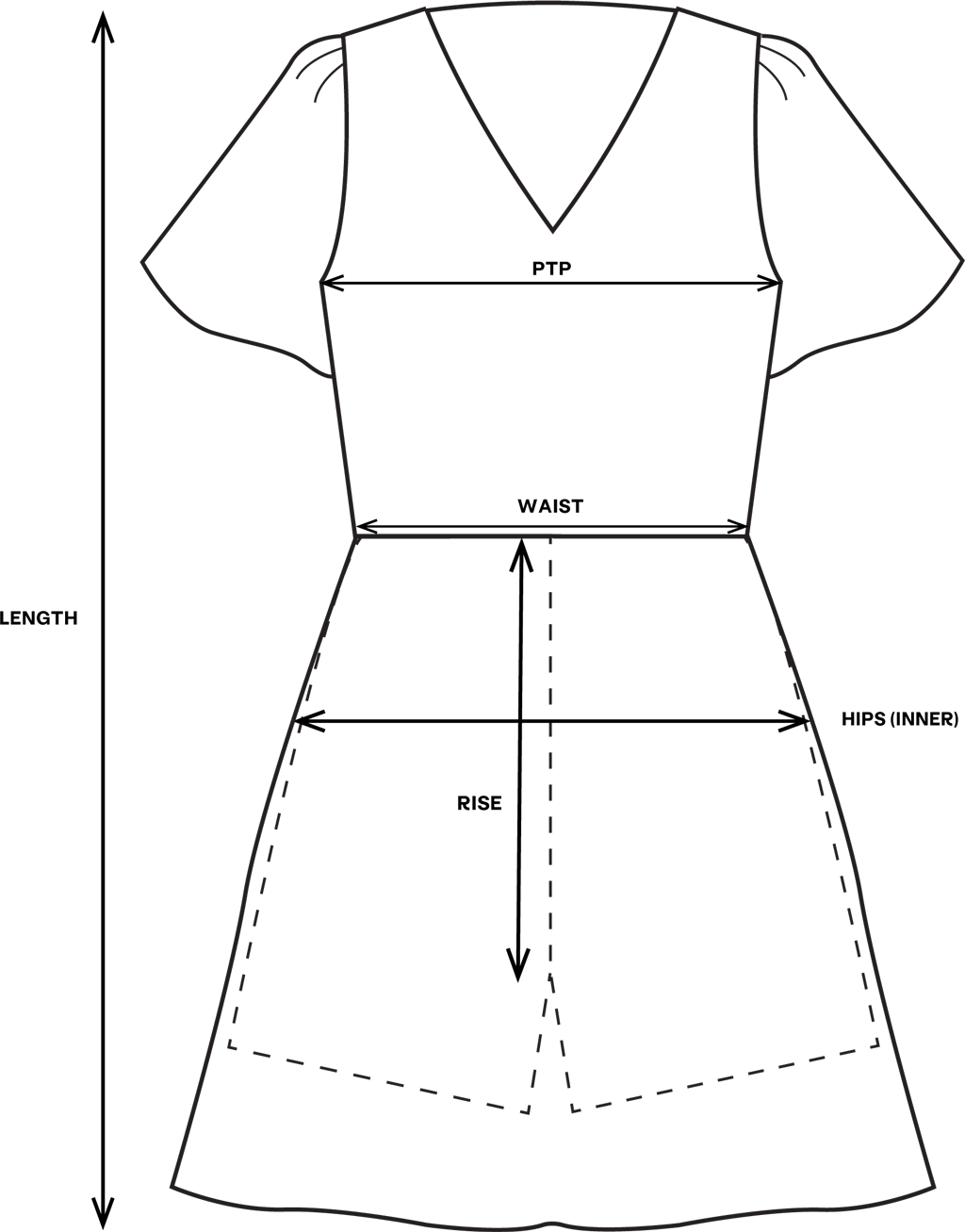 | Size | PTP | Waist | Hips (Inner) | Length |
