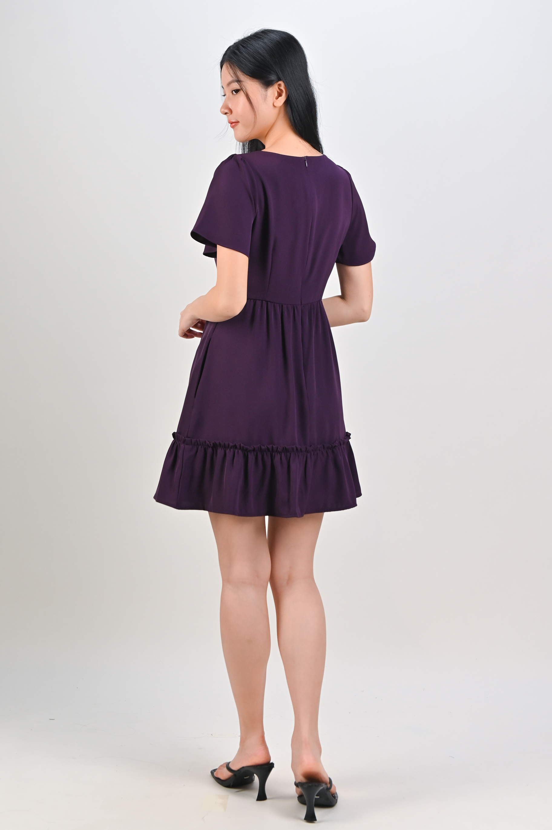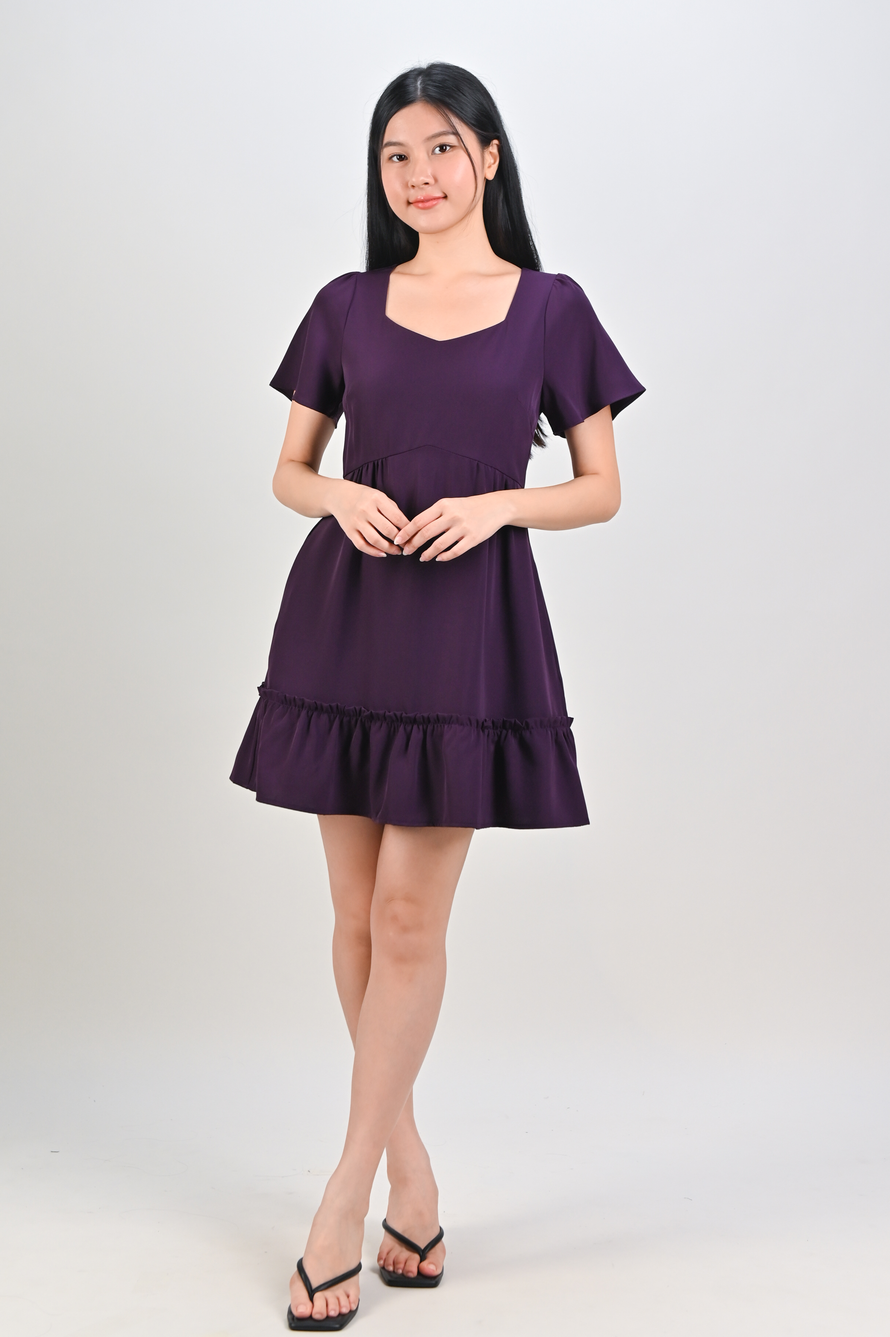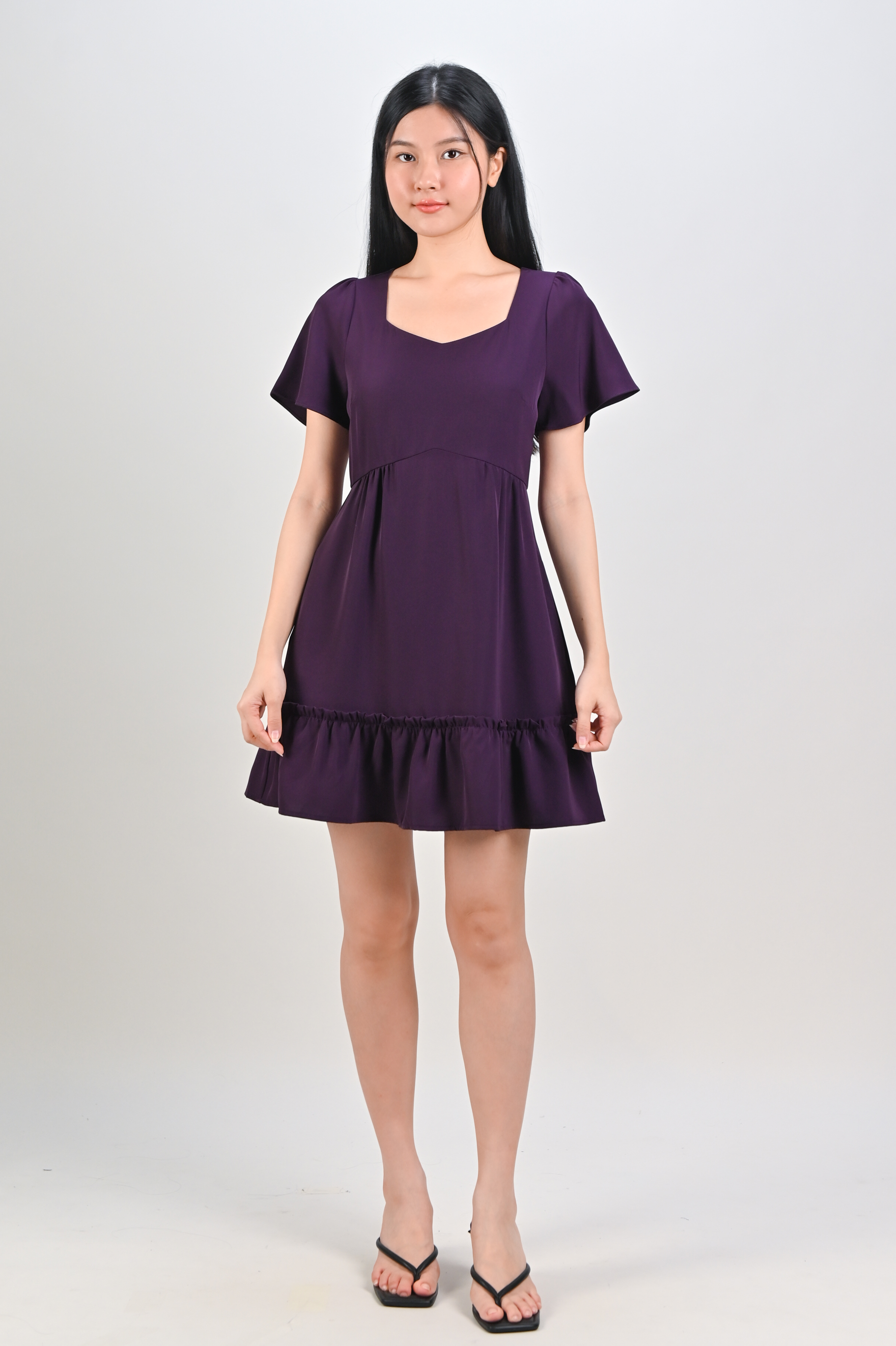 Actual stocks may varyOur Midori Sweetheart Flounce Dress-Romper is ready for the spotlight! 💜🖤 Flirty, fun and fabulous!