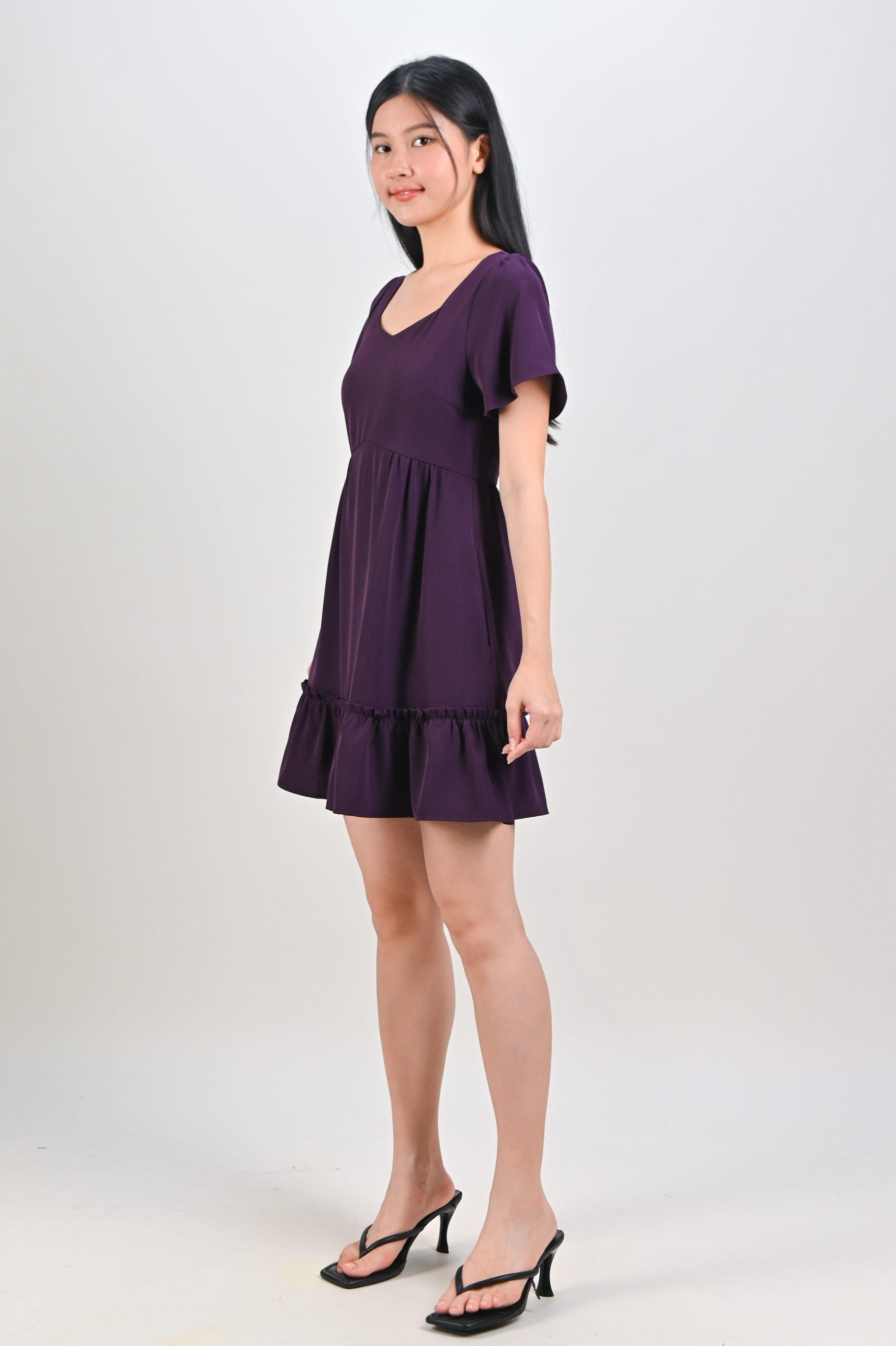 MIDORI SWEETHEART FLOUNCE DRESS-ROMPER IN PURPLE