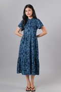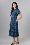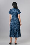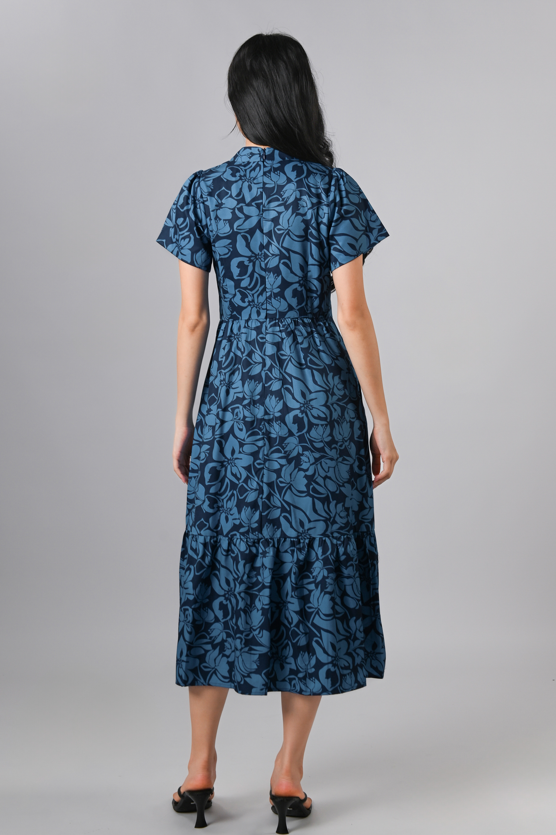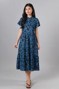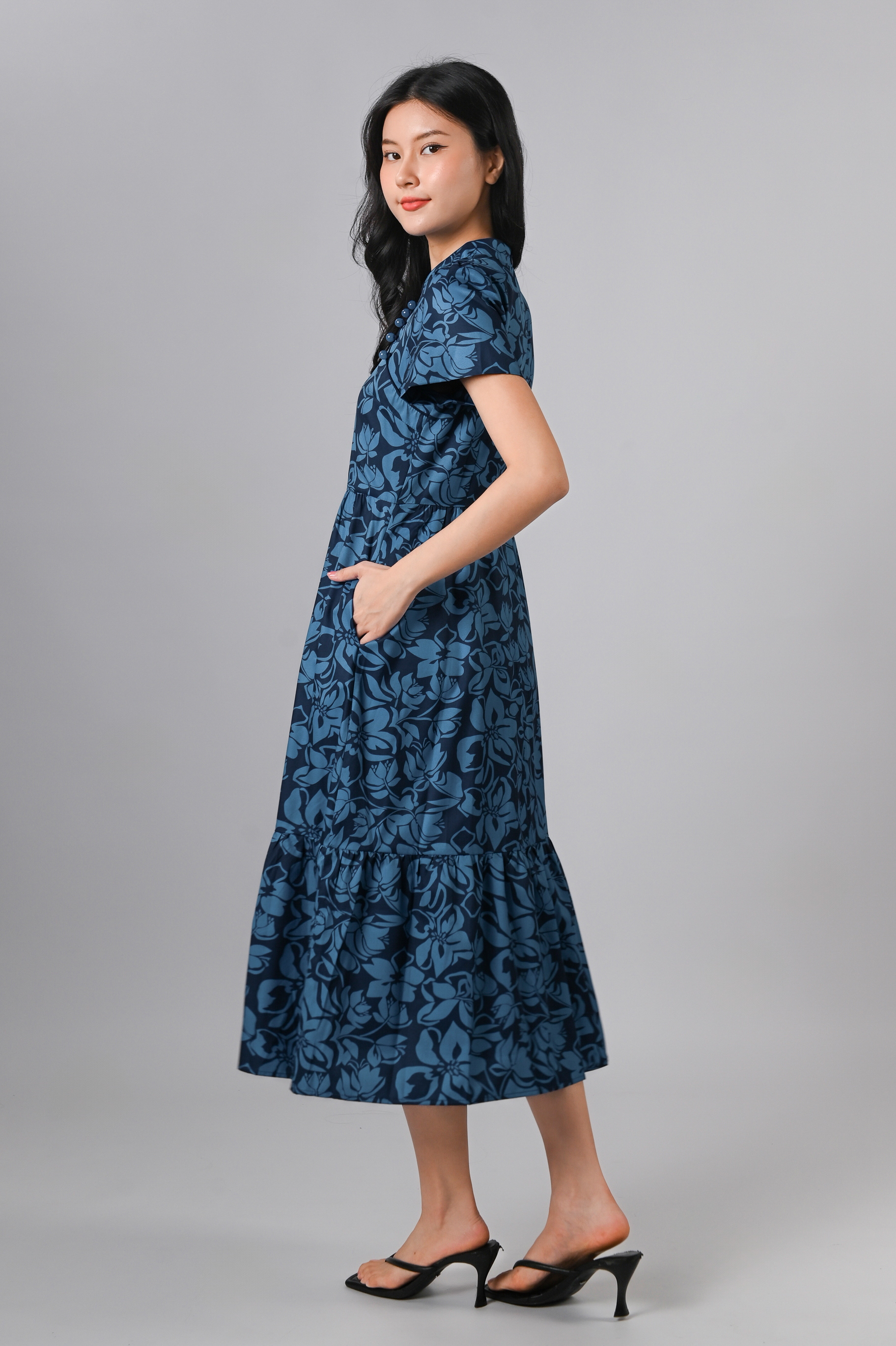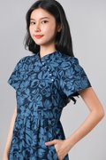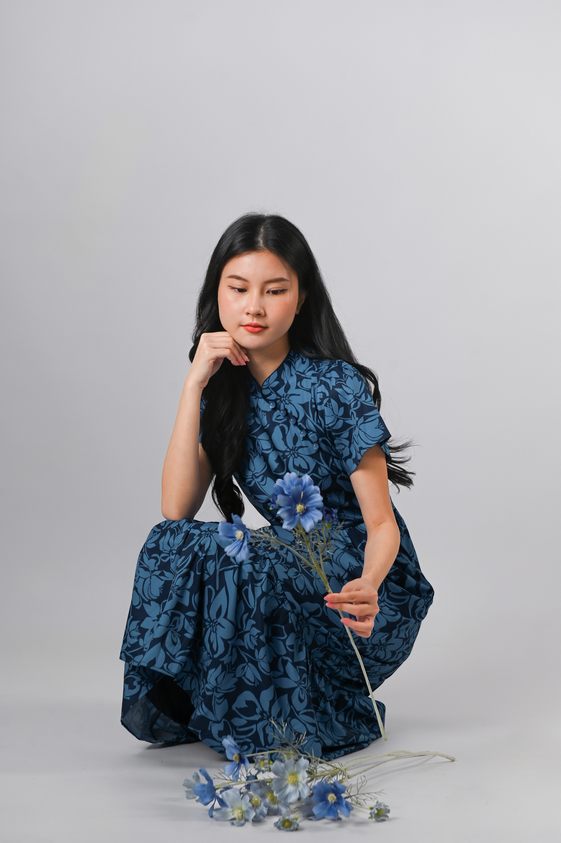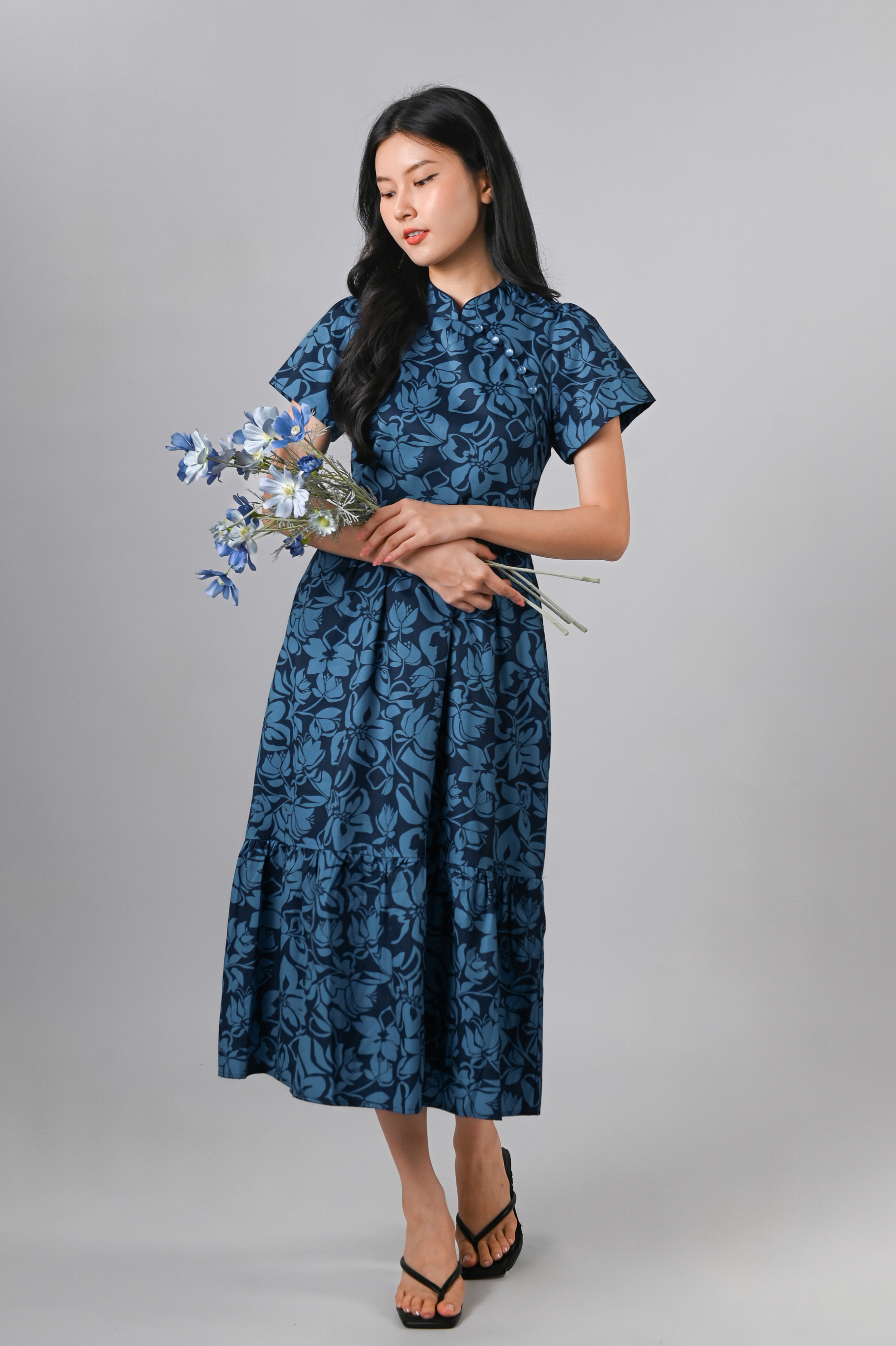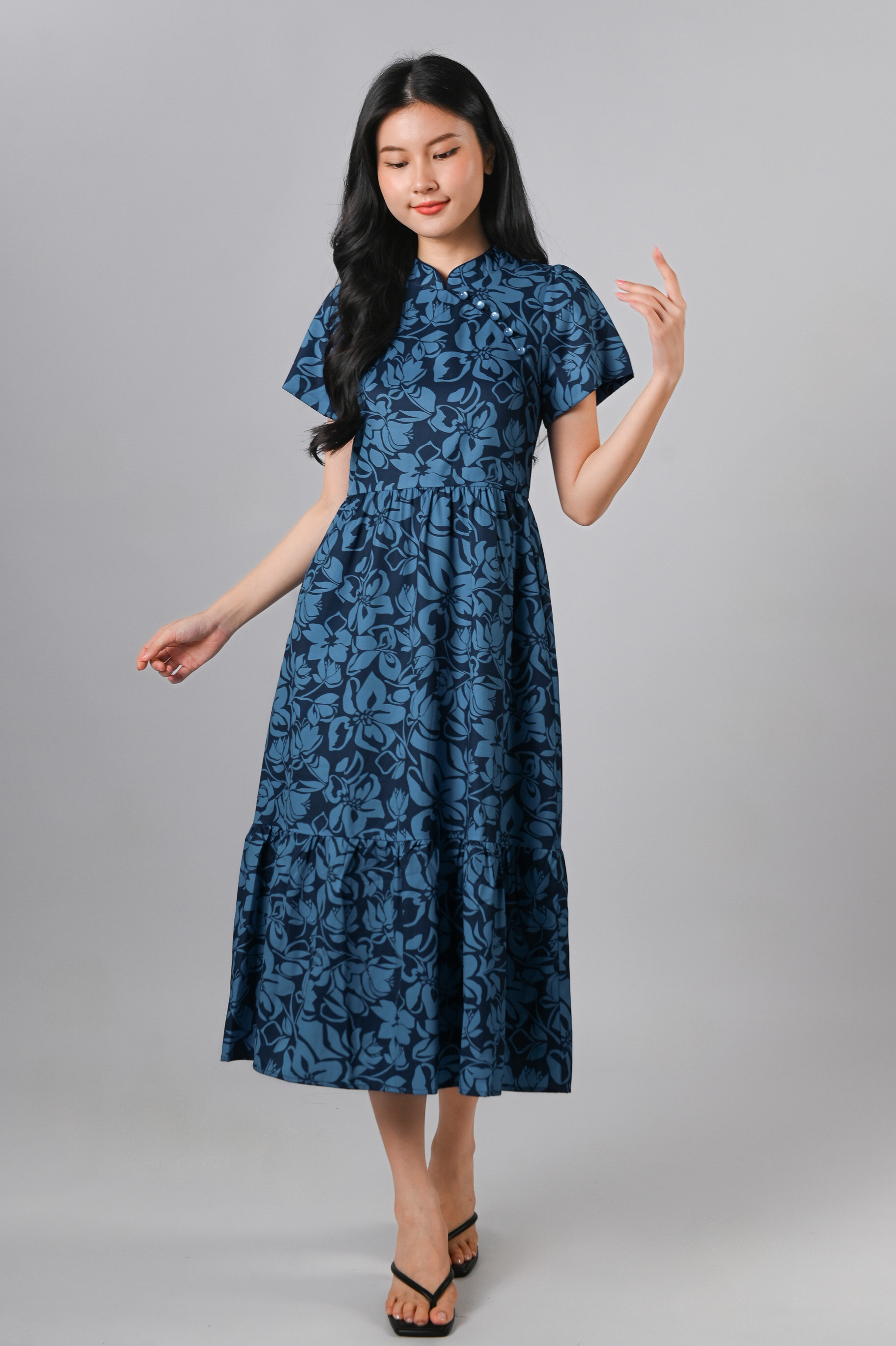 MINRU BLUE FLORAL SLEEVED CHEONGSAM DRESS