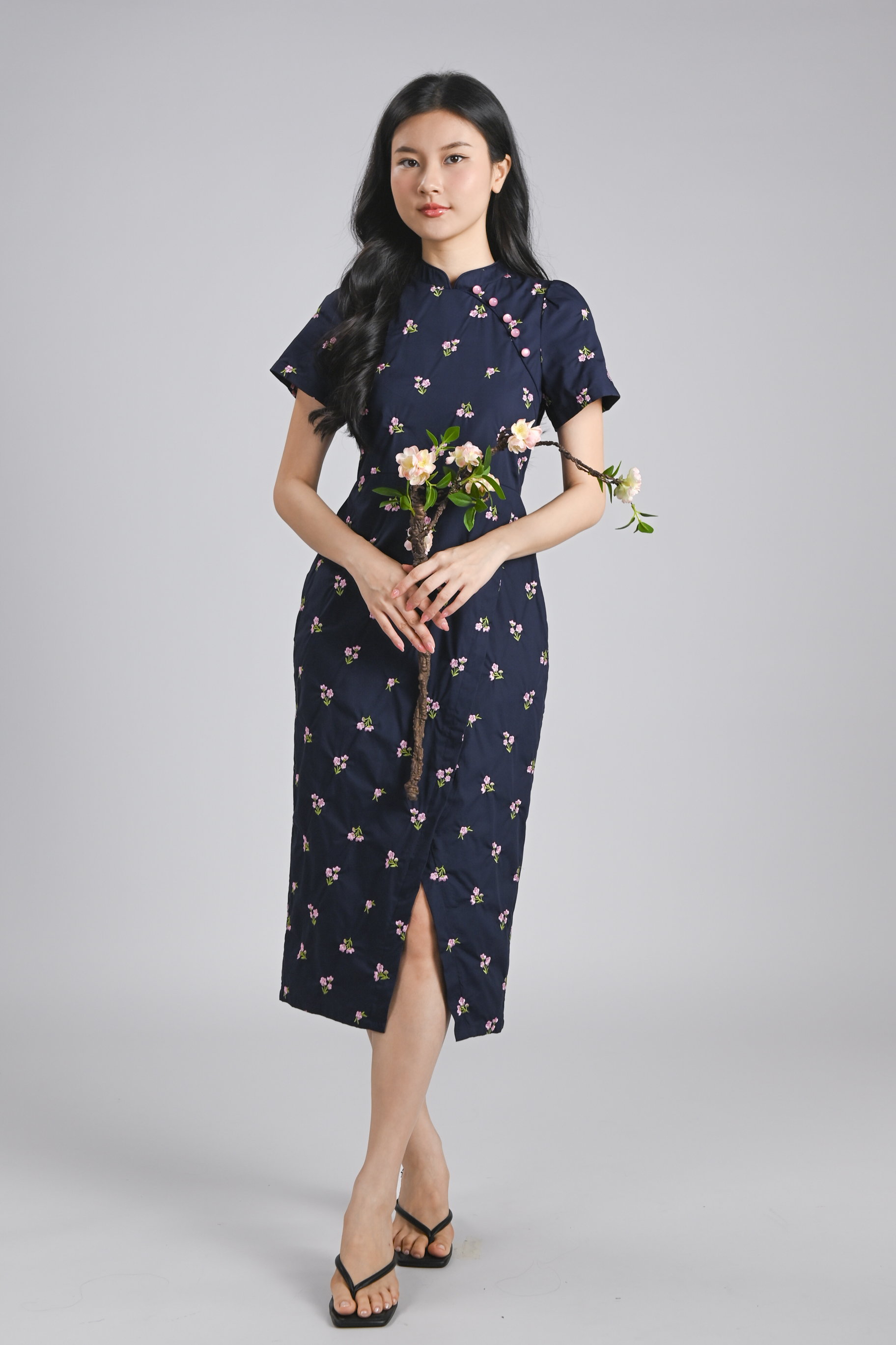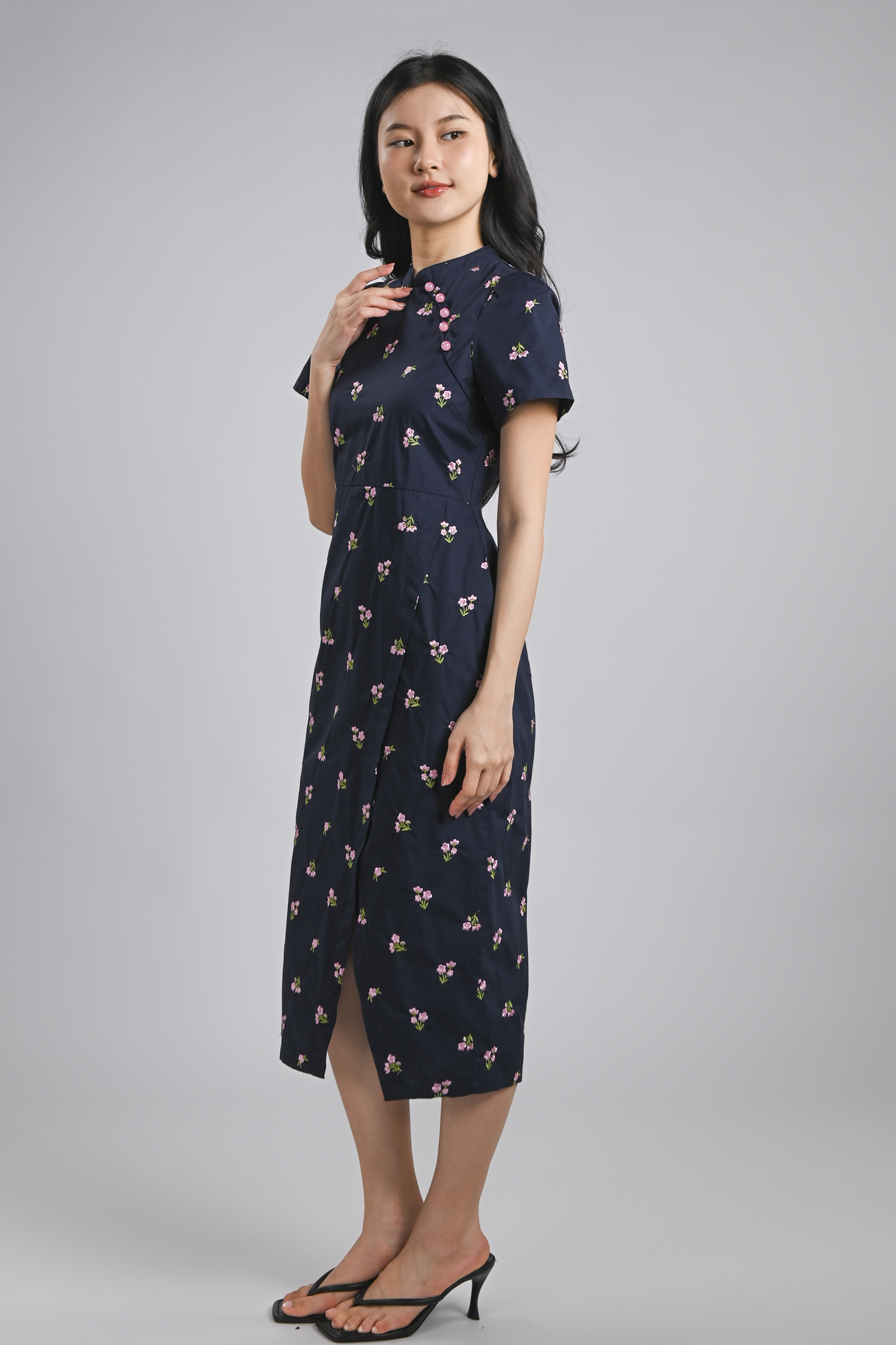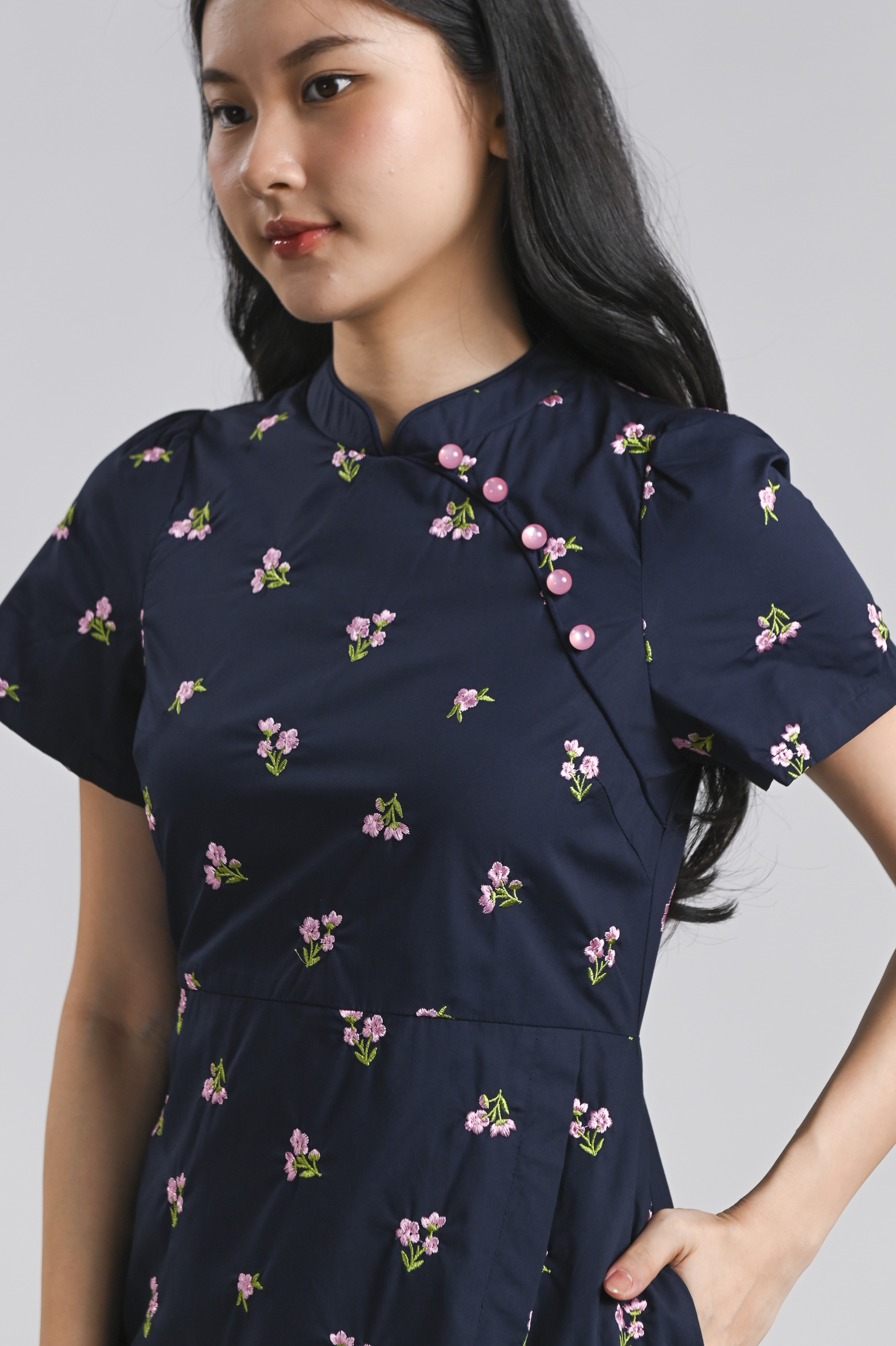 MINXUAN EMB. CHEONGSAM DRESS IN NAVY