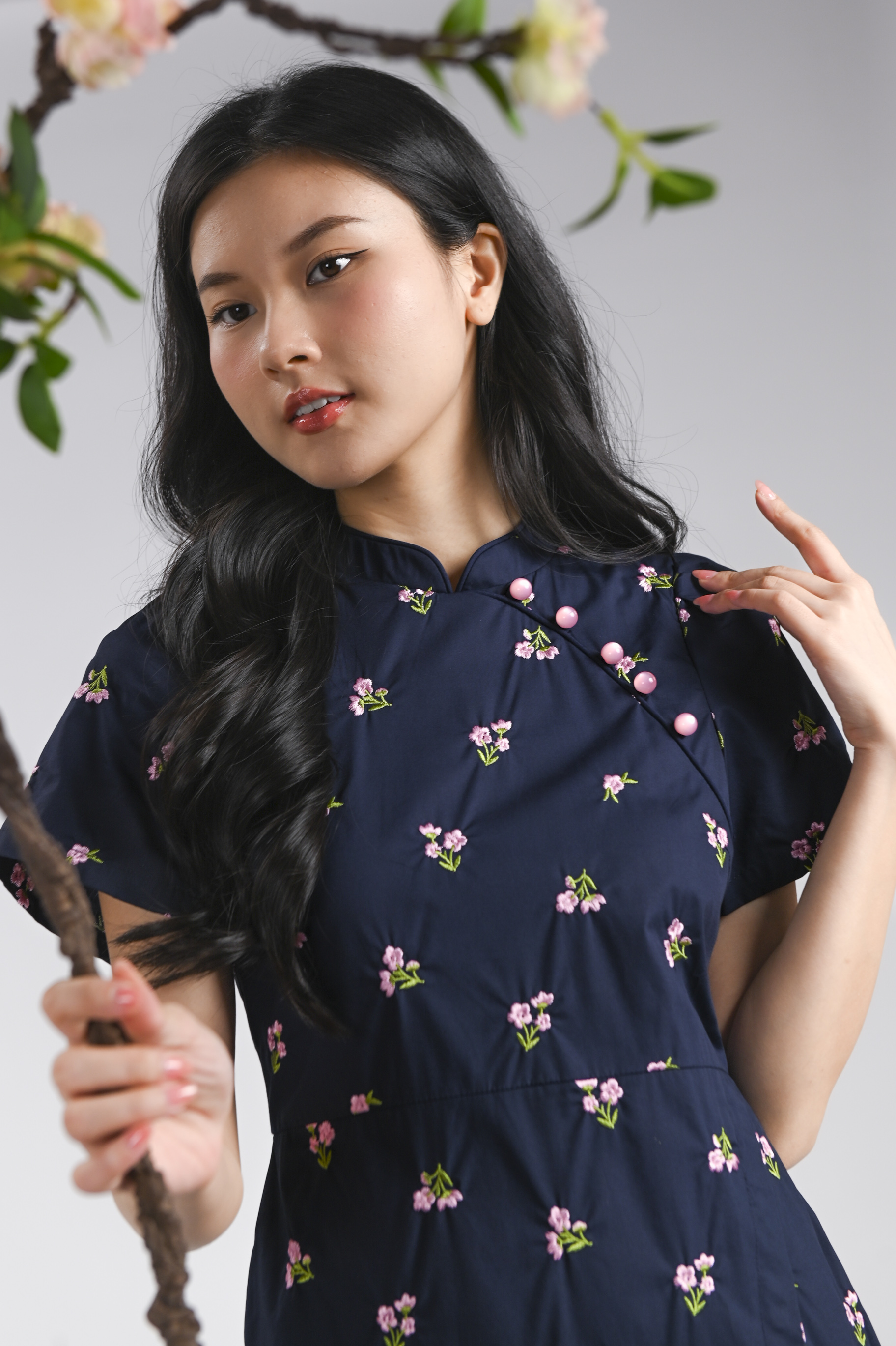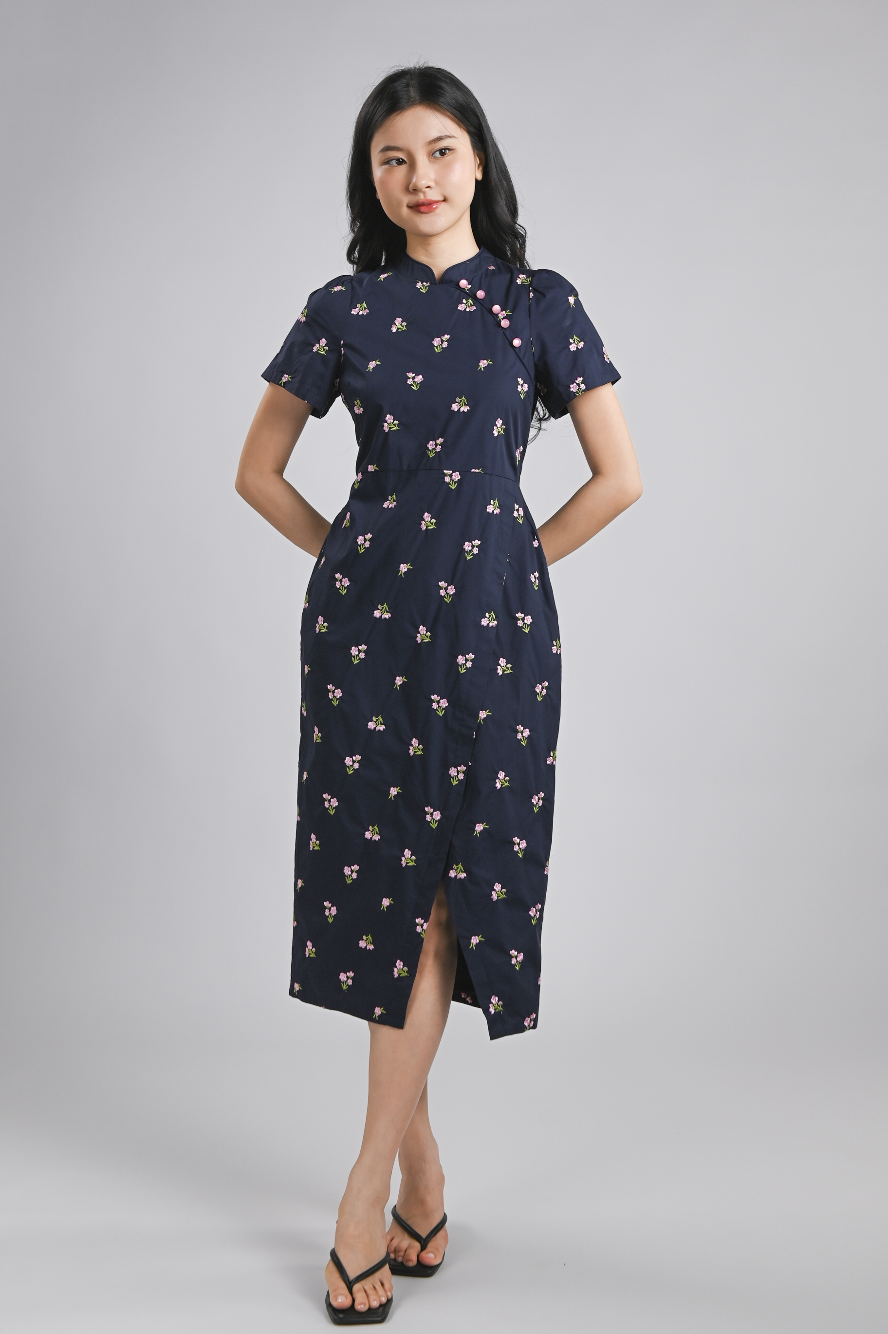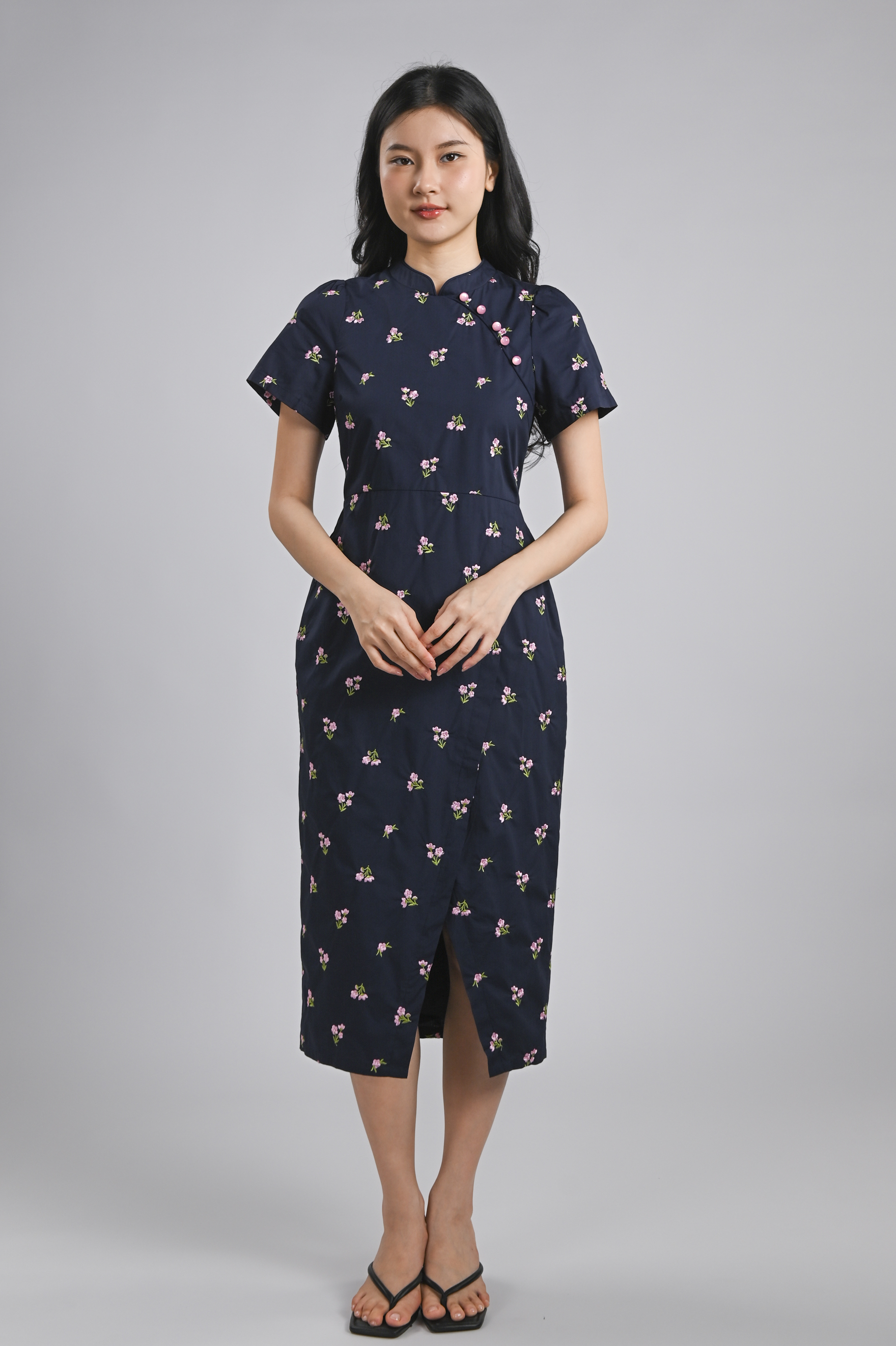 MINXUAN EMB. CHEONGSAM DRESS IN NAVY