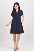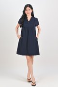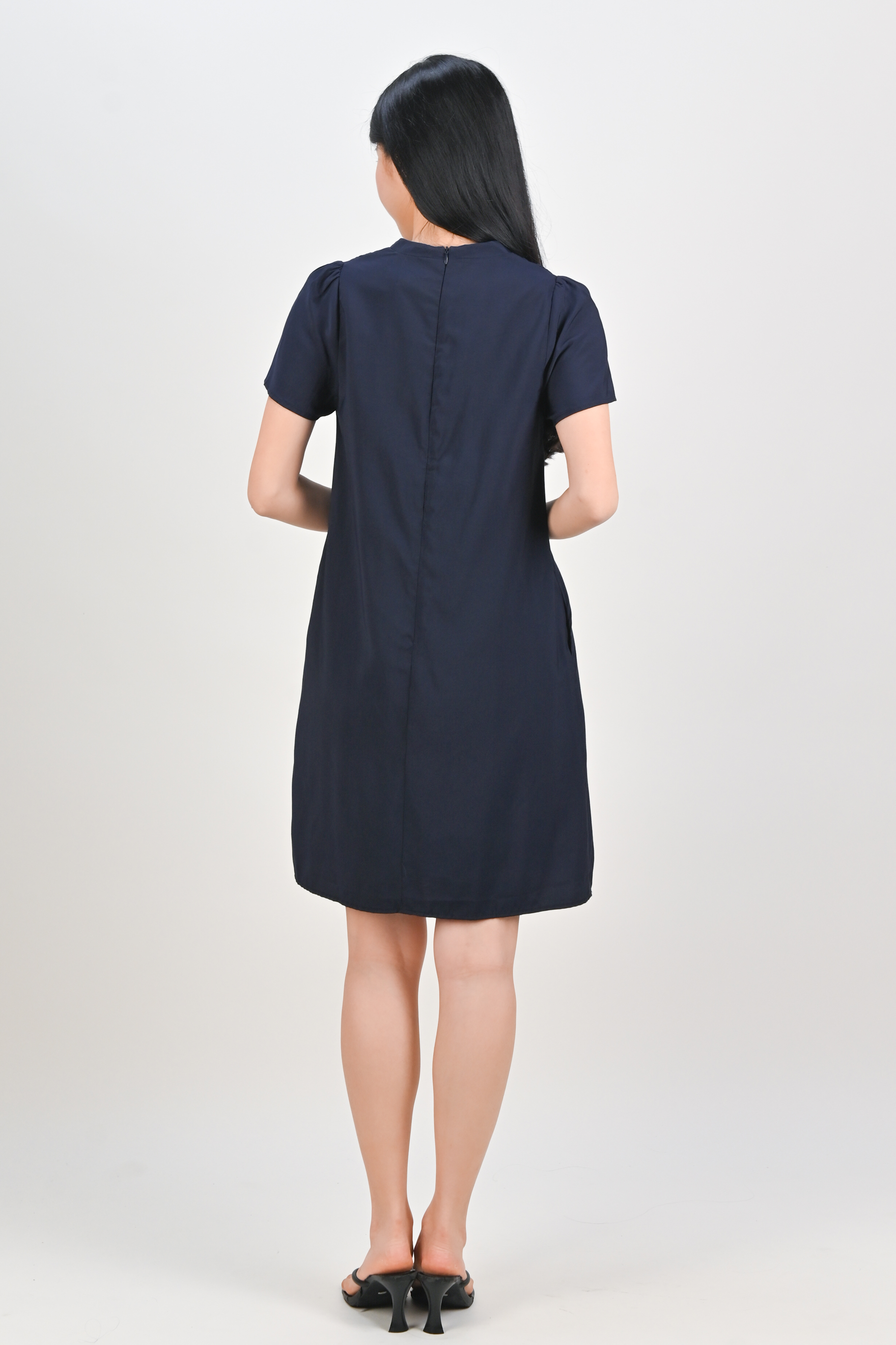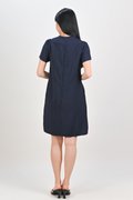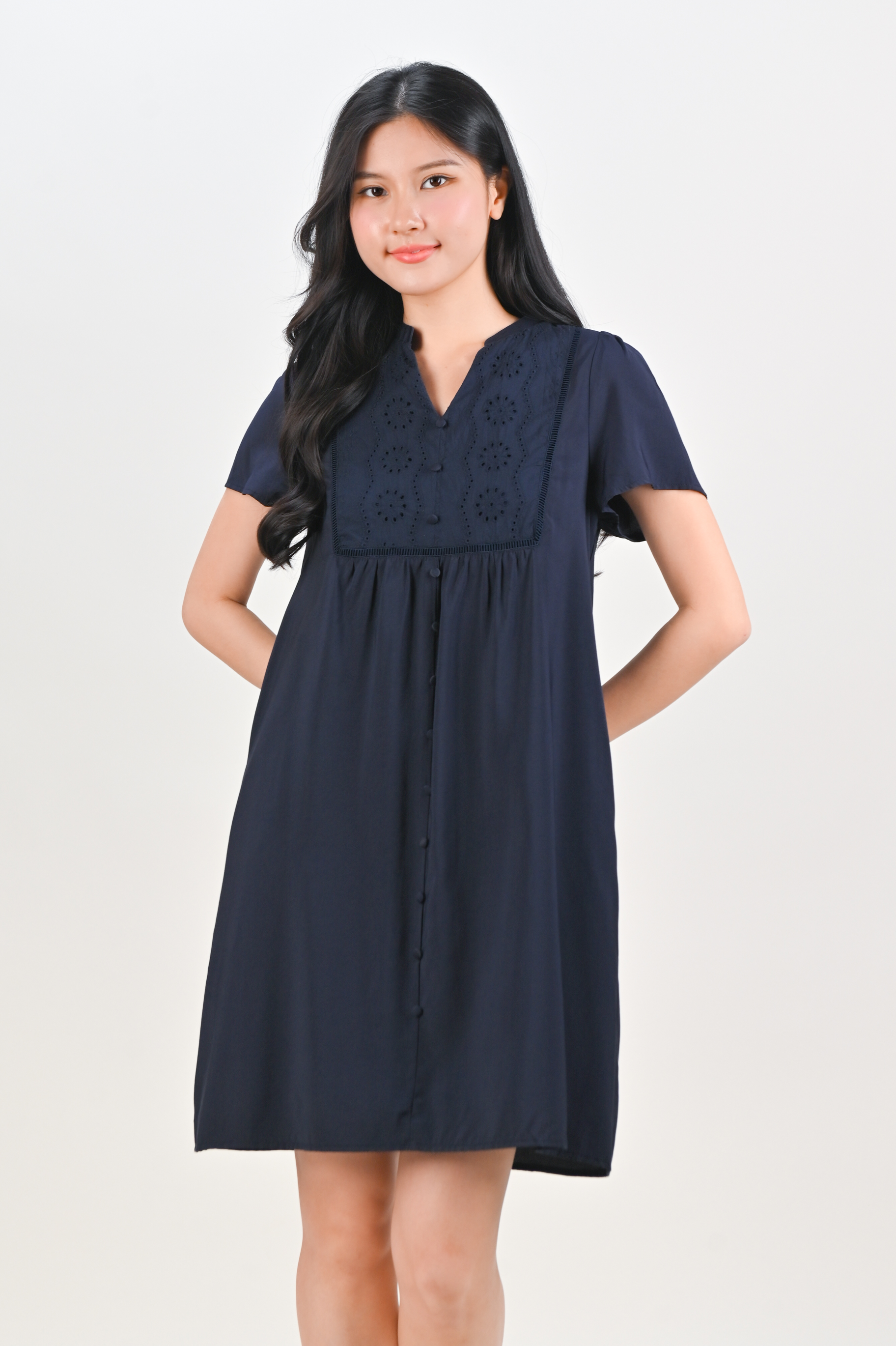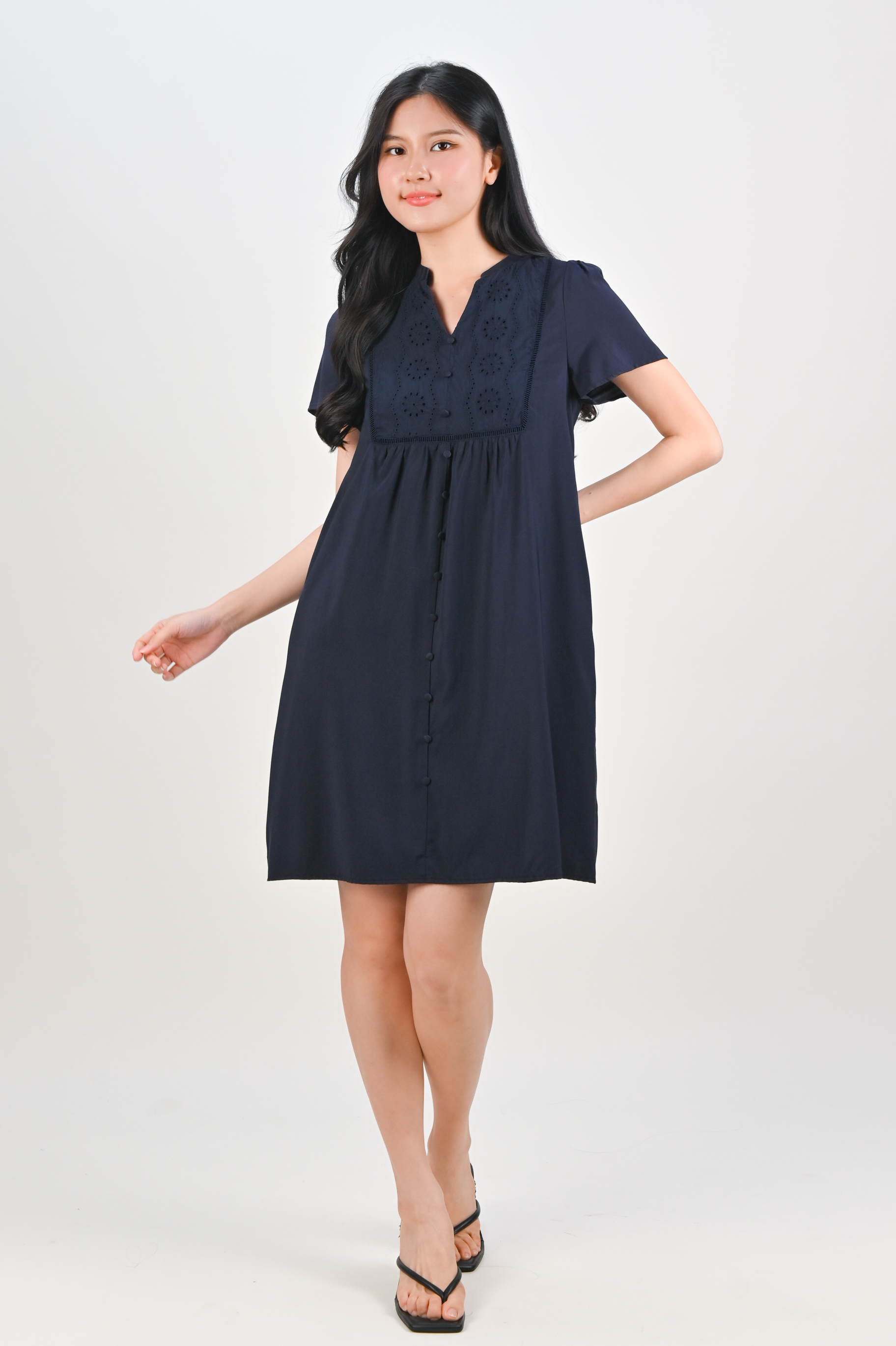 MIREYA EYELET-INSERT SLEEVED DRESS IN NAVY