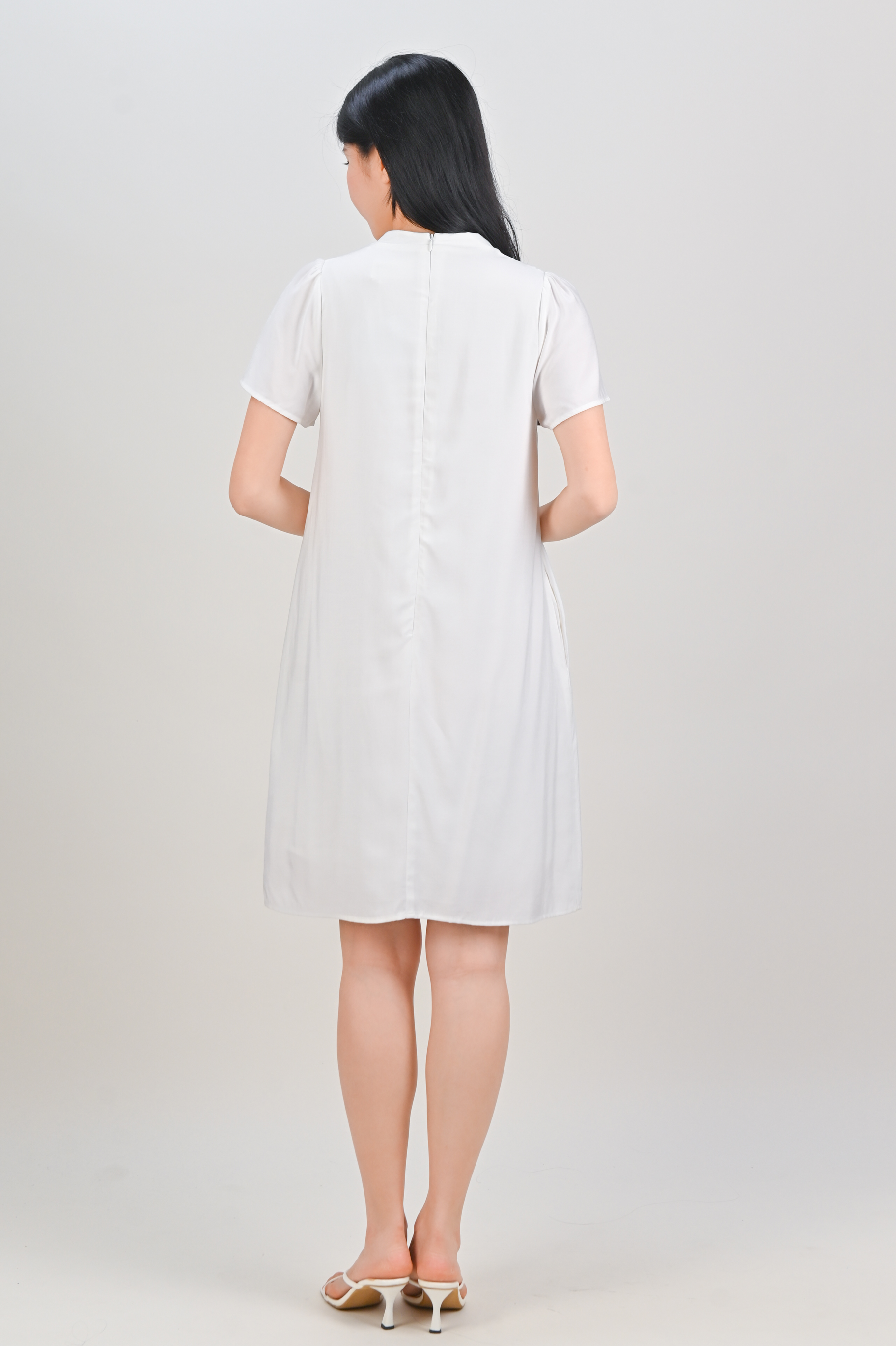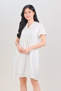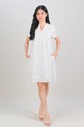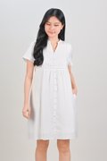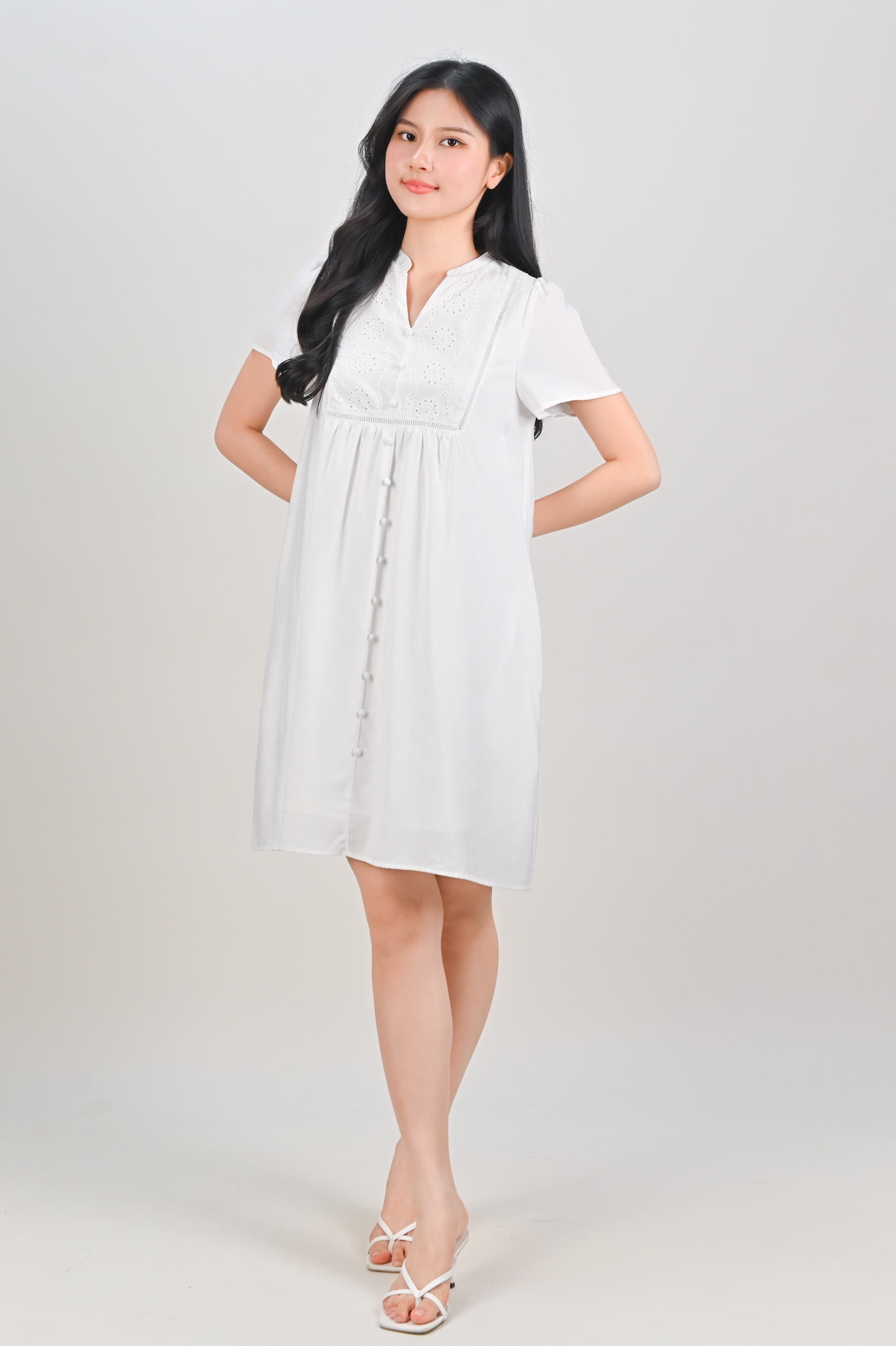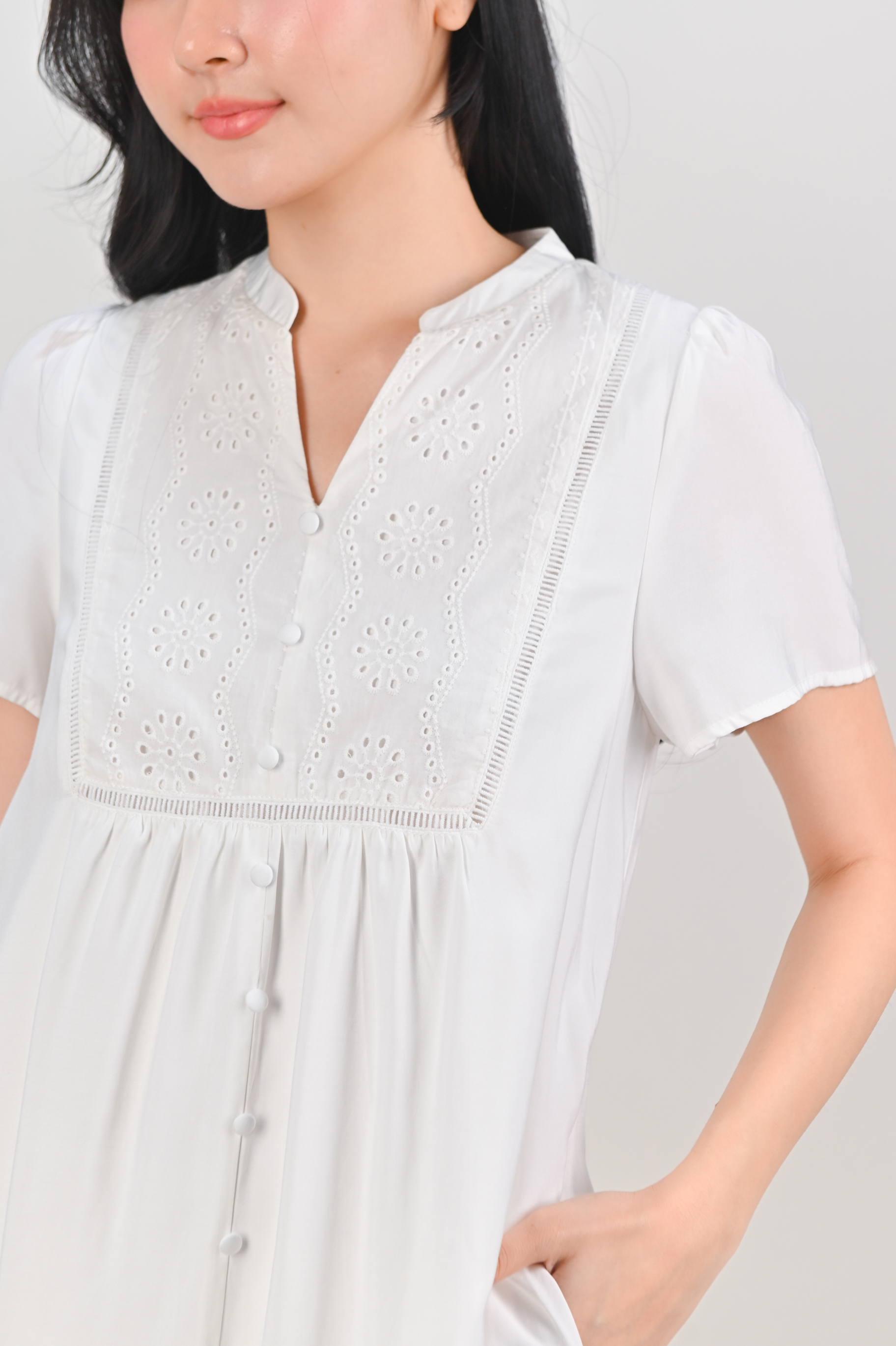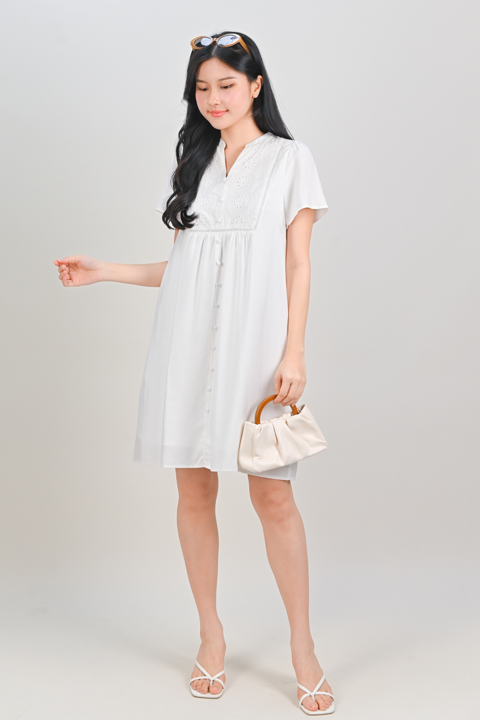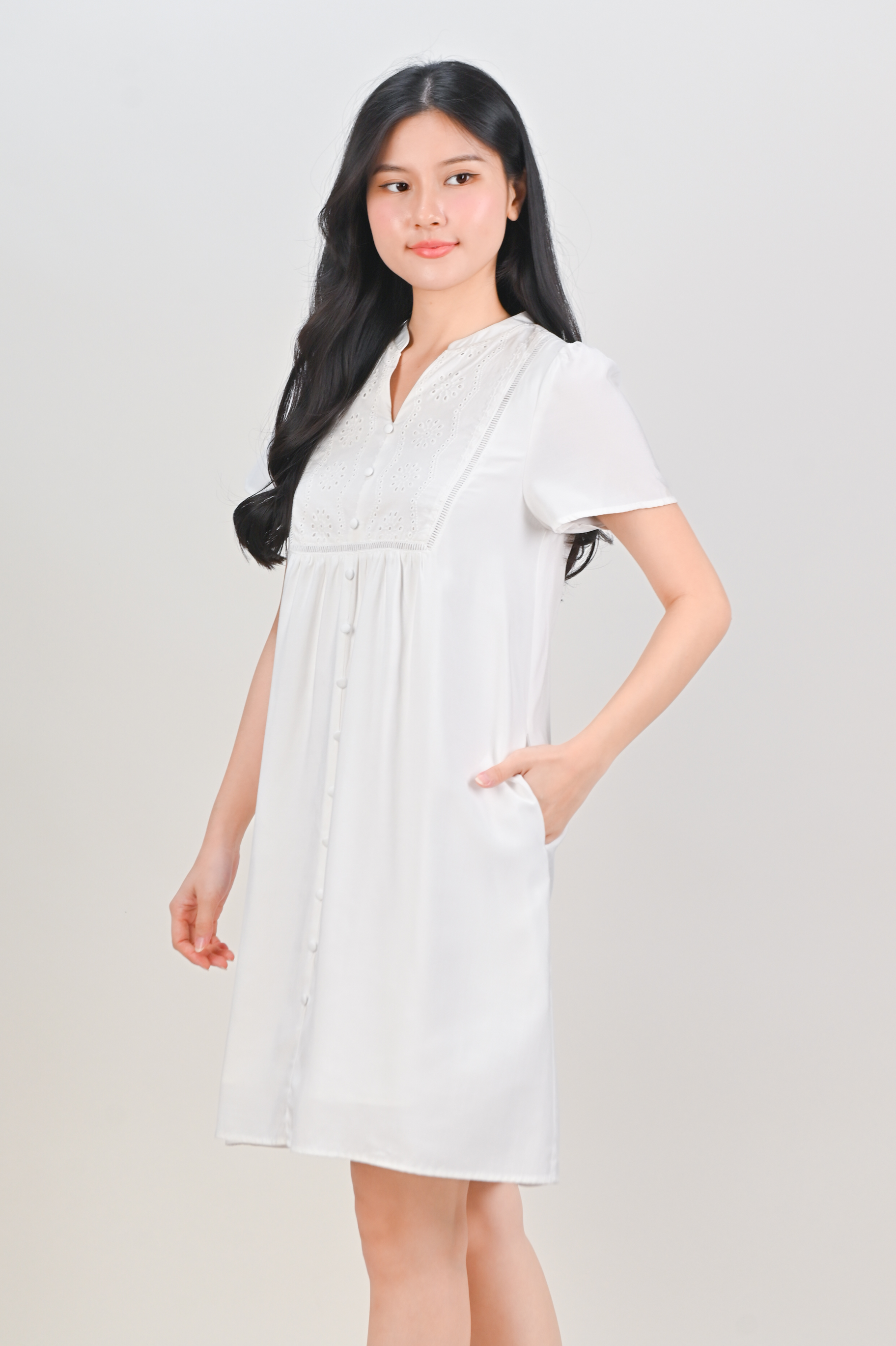 MIREYA EYELET-INSERT SLEEVED DRESS IN WHITE
