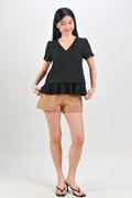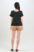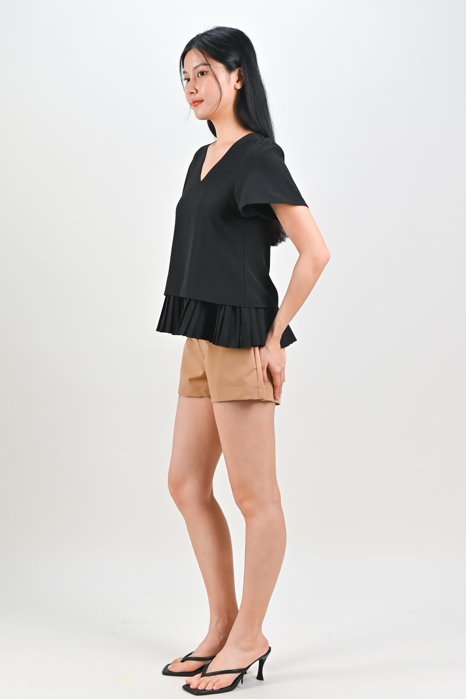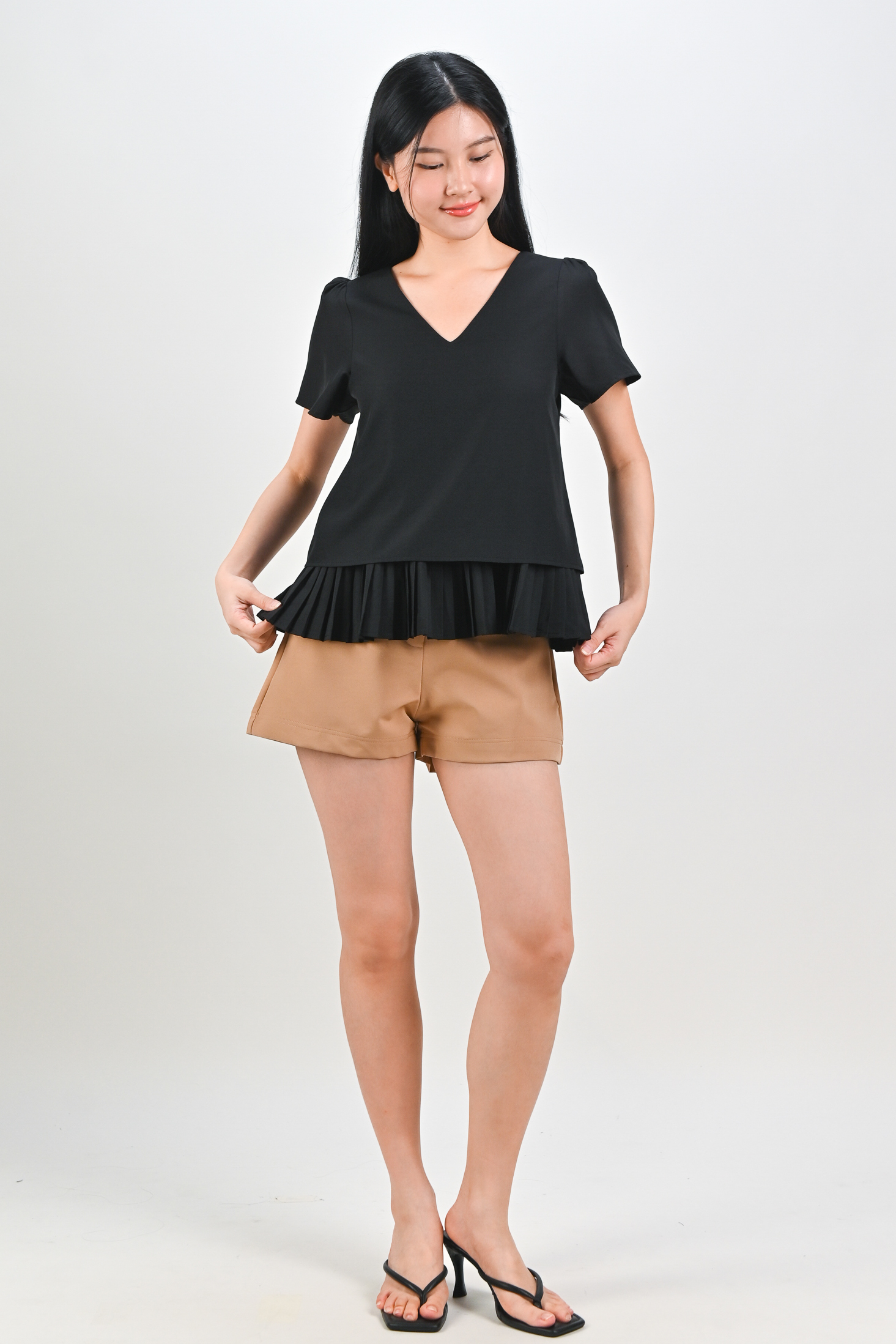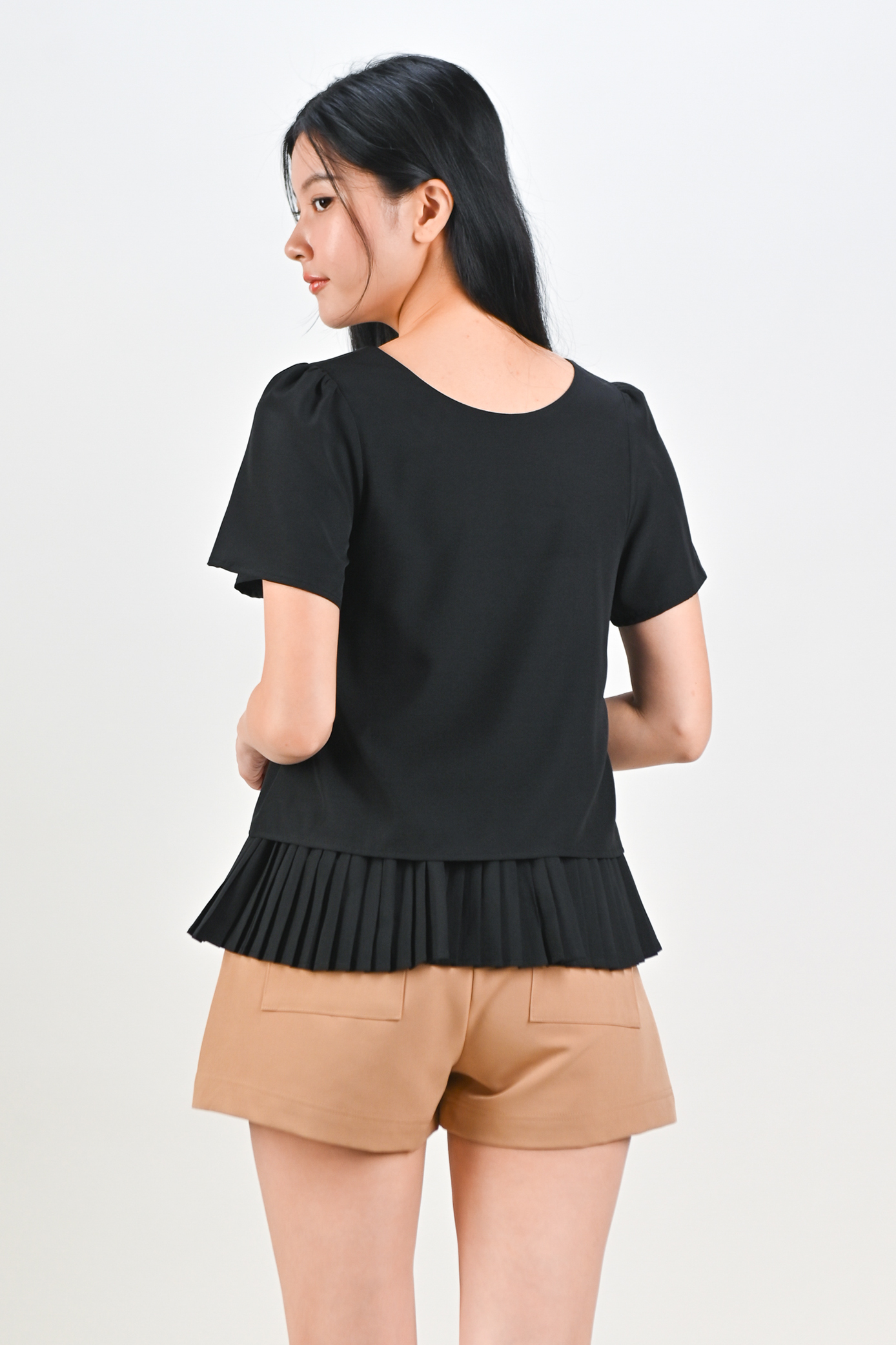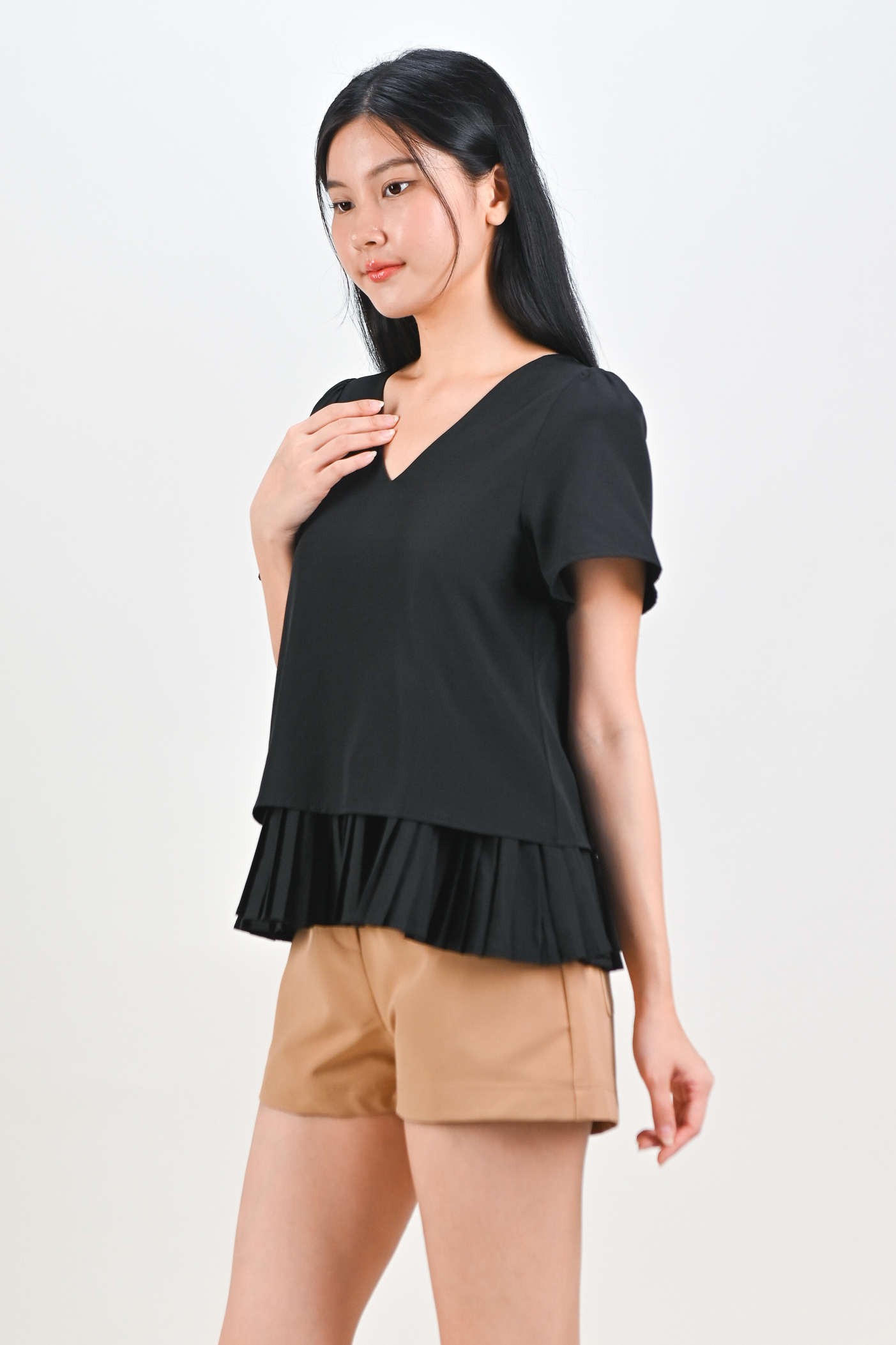 MIRI SLEEVED PLEATED-LAYER TOP IN BLACK