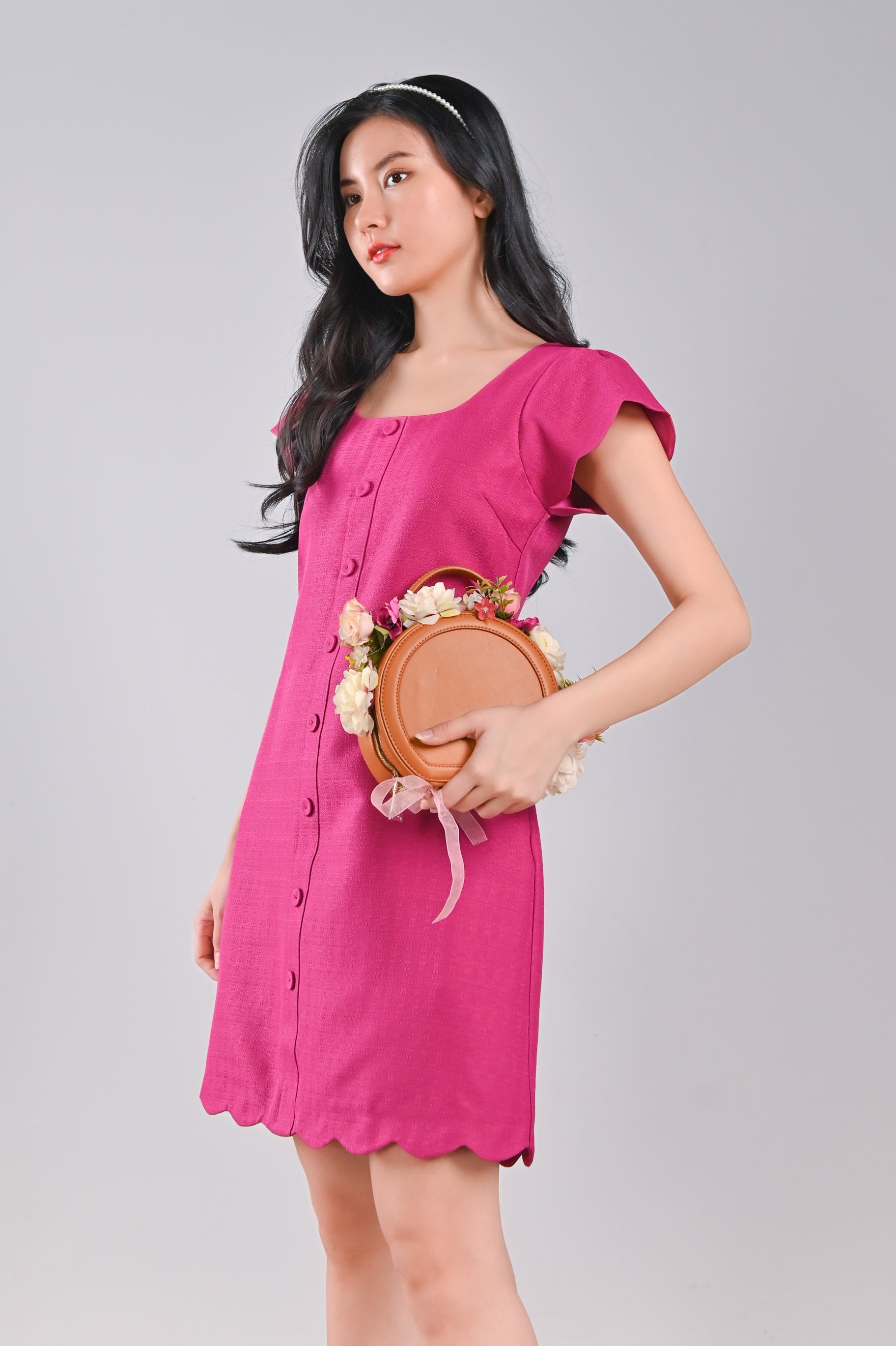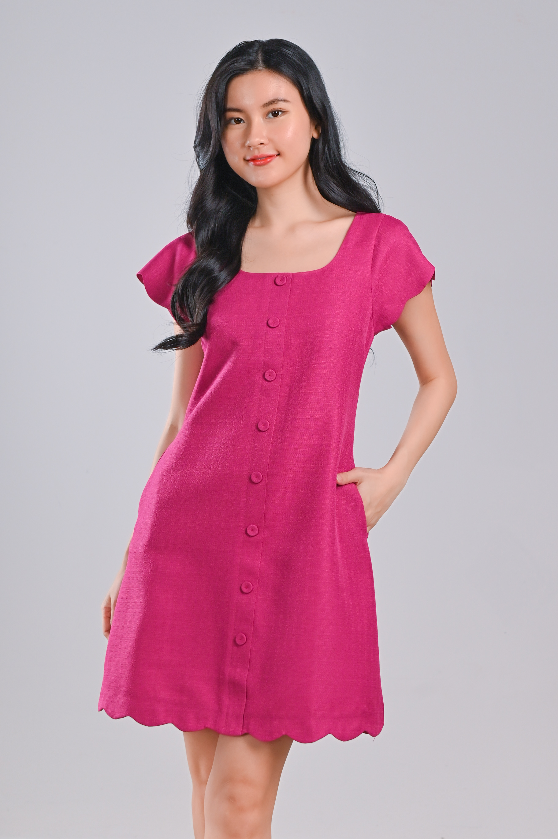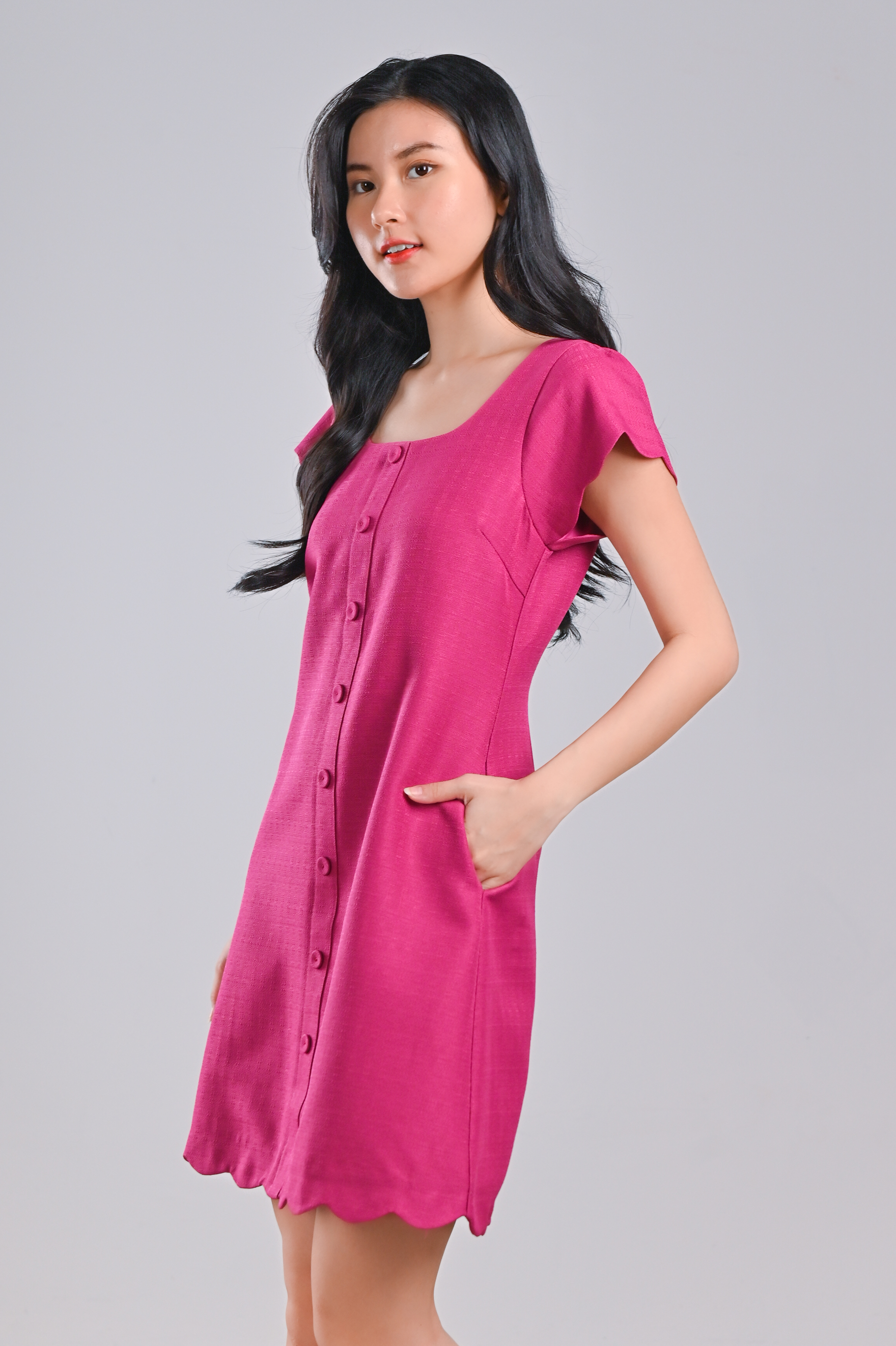 MOJA SCALLOP BUTTON DRESS IN PINK