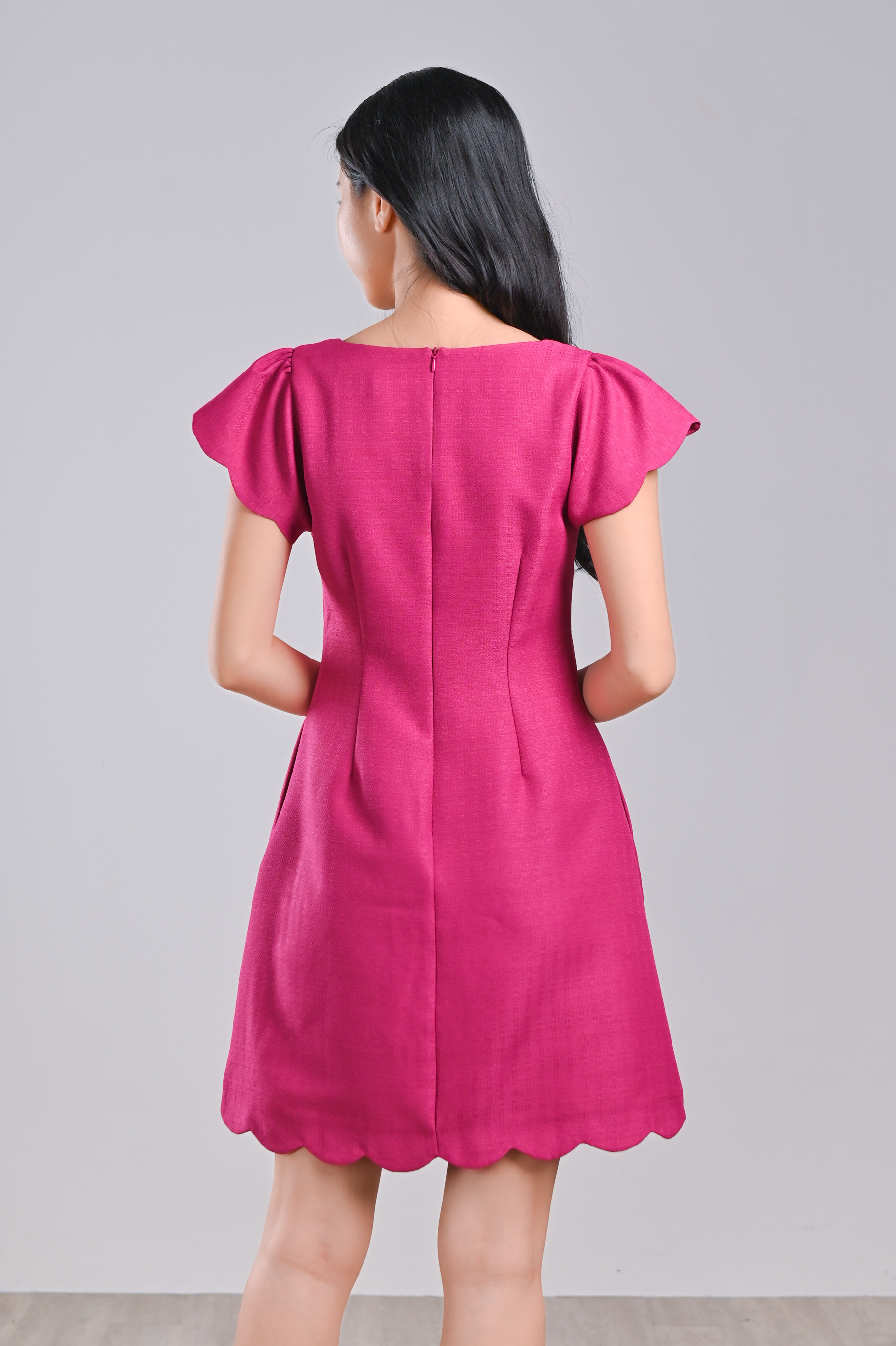 Actual stocks may varySweet scallops, smooth style - our Moja Scallop Button Dress is a cute work-and-play outfit you know you want! 💖
