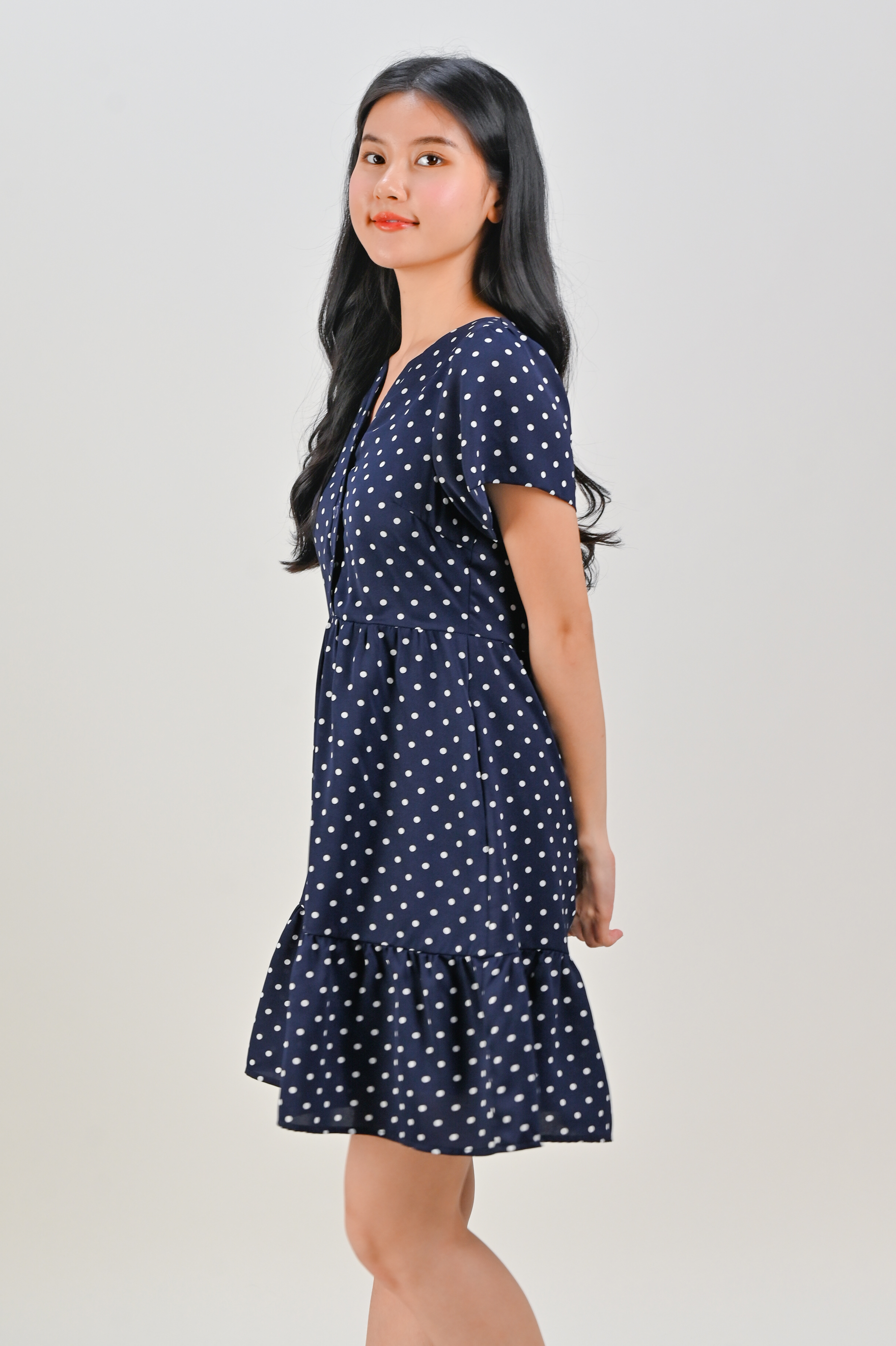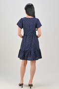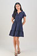 MOMOKO NAVY POLKA BUTTON FLOUNCE DRESS