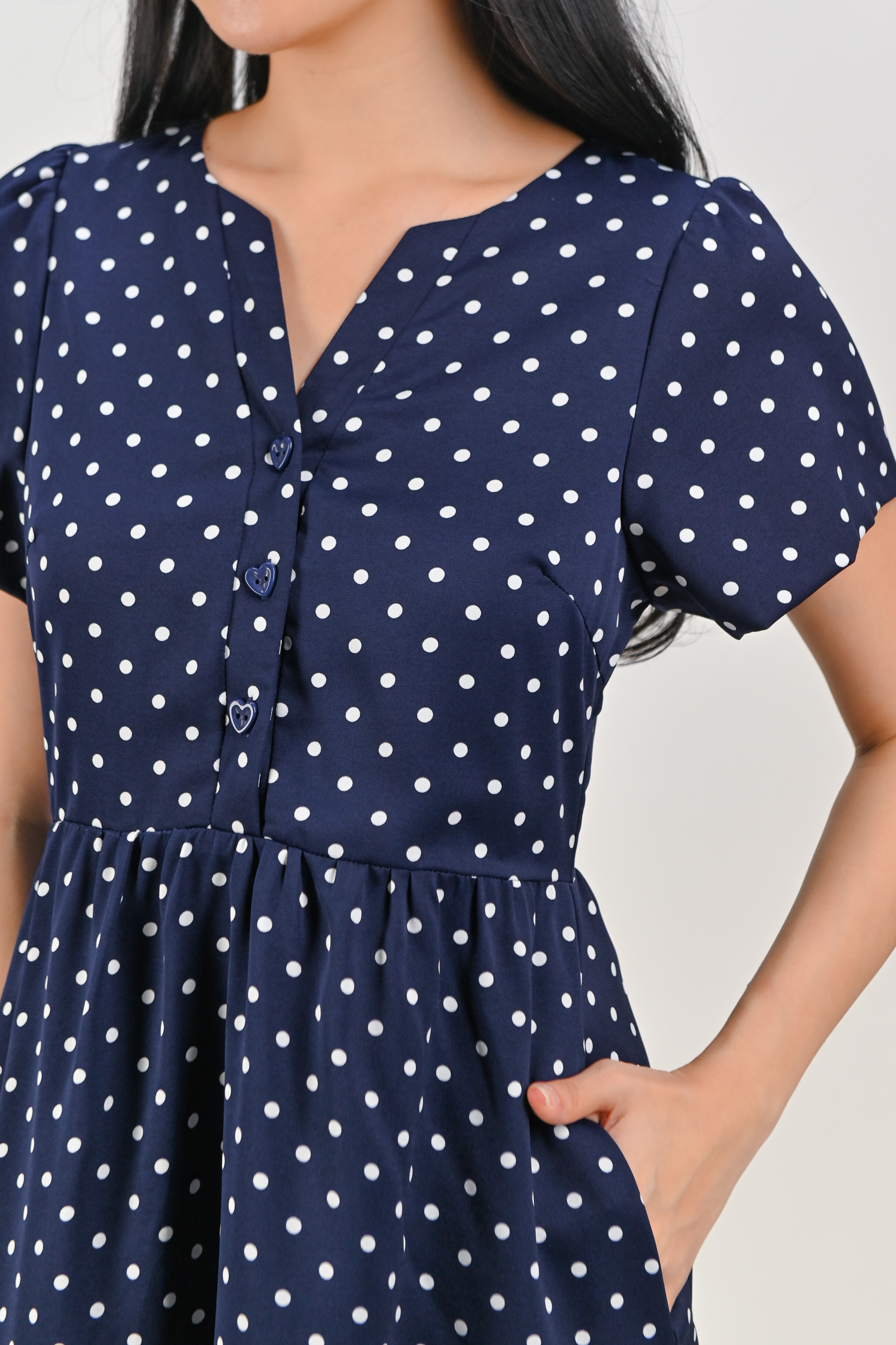 Actual stocks may varyOur Momoko Navy Polka Dress certainly hits the spot! ⚪️🔵 Let your day unfold in effortless style with this easy pick!