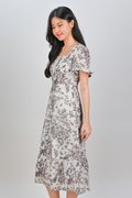 MOXIE BUTTERFLY SLEEVED MIDI DRESS IN PEACH