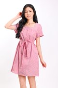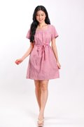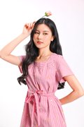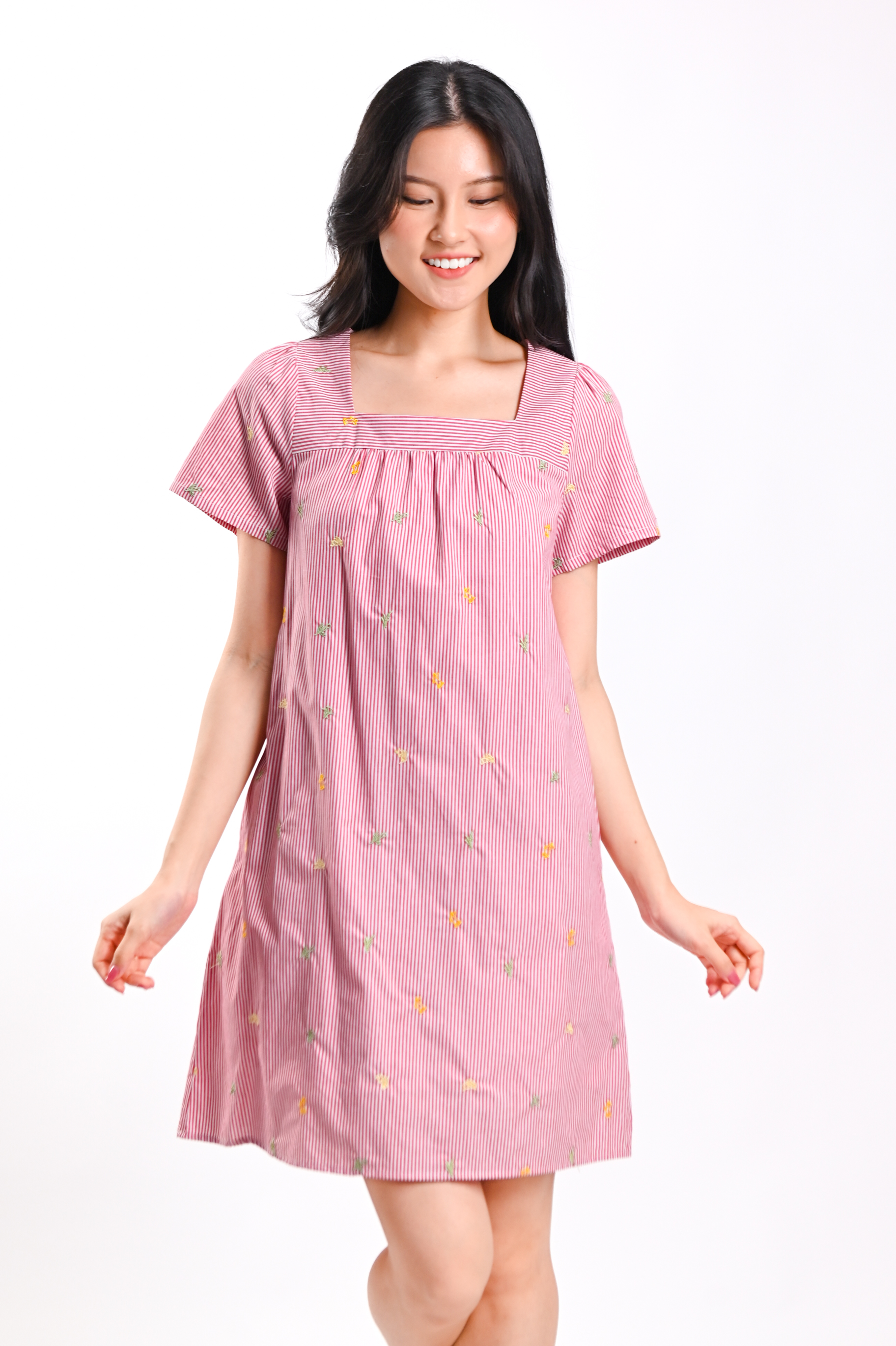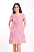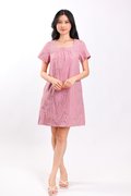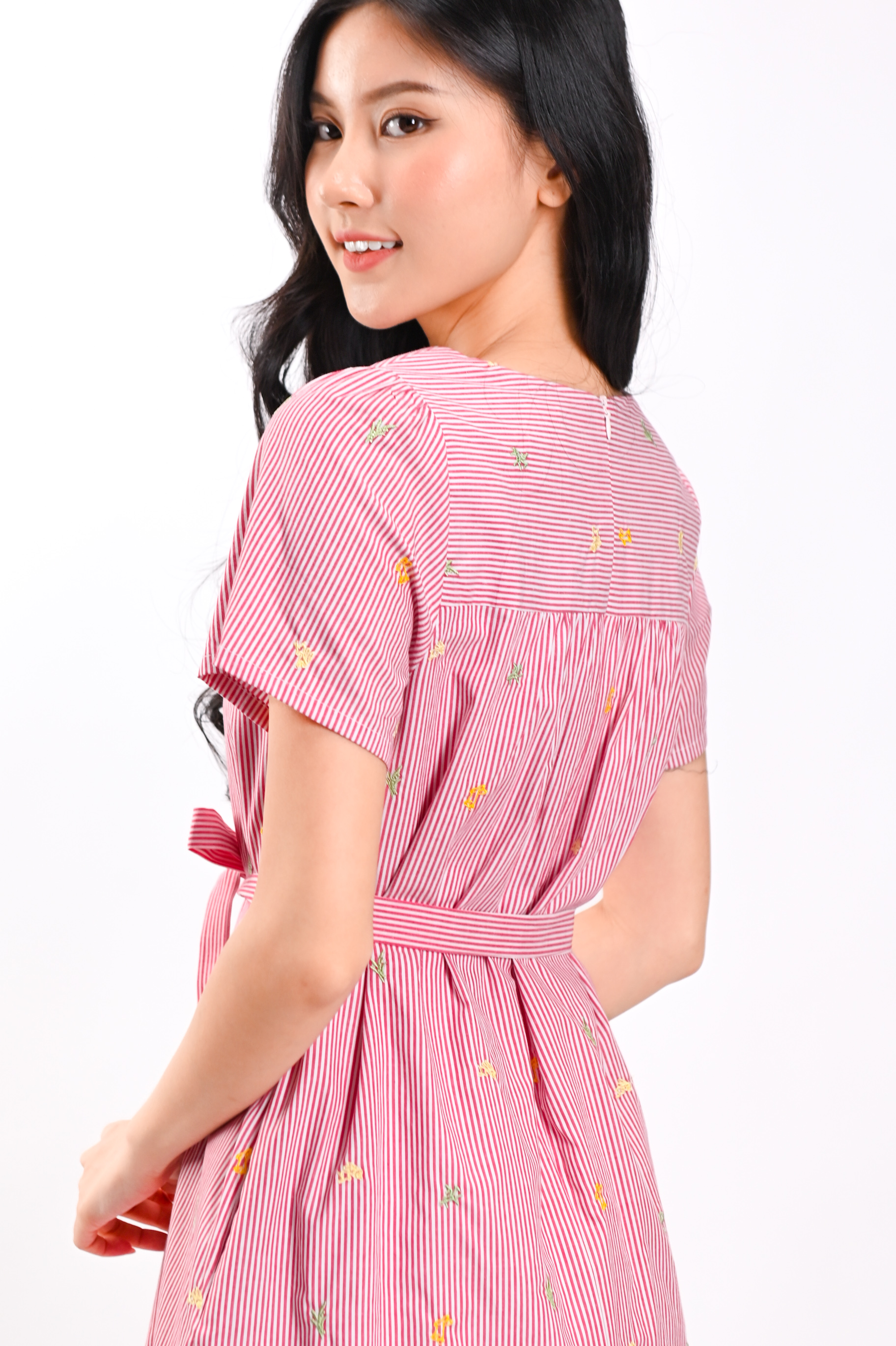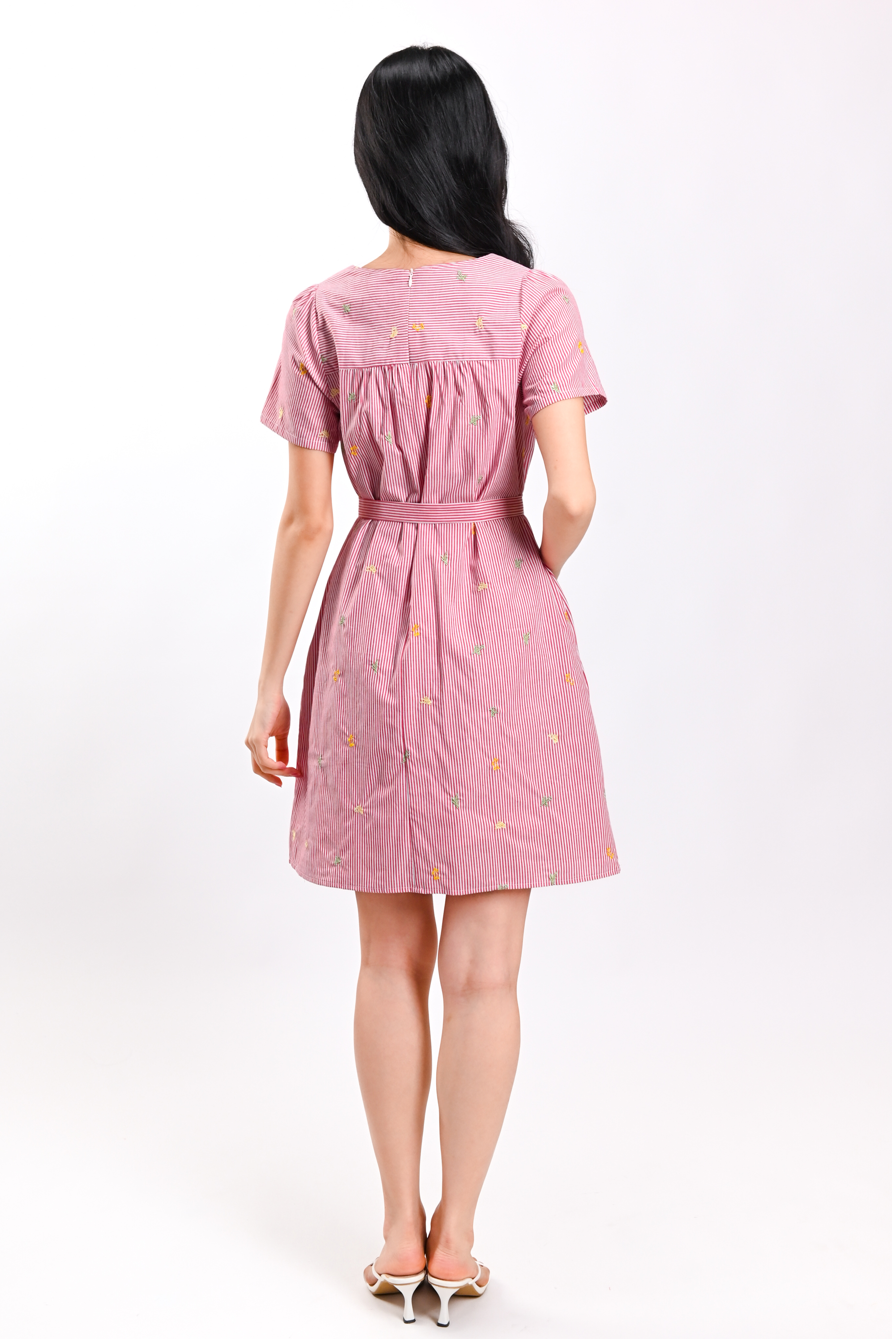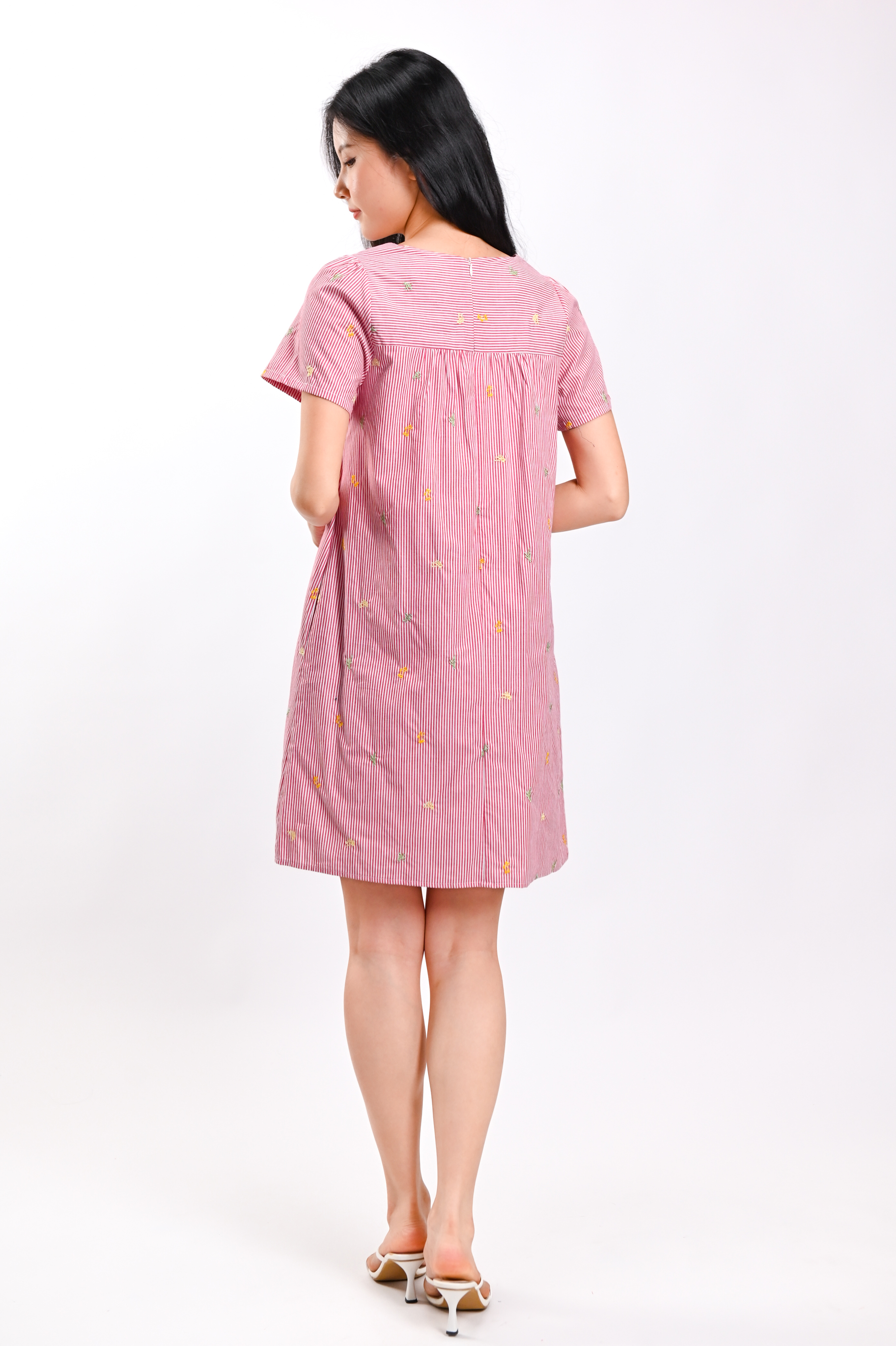 MYLLA BUNNY EMB. SLEEVED DRESS IN BERRY STRIPES