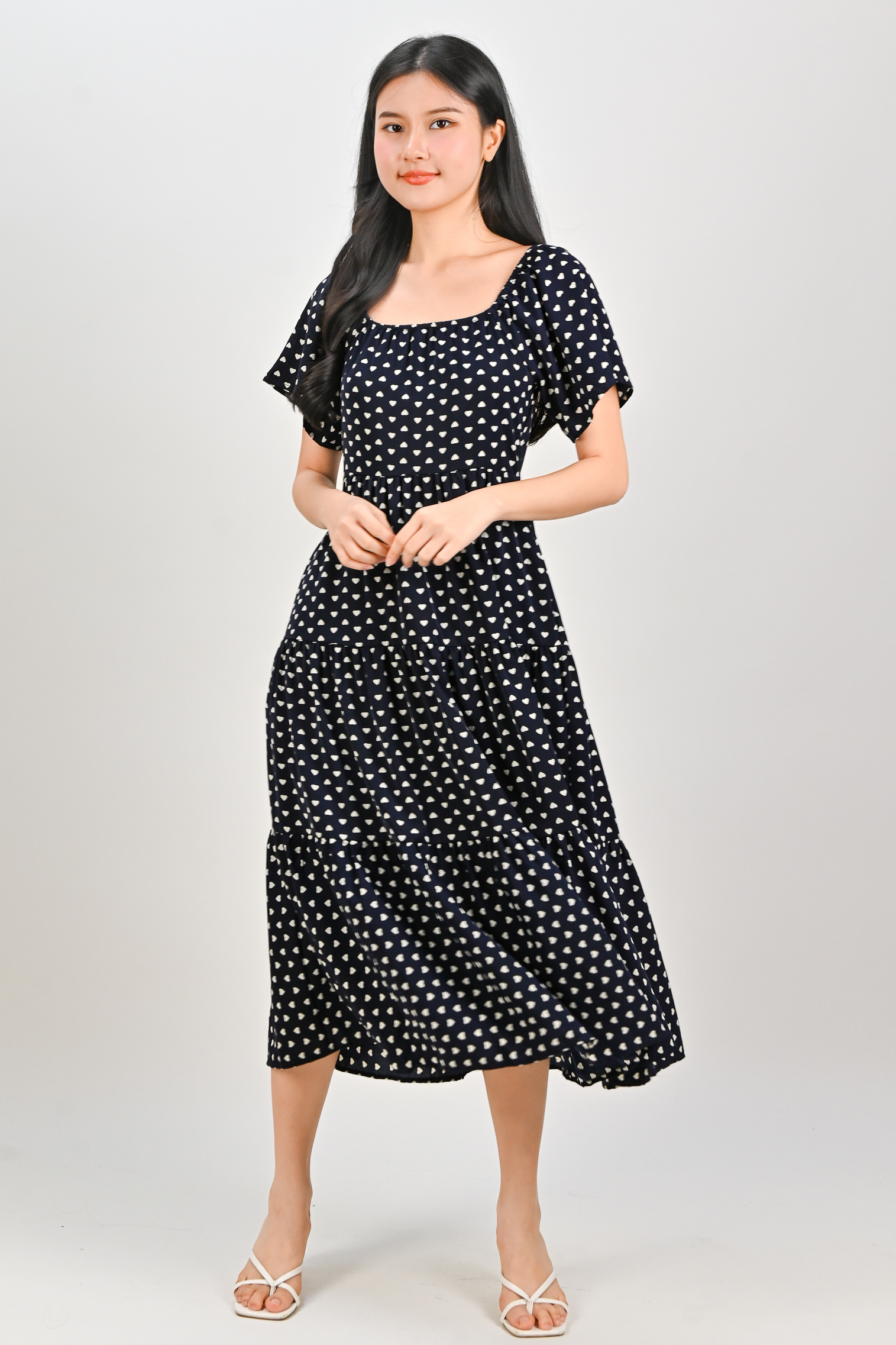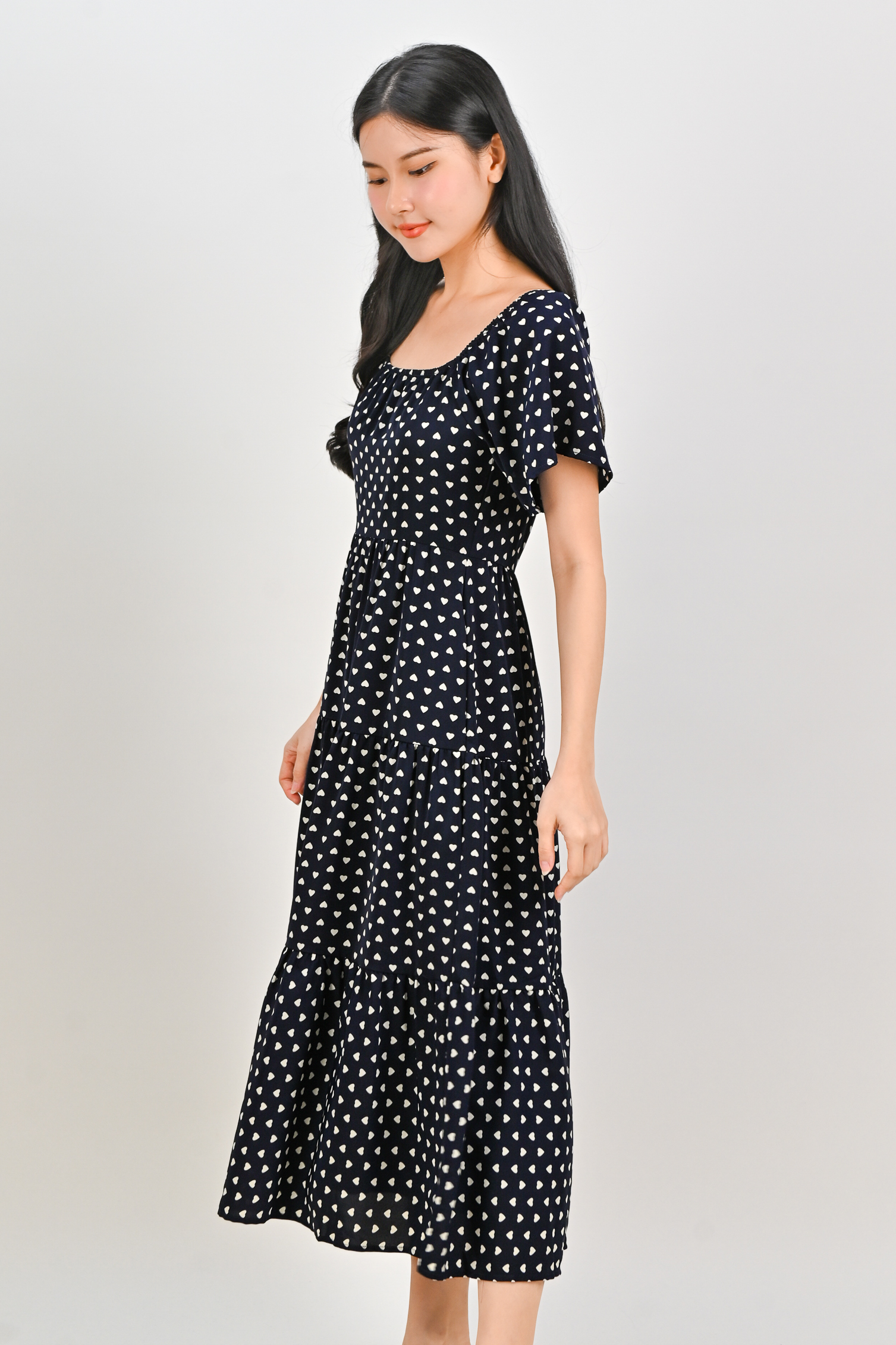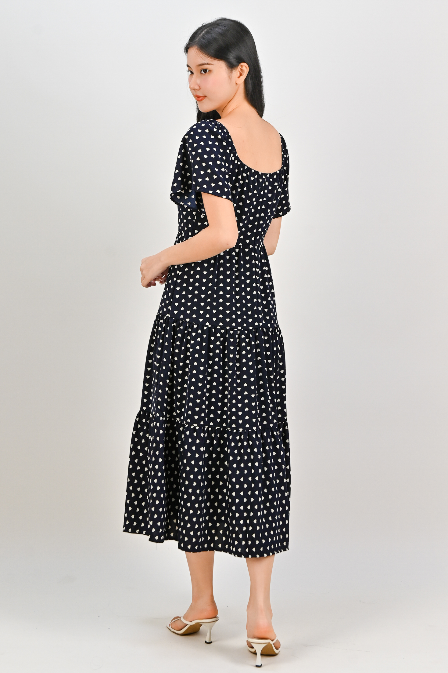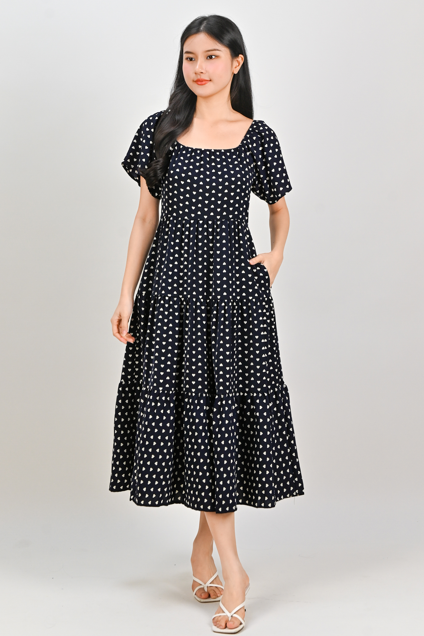 NABI SCOOP-NECK TIERED DRESS IN NAVY HEARTS