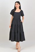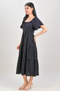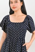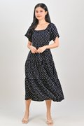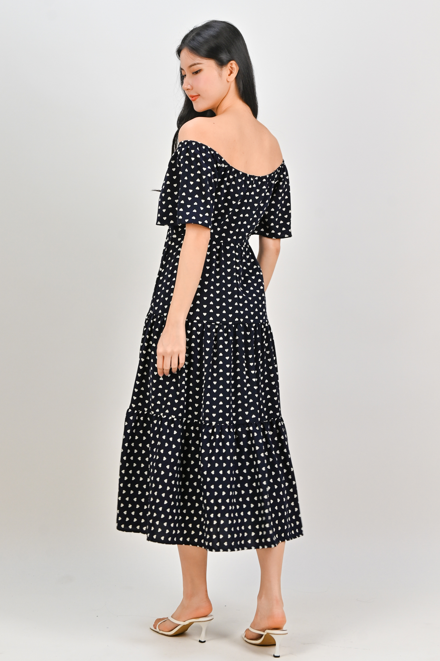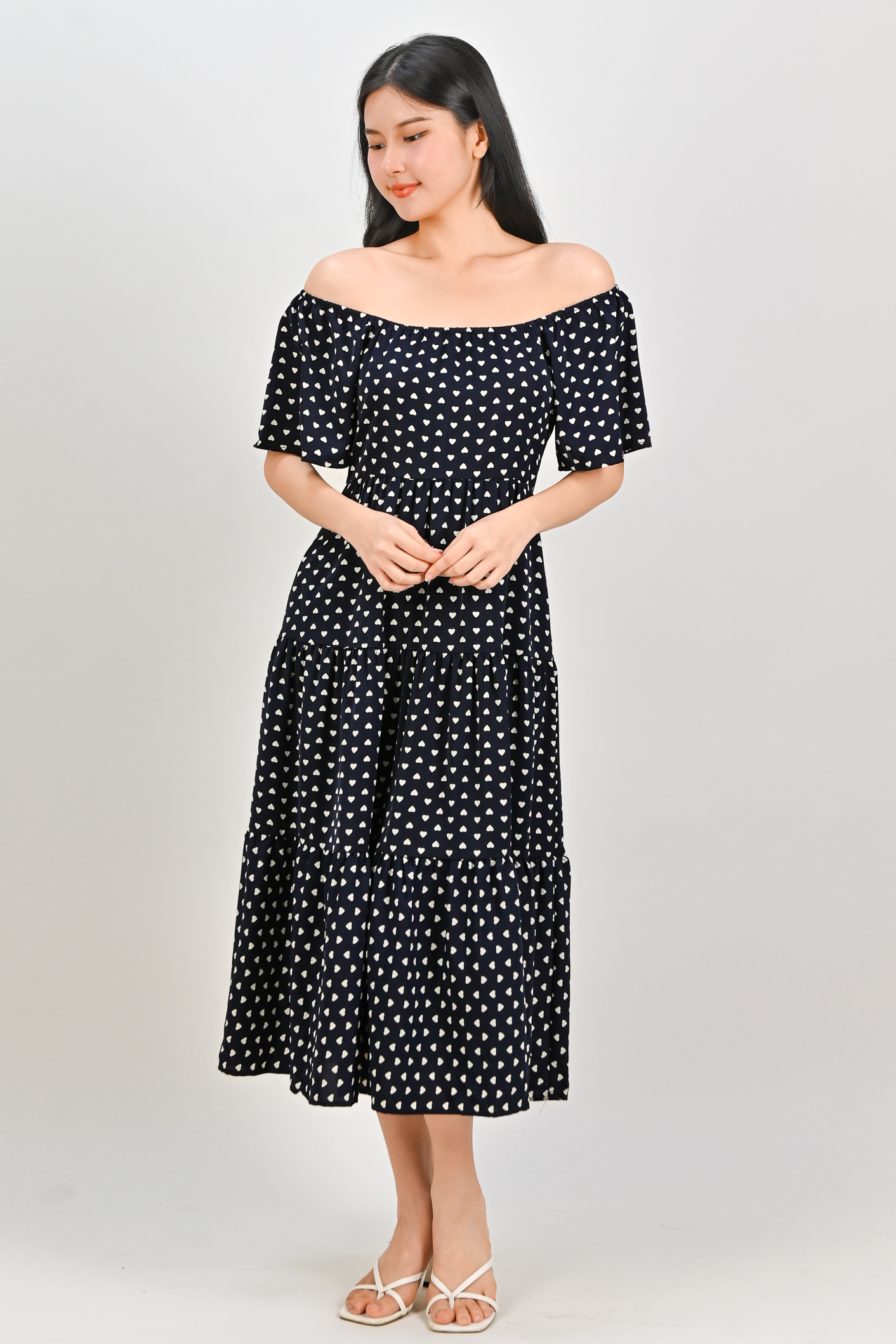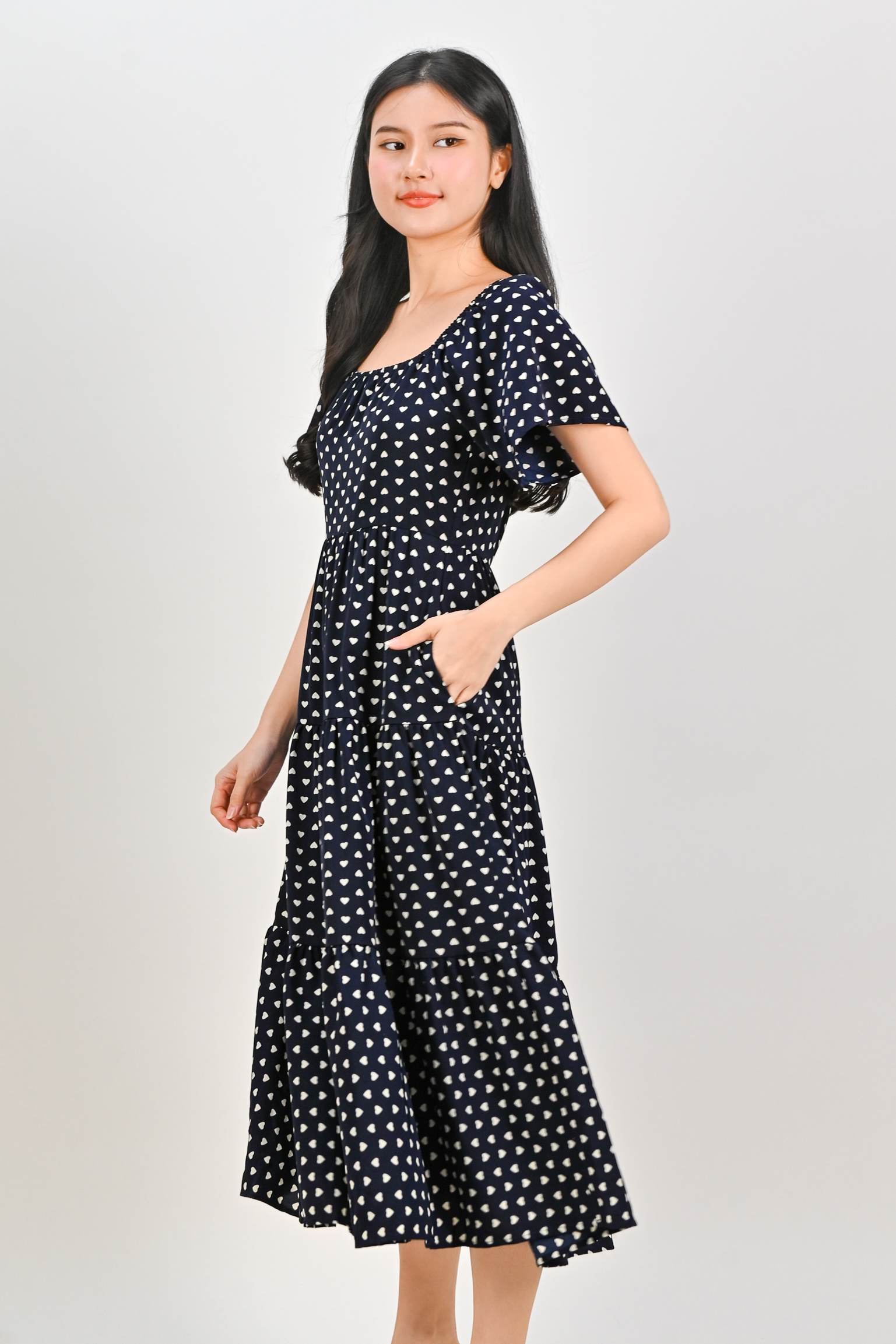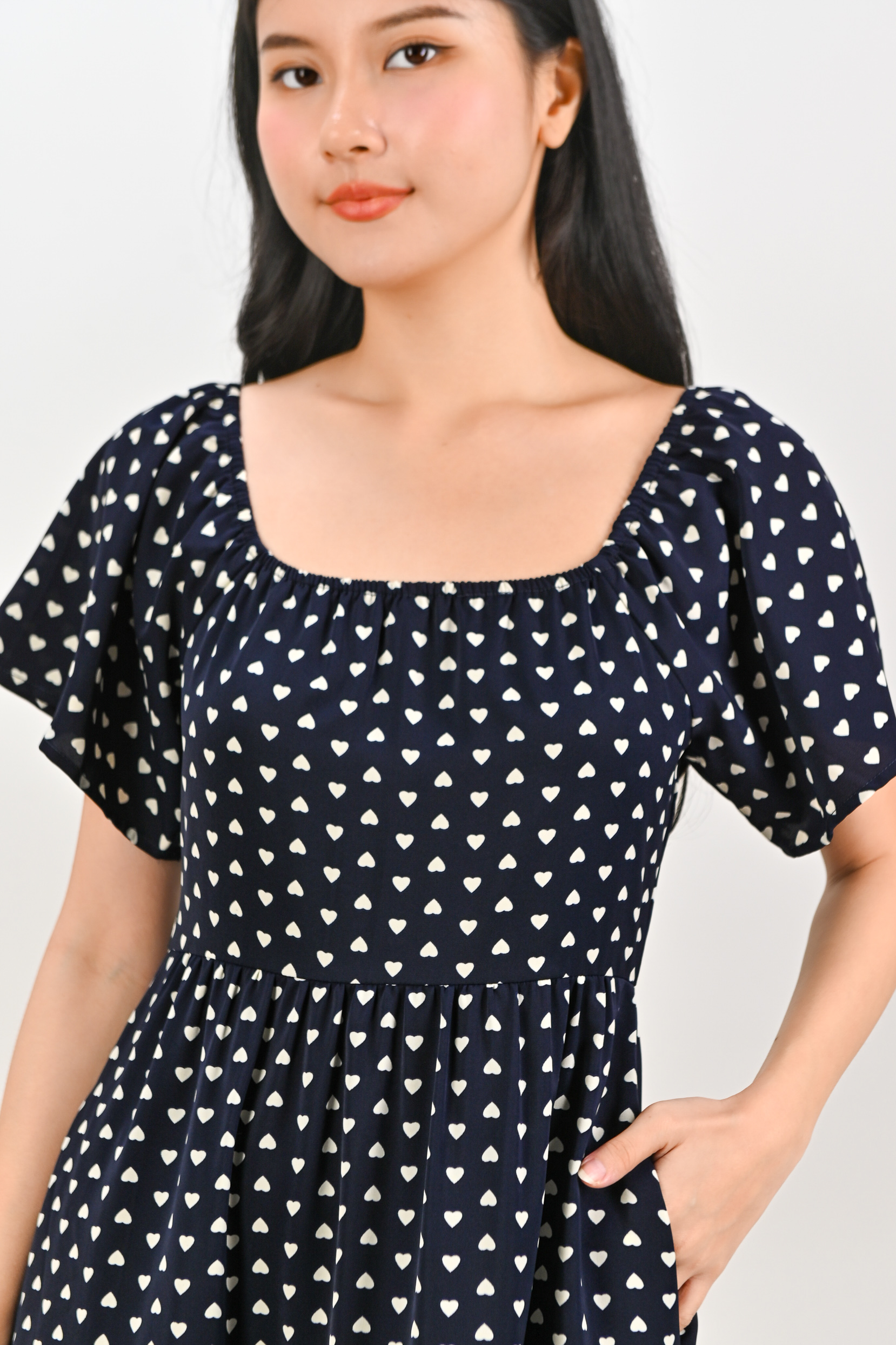NABI SCOOP-NECK TIERED DRESS IN NAVY HEARTS