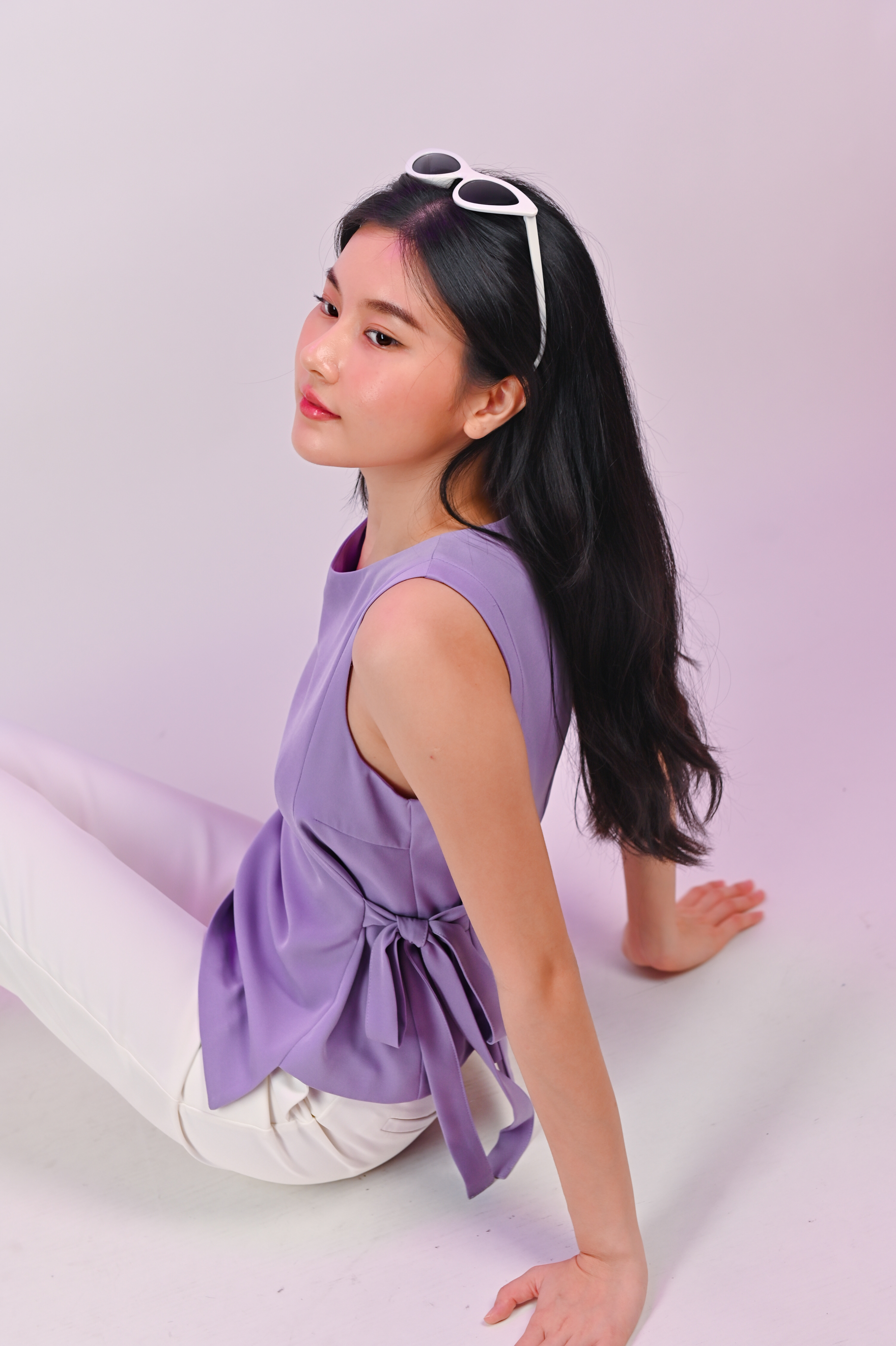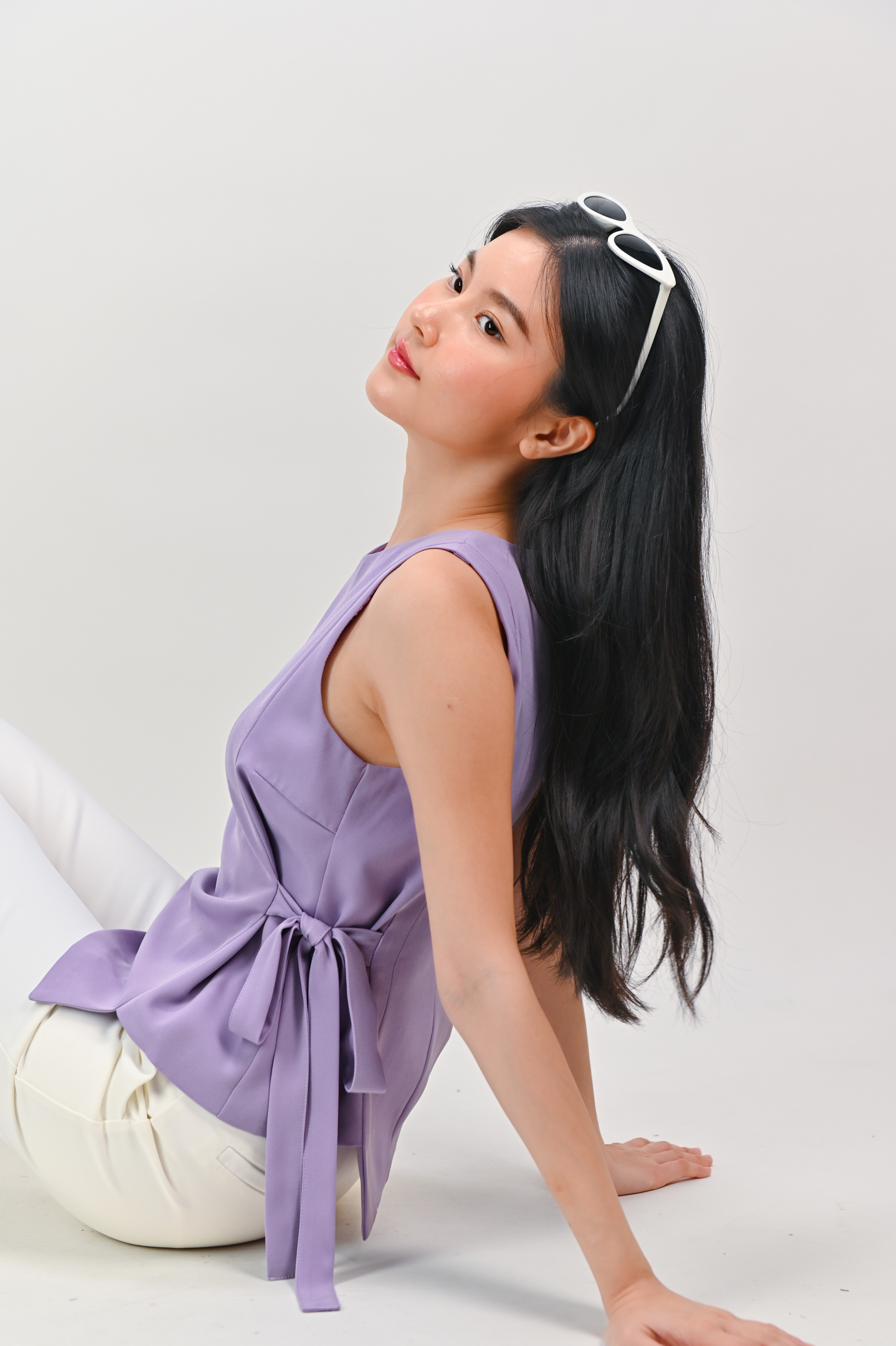 NADIA SLEEVELESS SIDE-TIE TOP IN LILAC