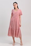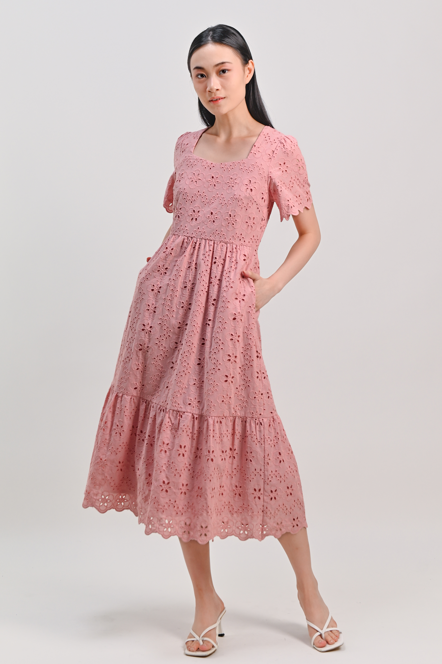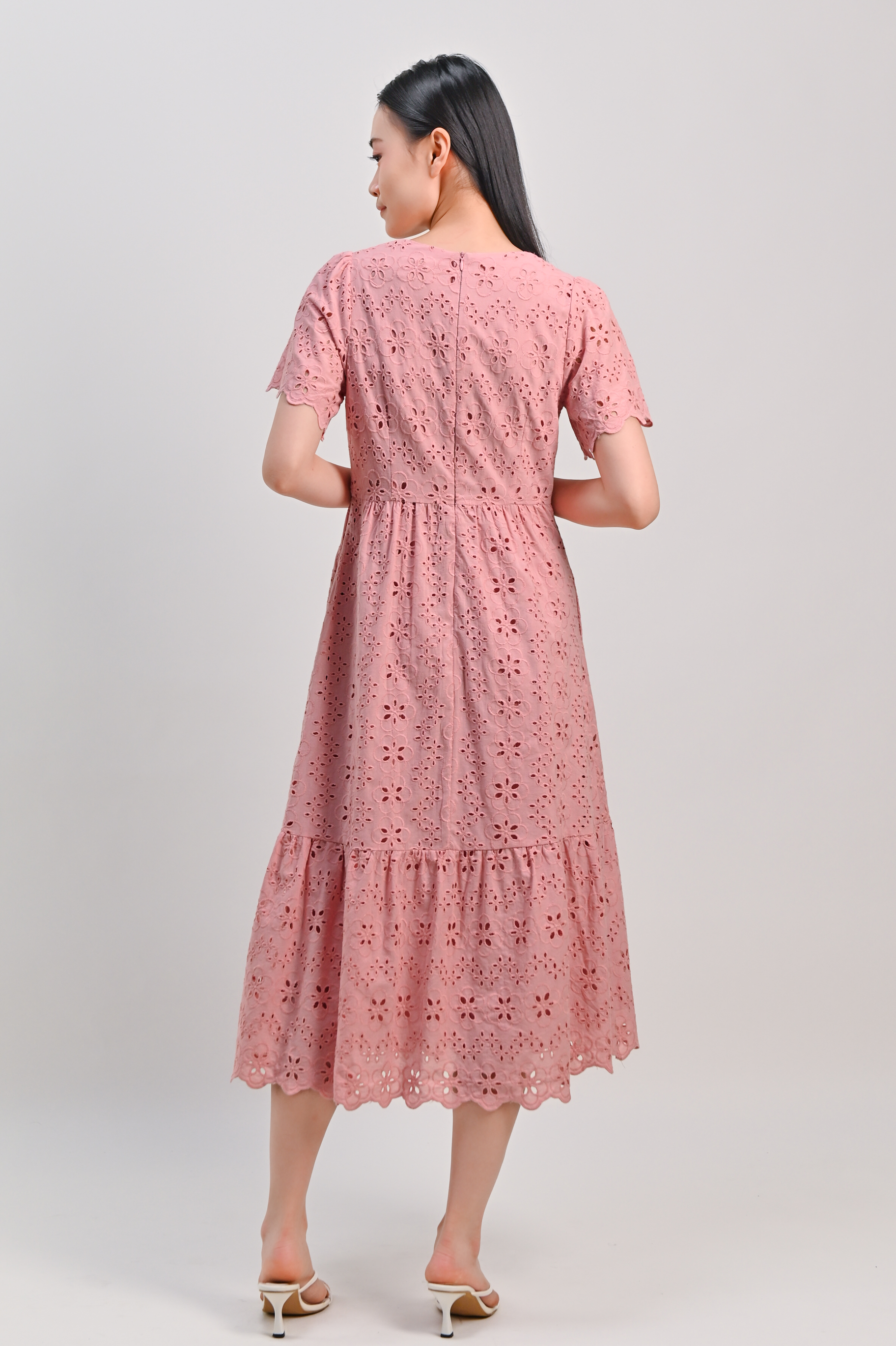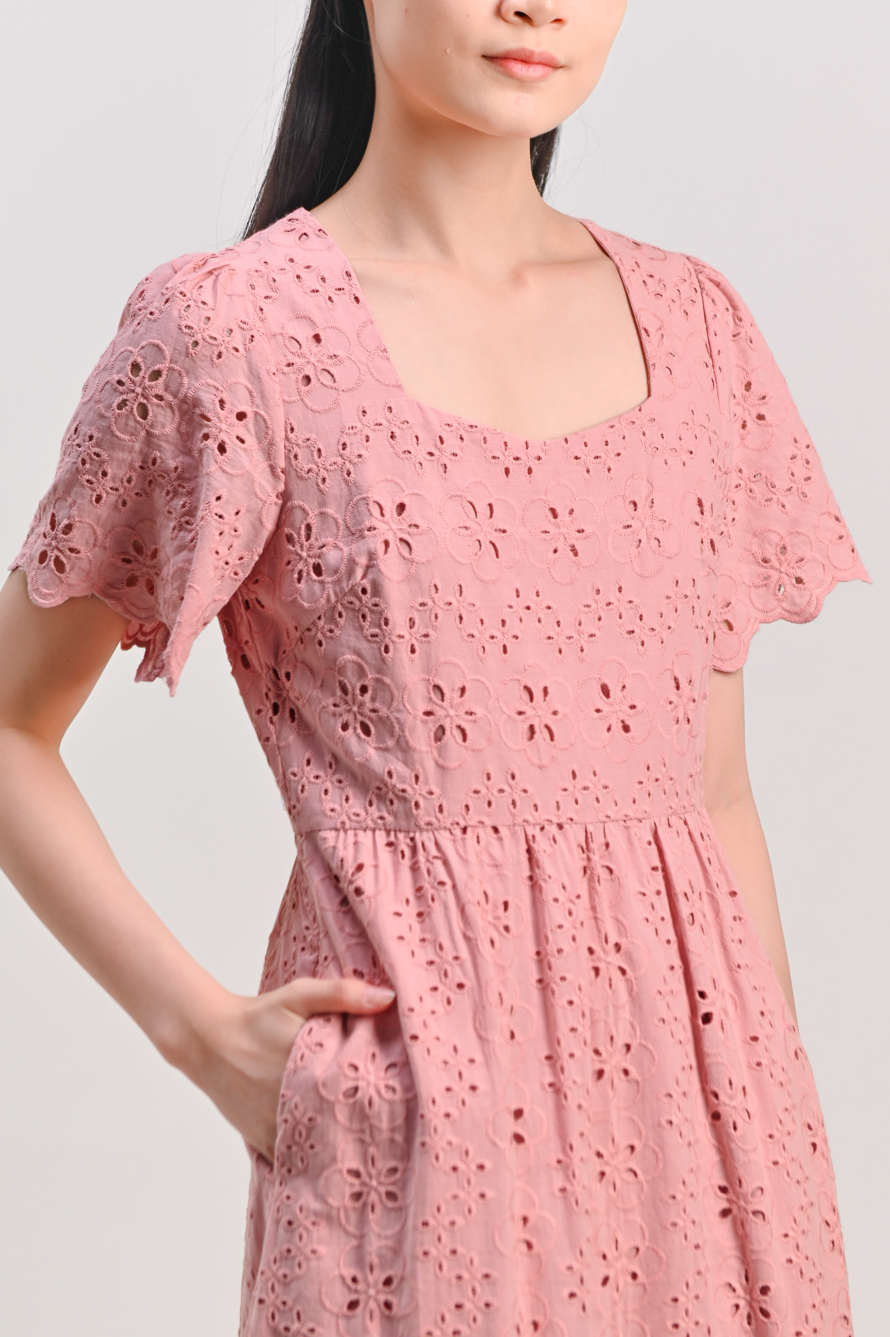 NARINA EYELET SLEEVED MIDI DRESS IN PINK