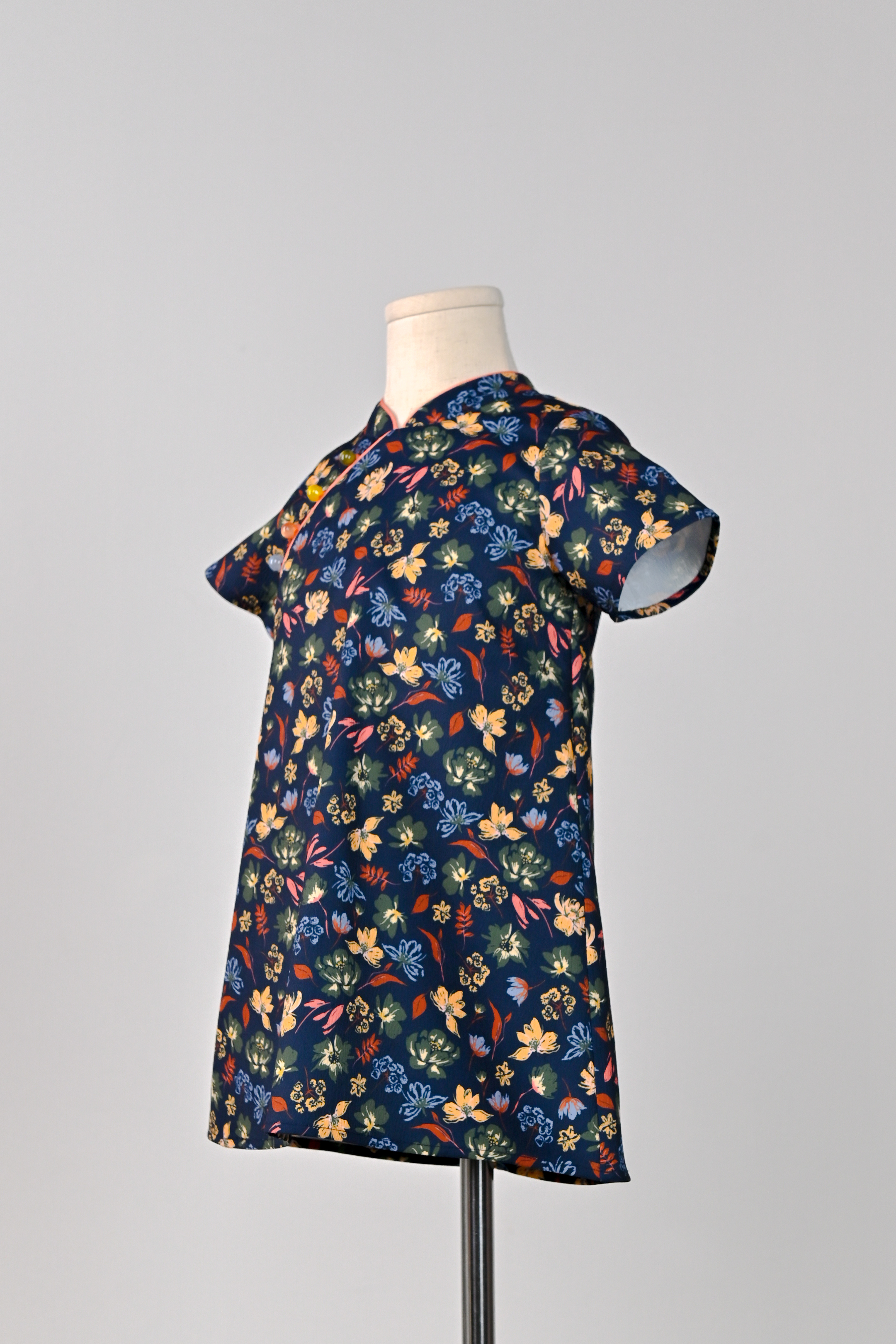 NAVY CRAYON FLORALS KIDS’ CHEONGSAM
