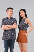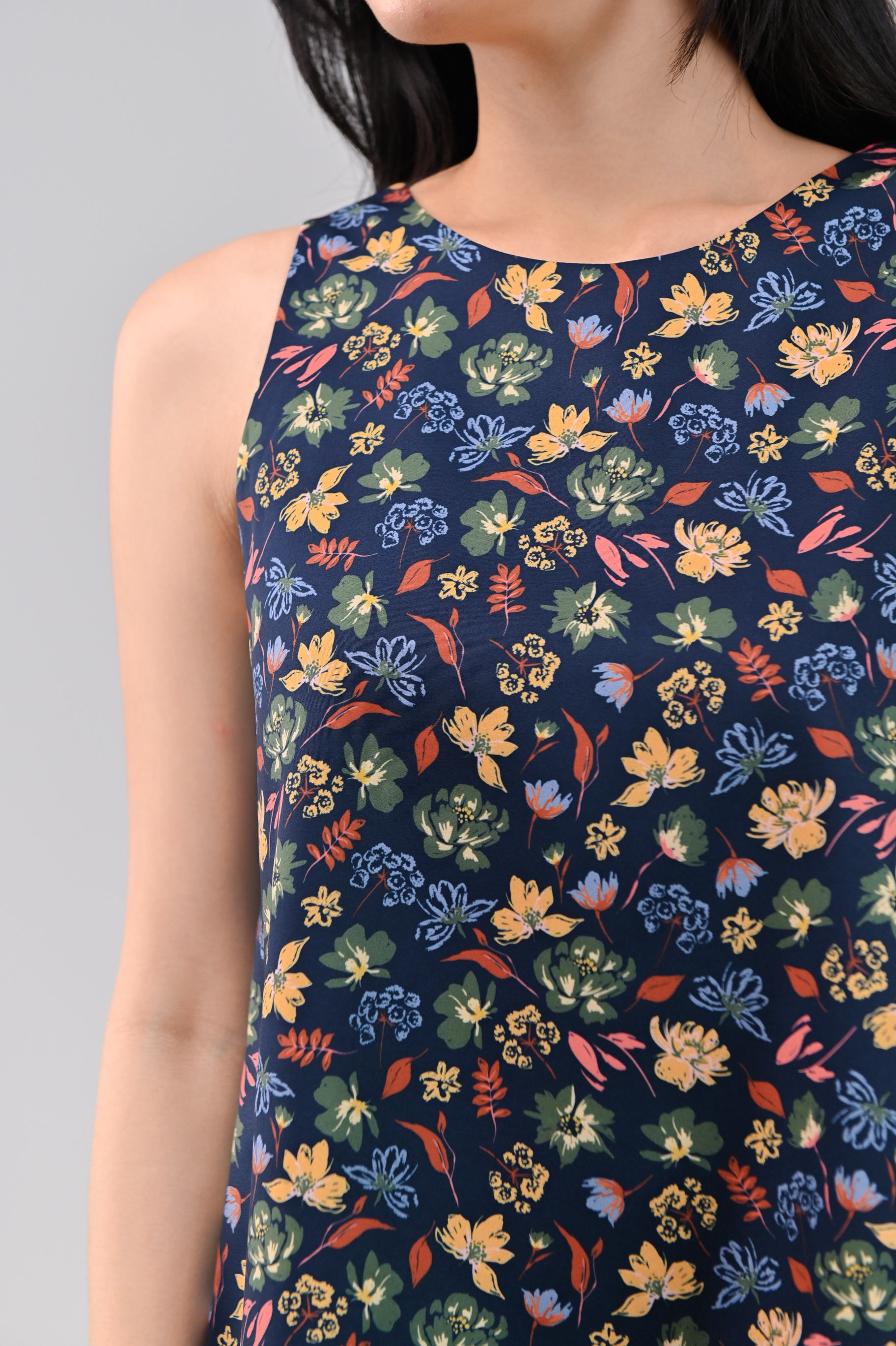 NAVY CRAYON FLORALS TWO-WAY TOP