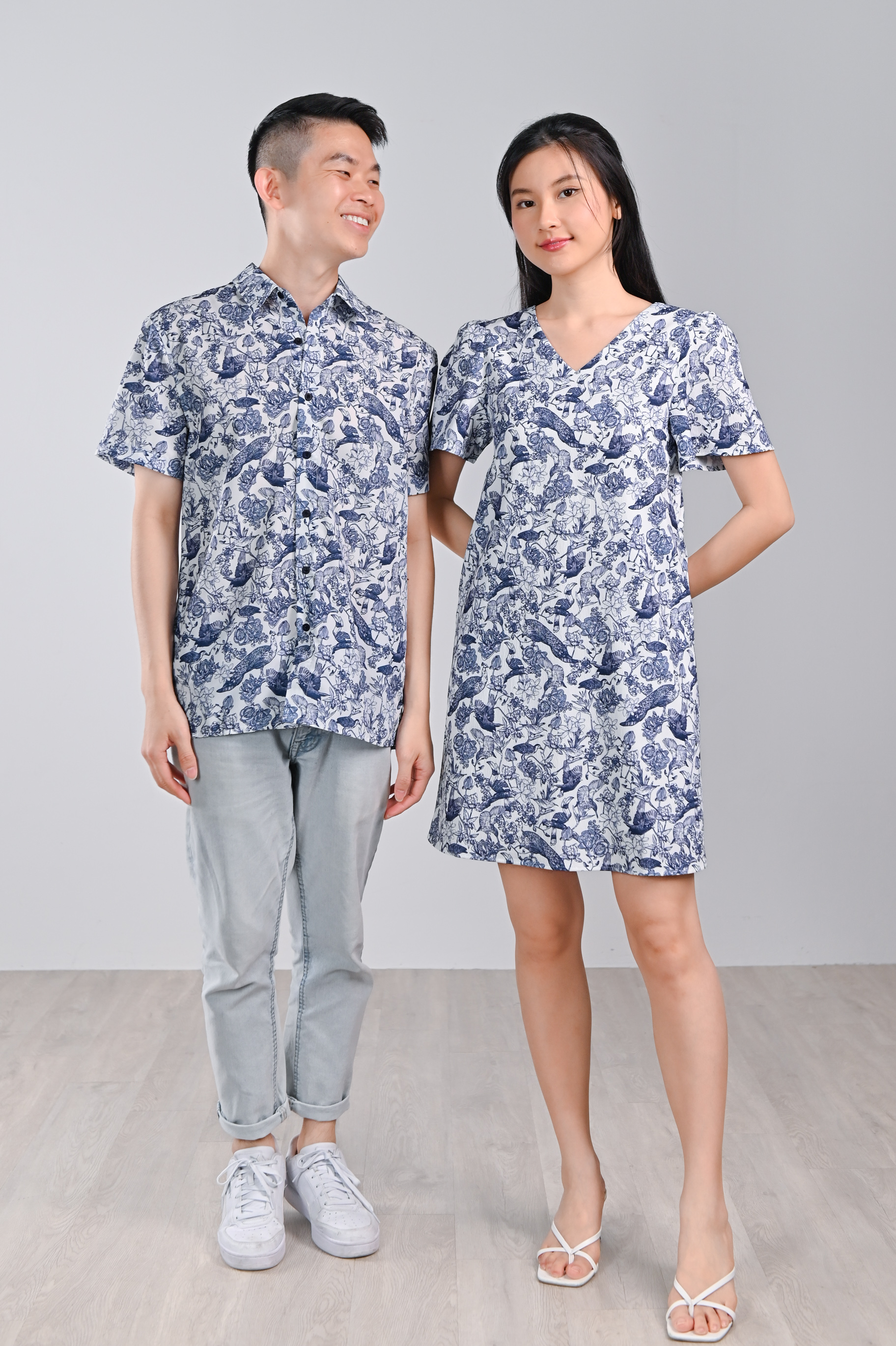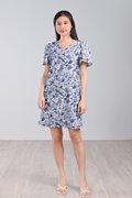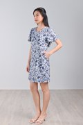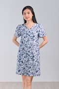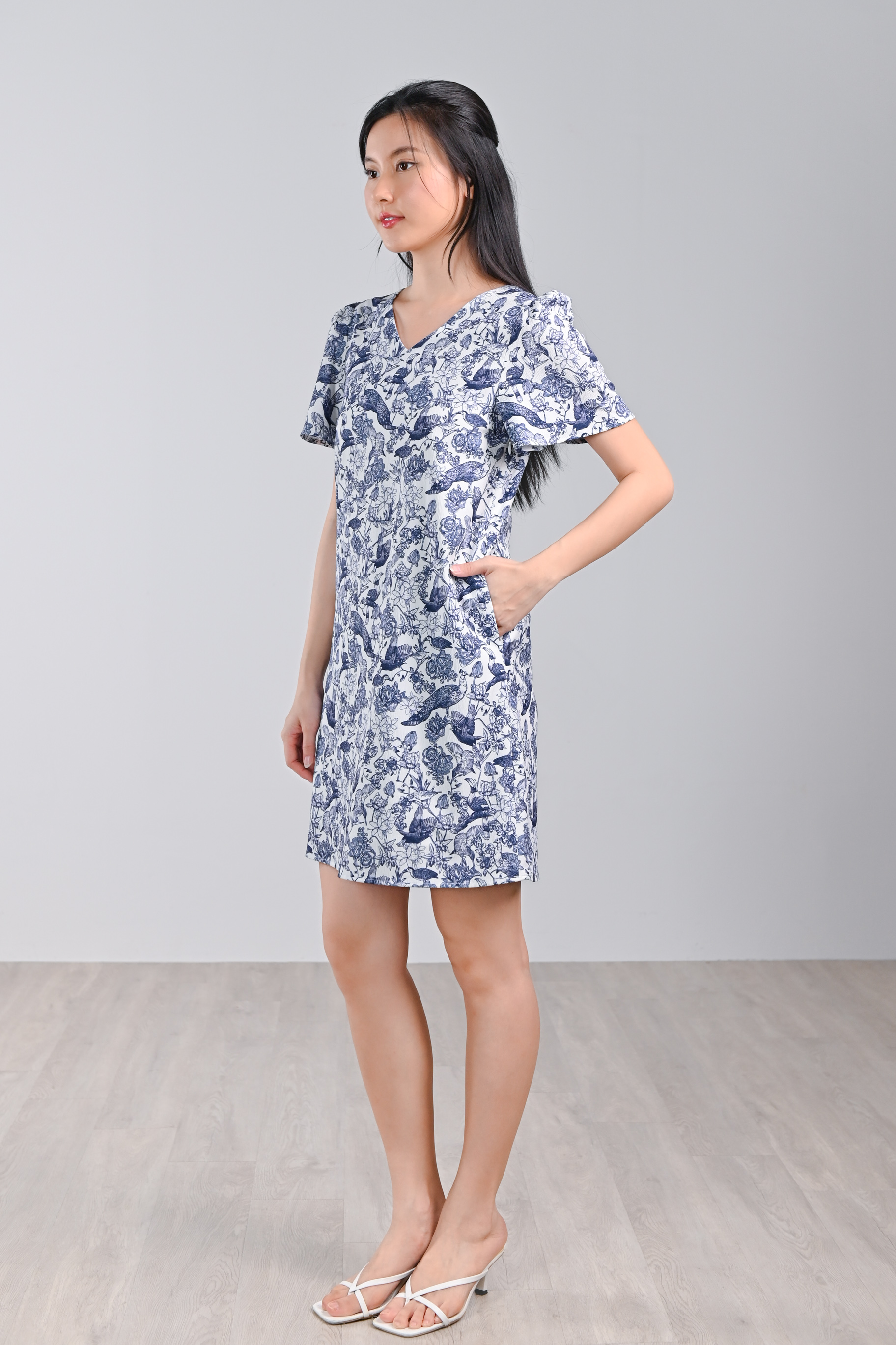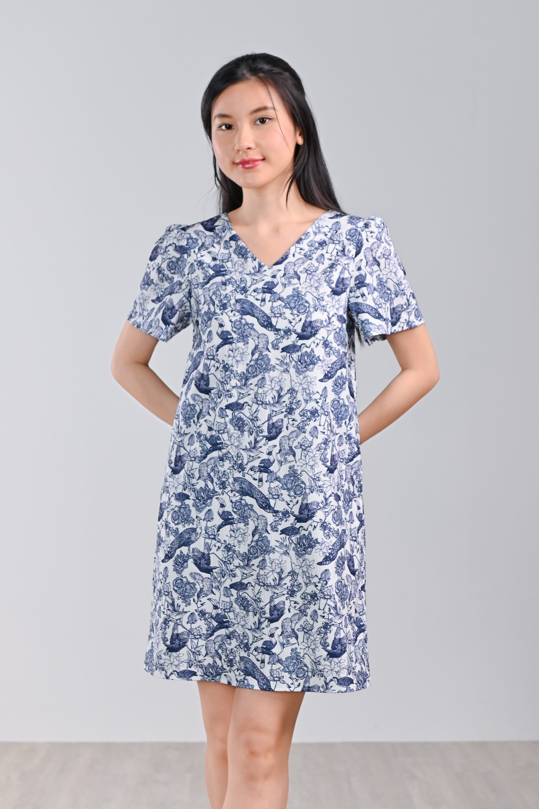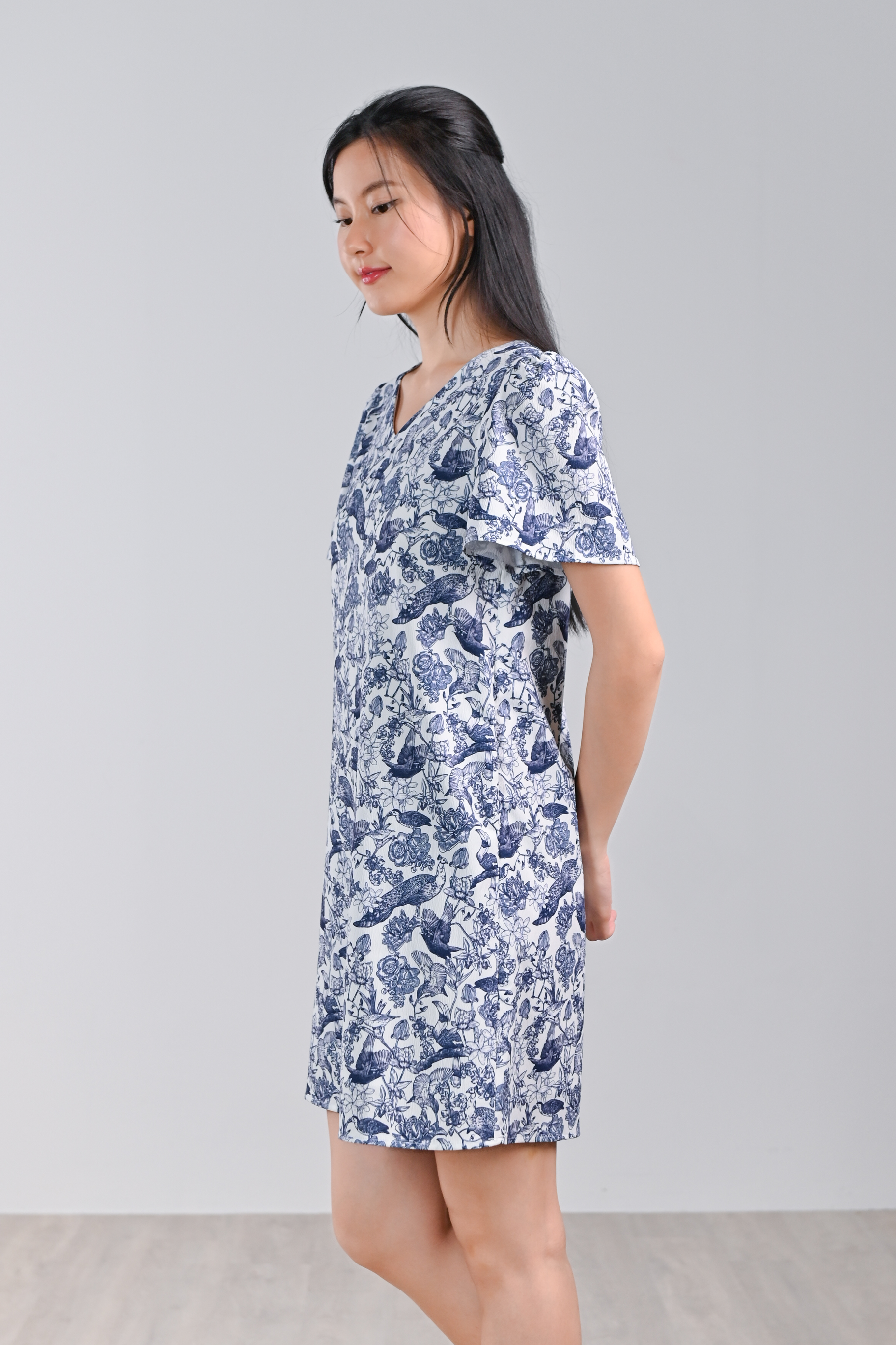 NAVY FEATHERED TALES SLEEVED SHIFT DRESS