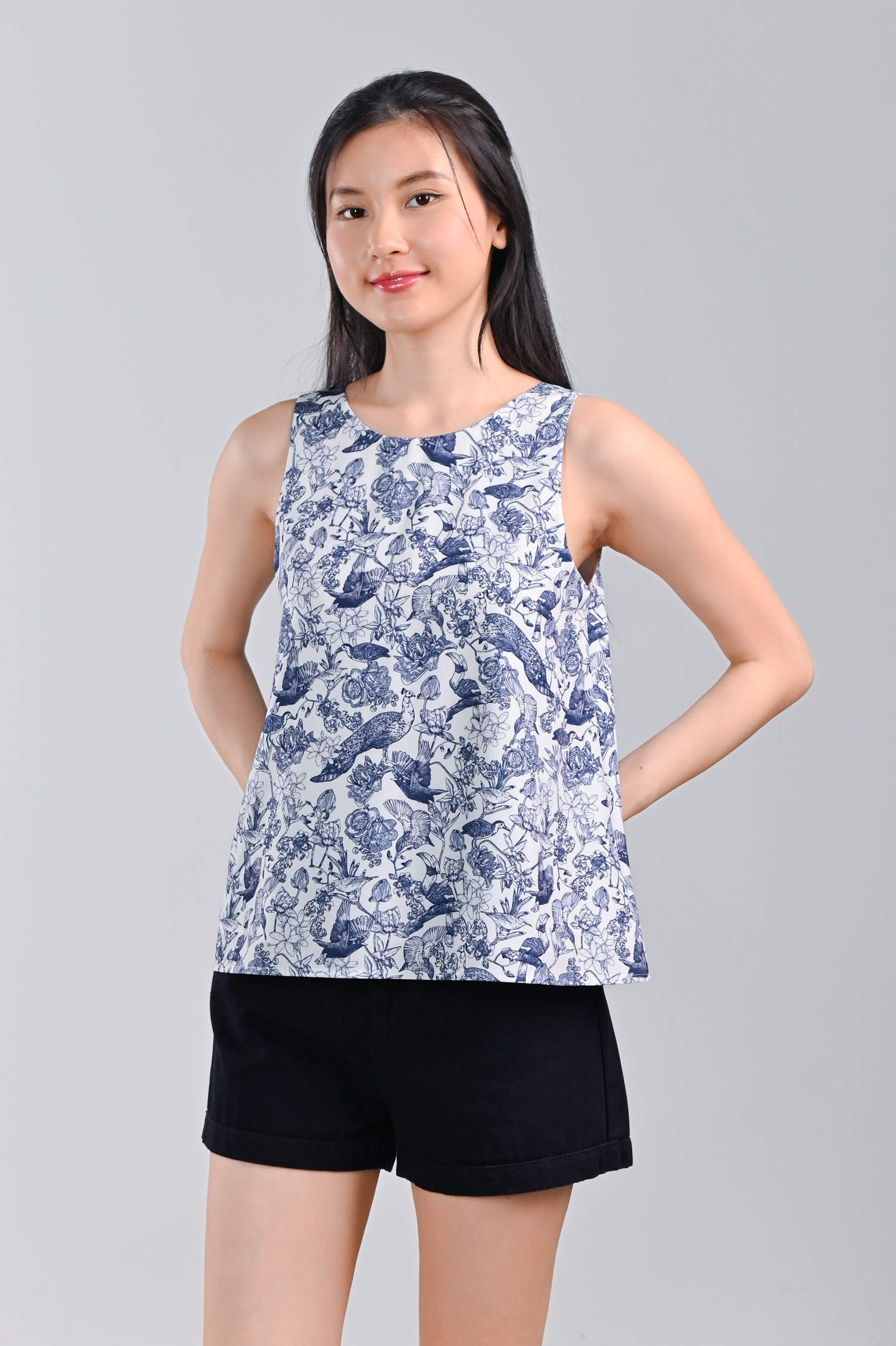 NAVY FEATHERED TALES TWO-WAY TOP