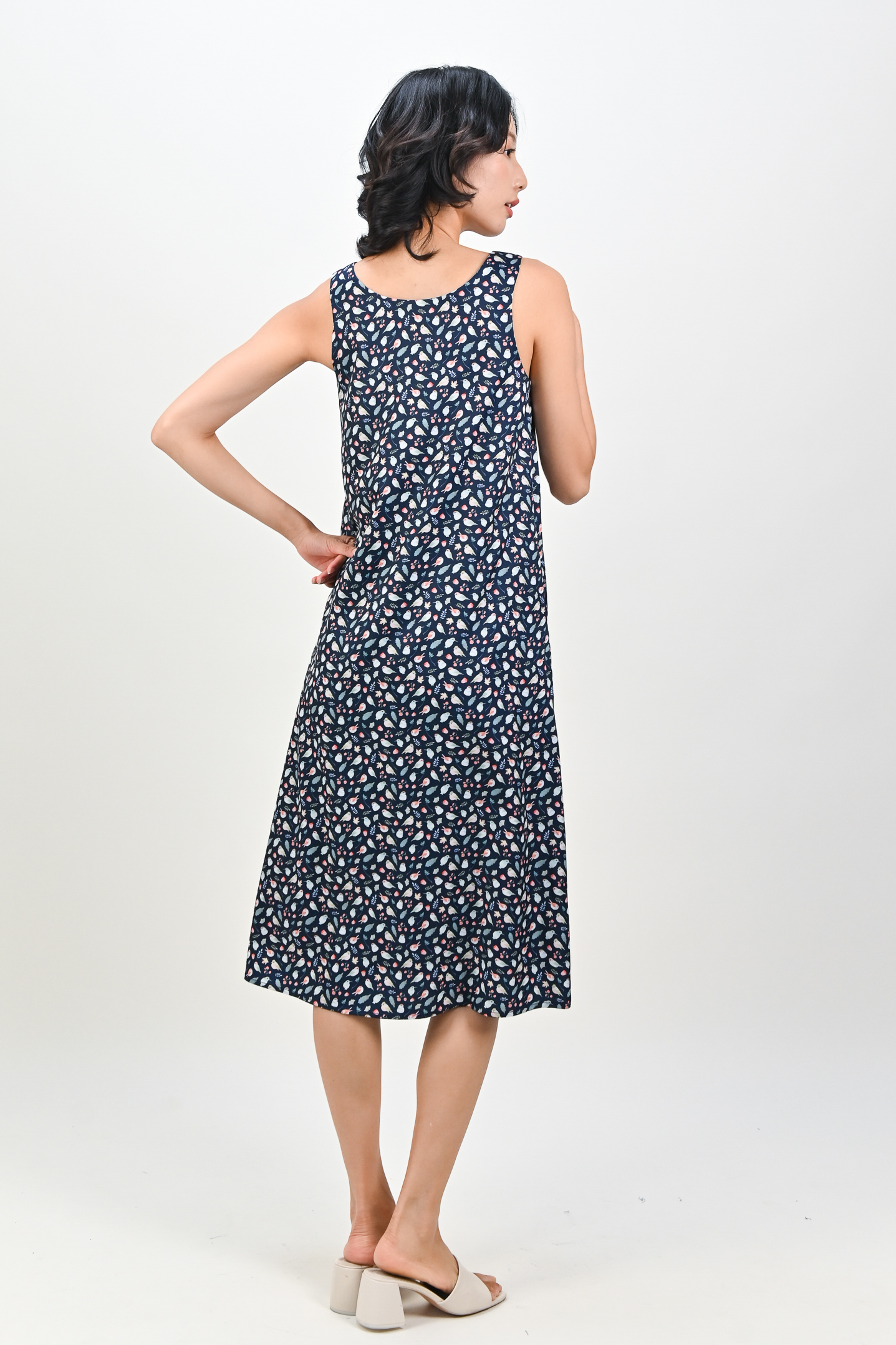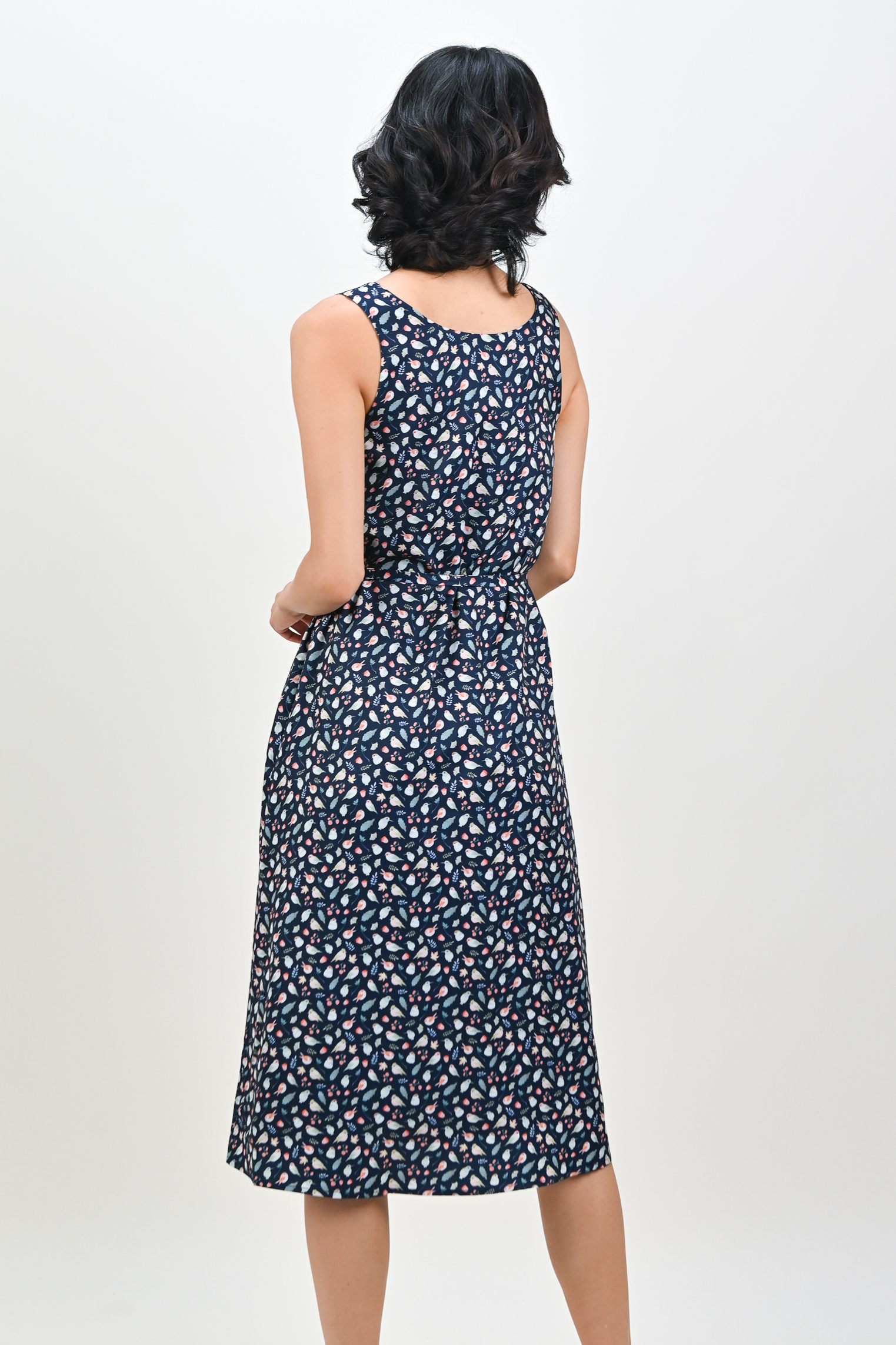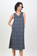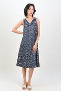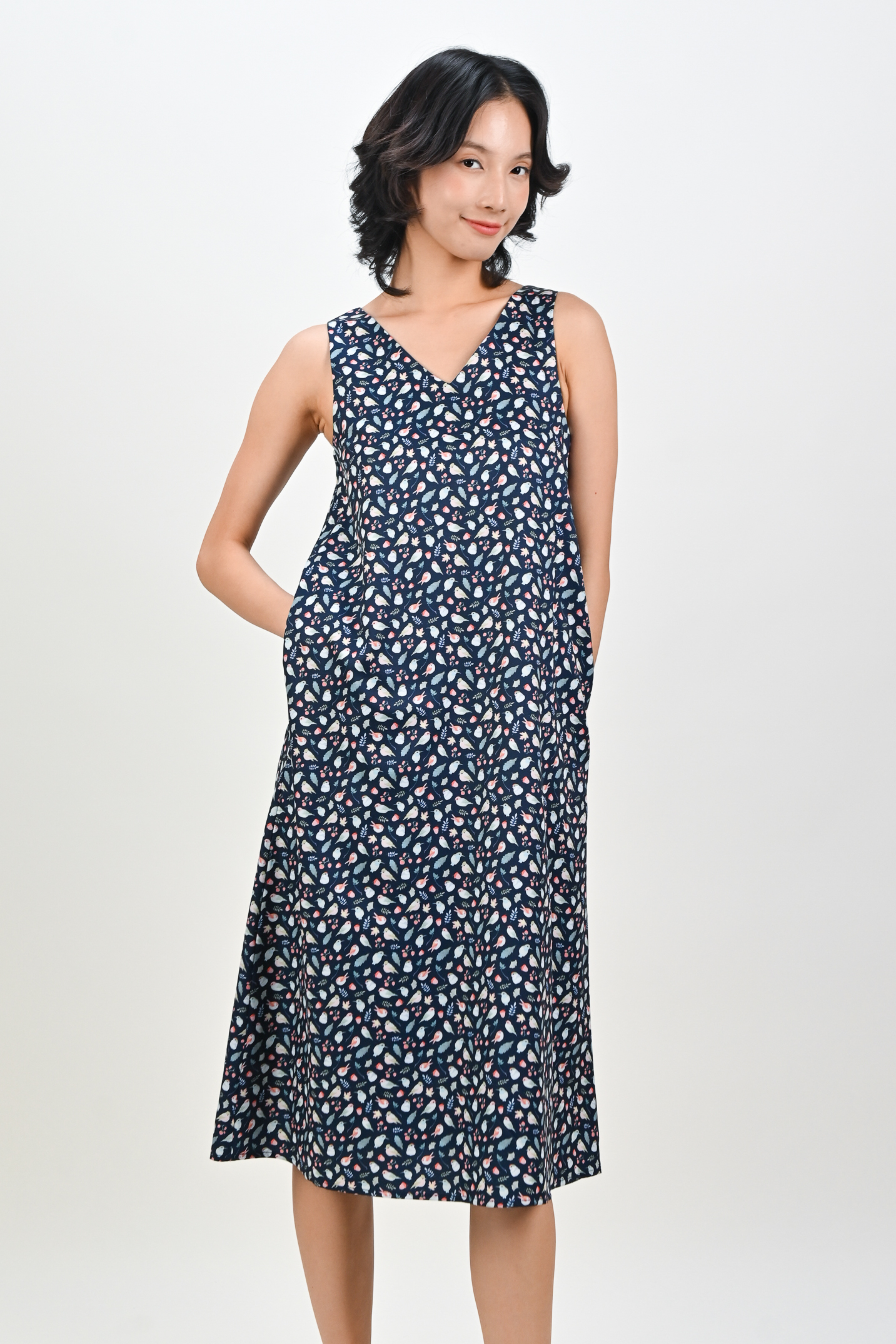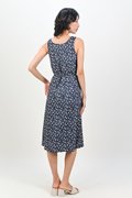 NAVY FRIENDS OF THE FOREST TWO-WAY MIDI DRESS