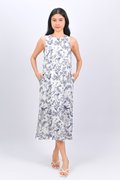 NAVY HUMMINGBIRD NEW SIDE-SLIT MIDI DRESS