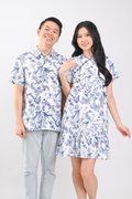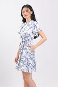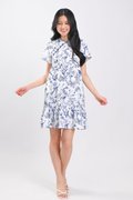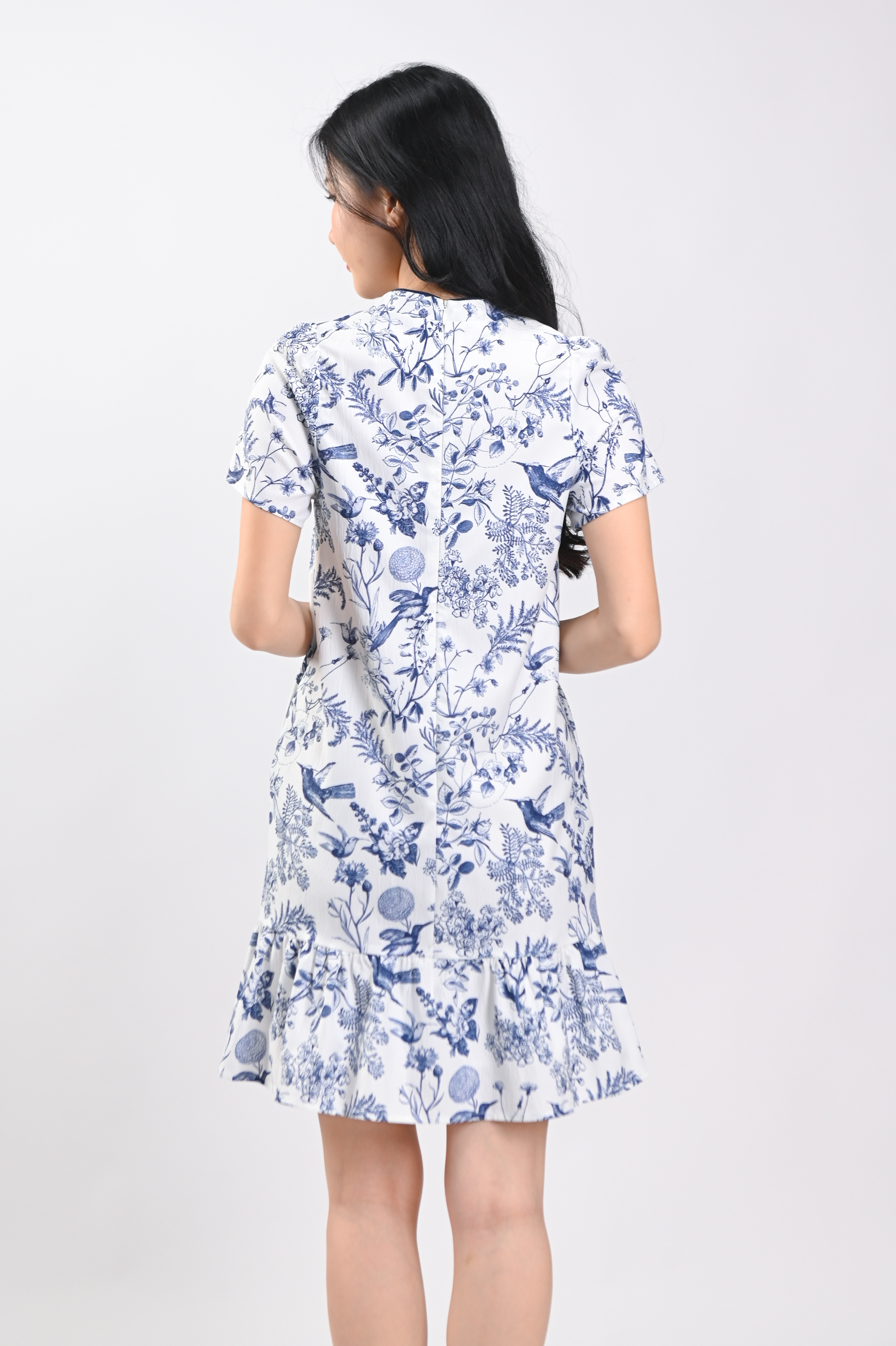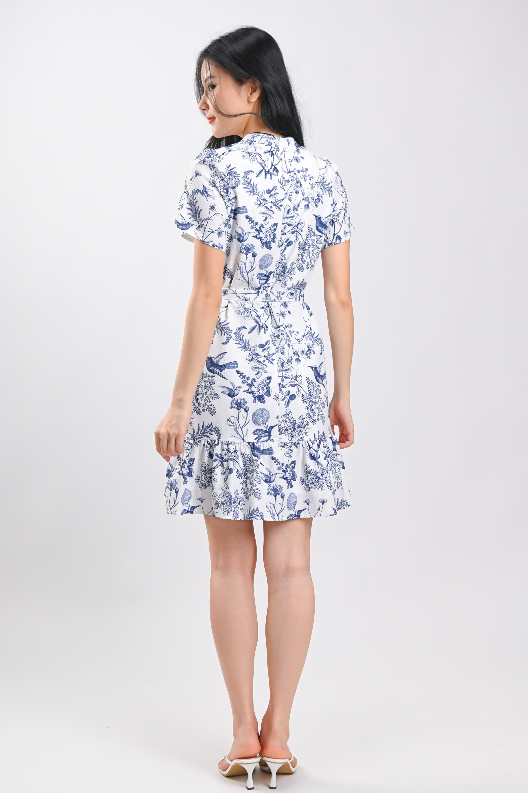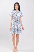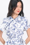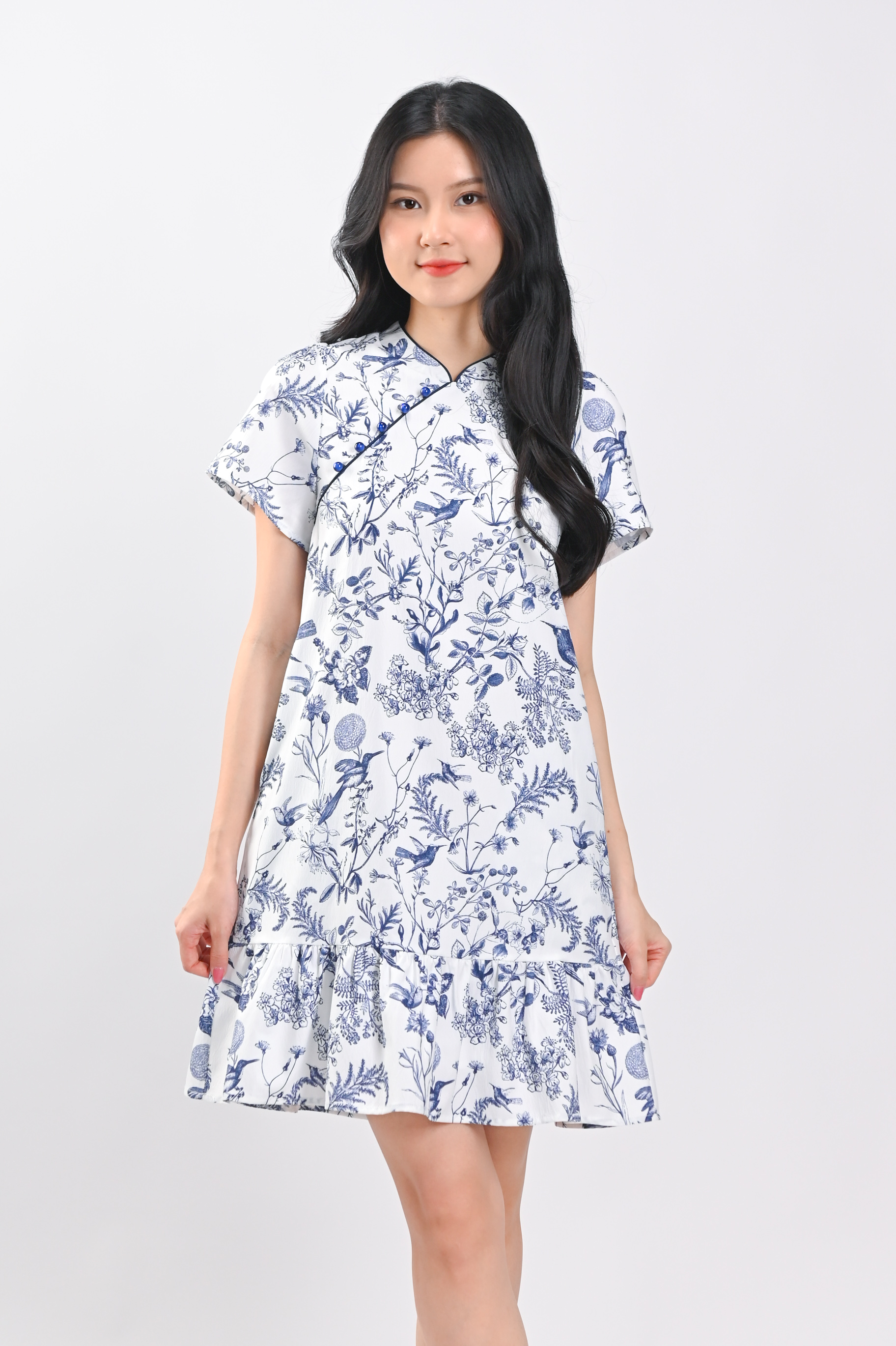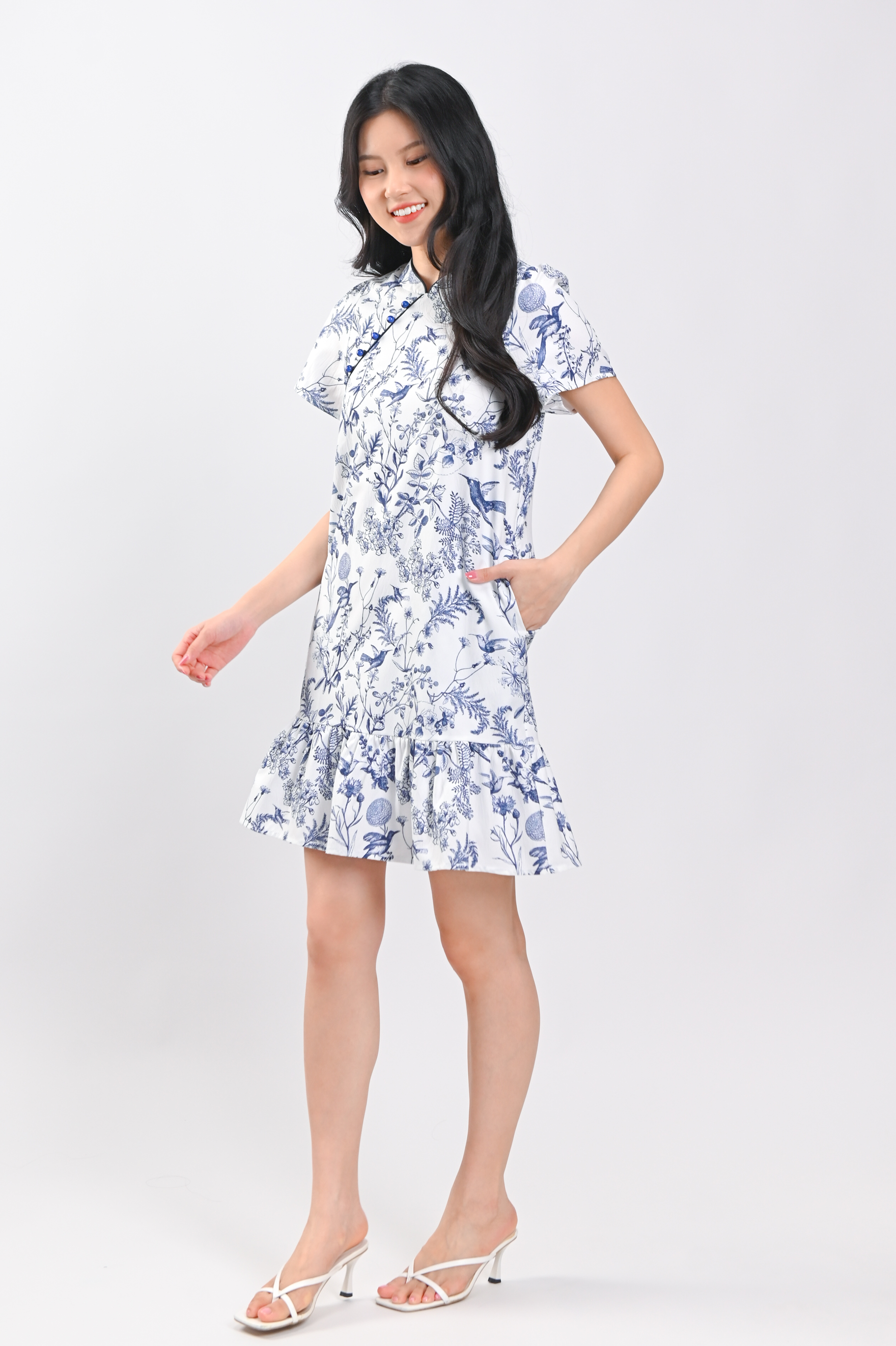 NAVY HUMMINGBIRD SLEEVED FLOUNCE CHEONGSAM DRESS