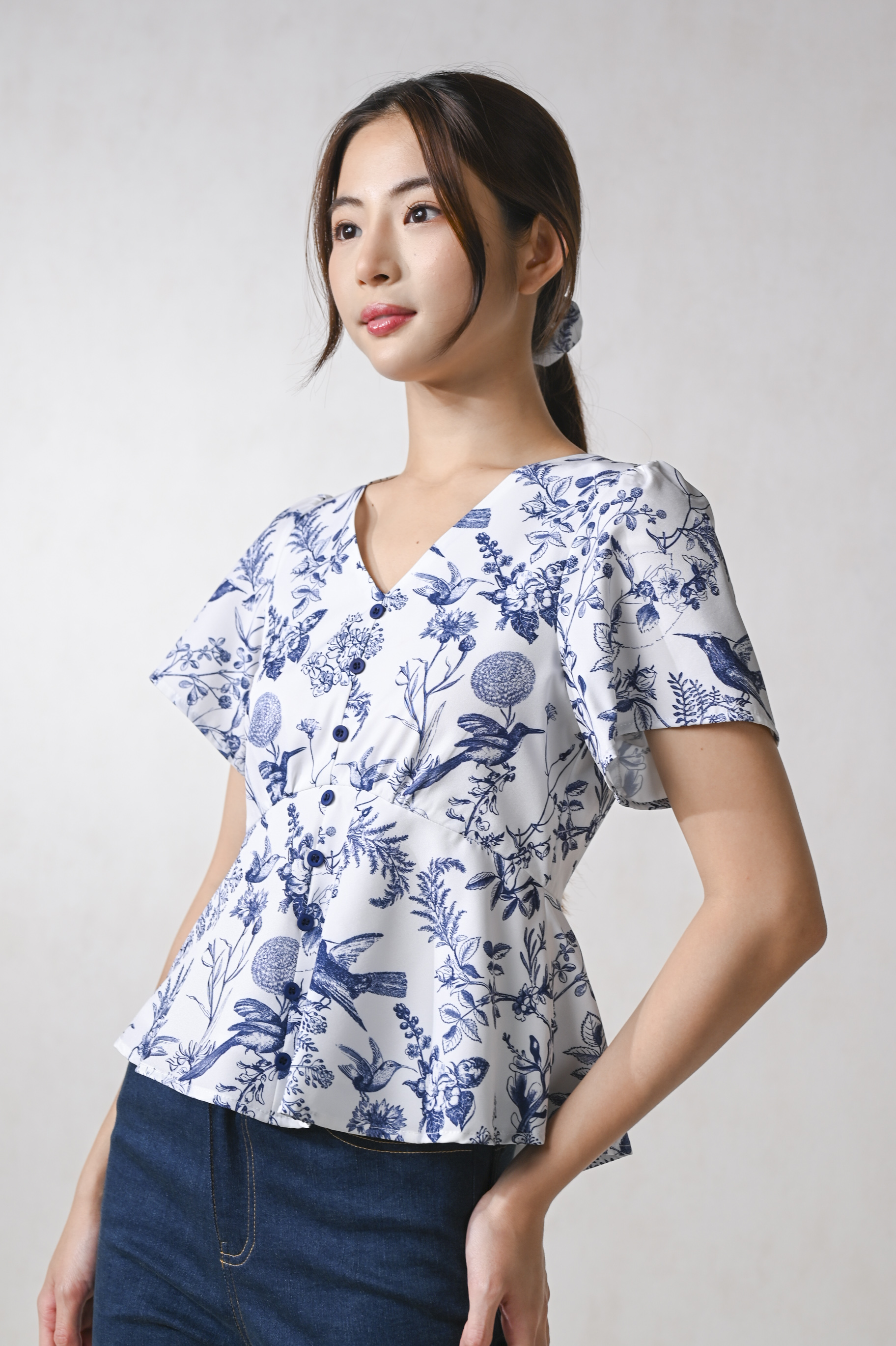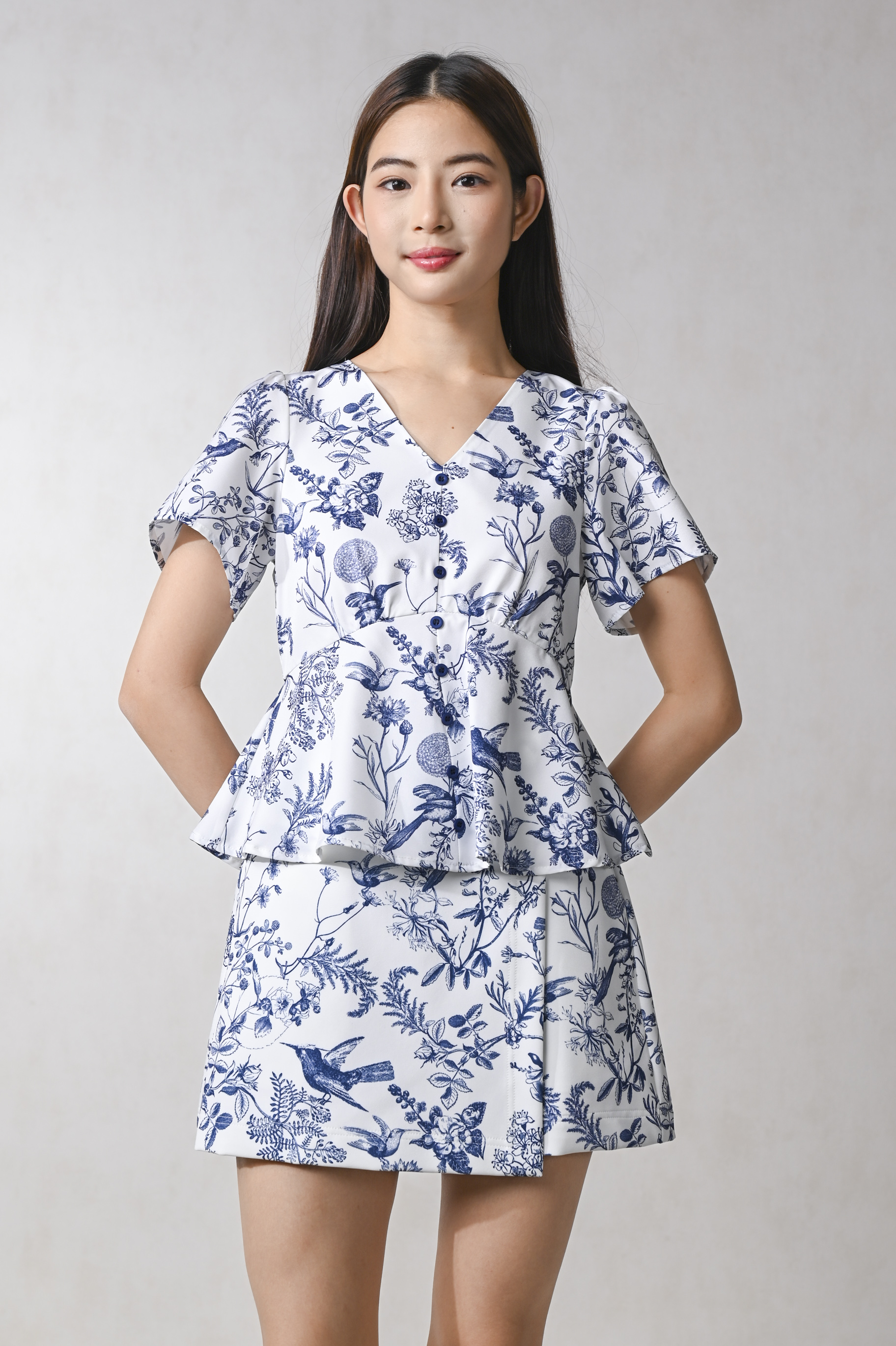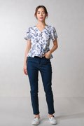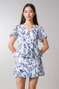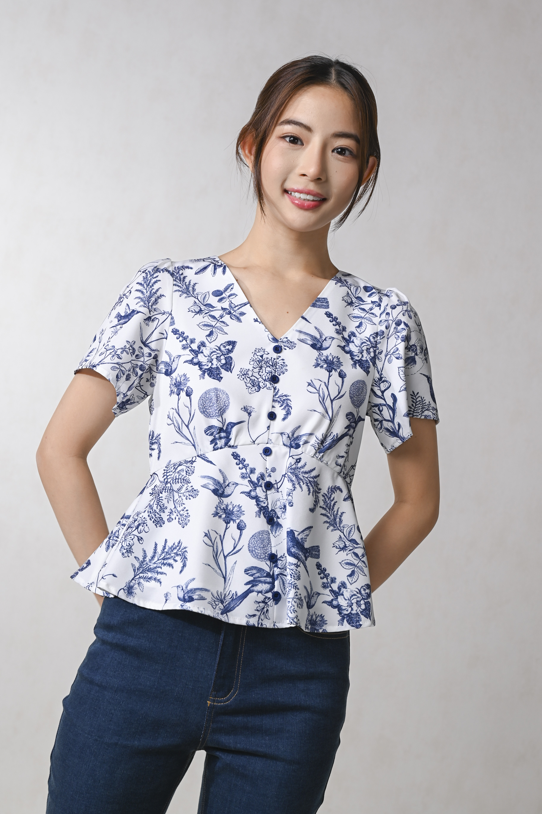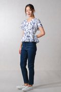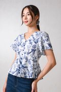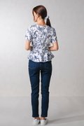 NAVY HUMMINGBIRD SLEEVED PEPLUM TOP