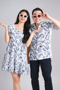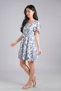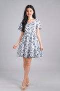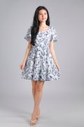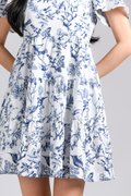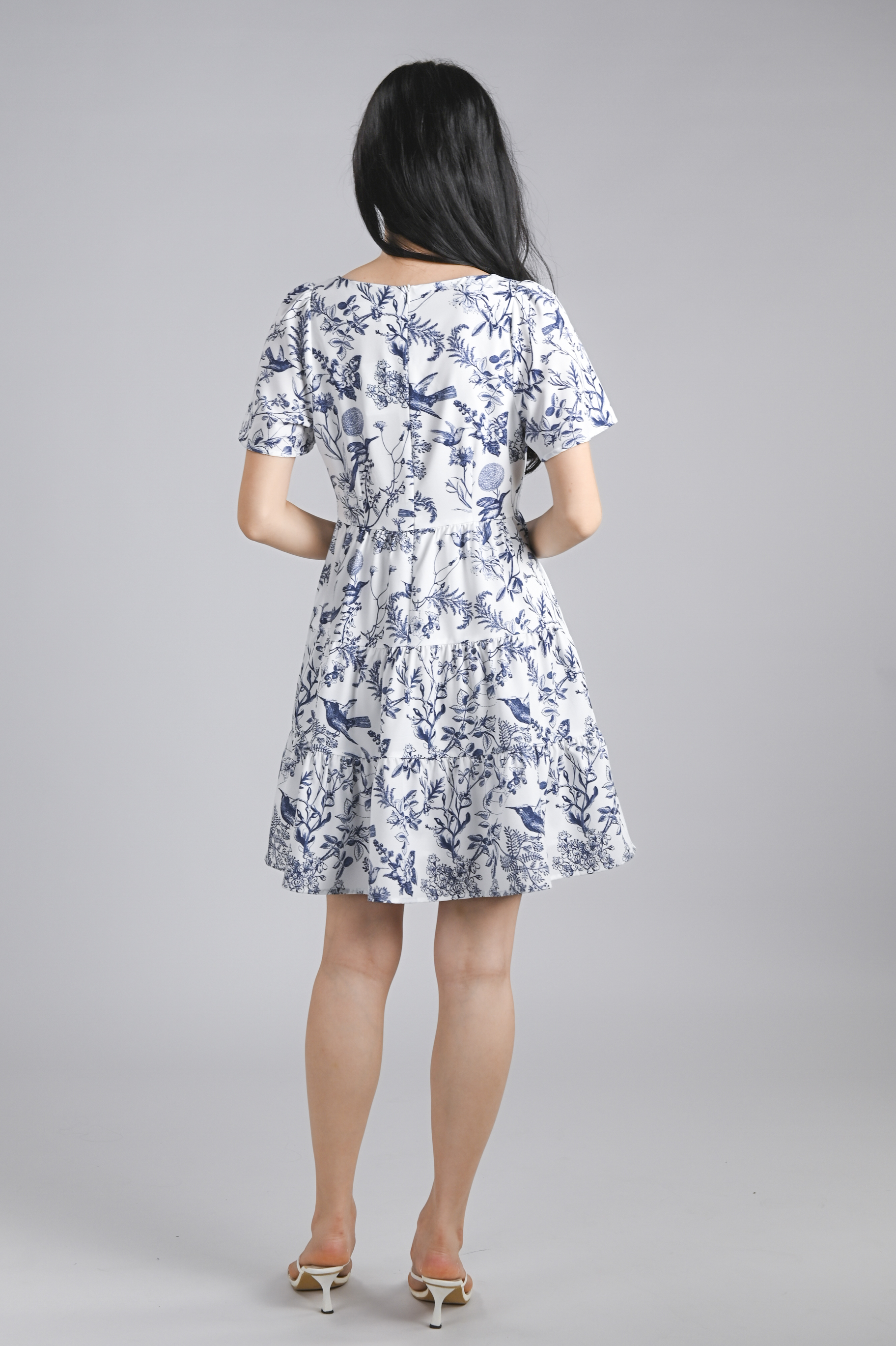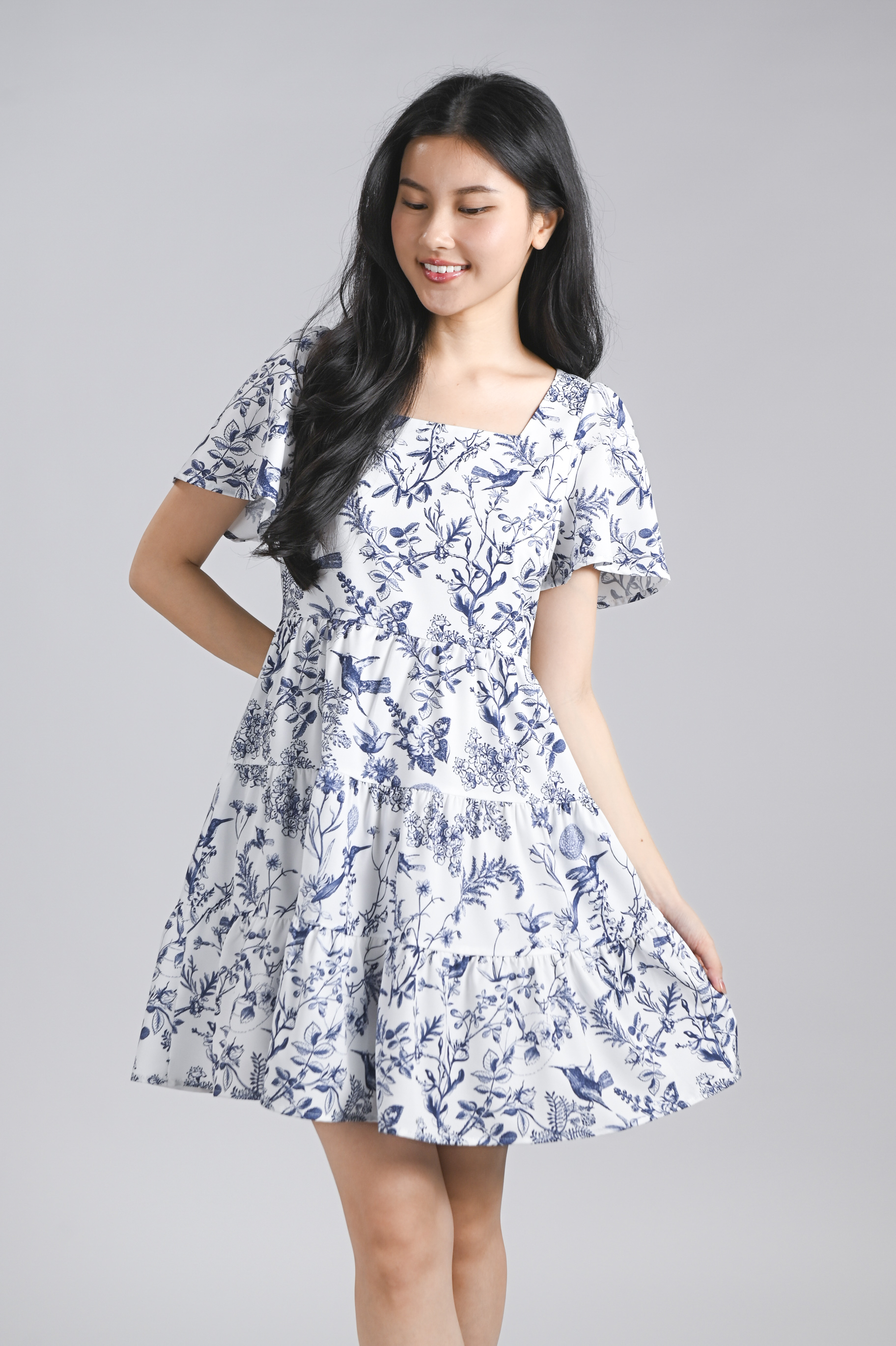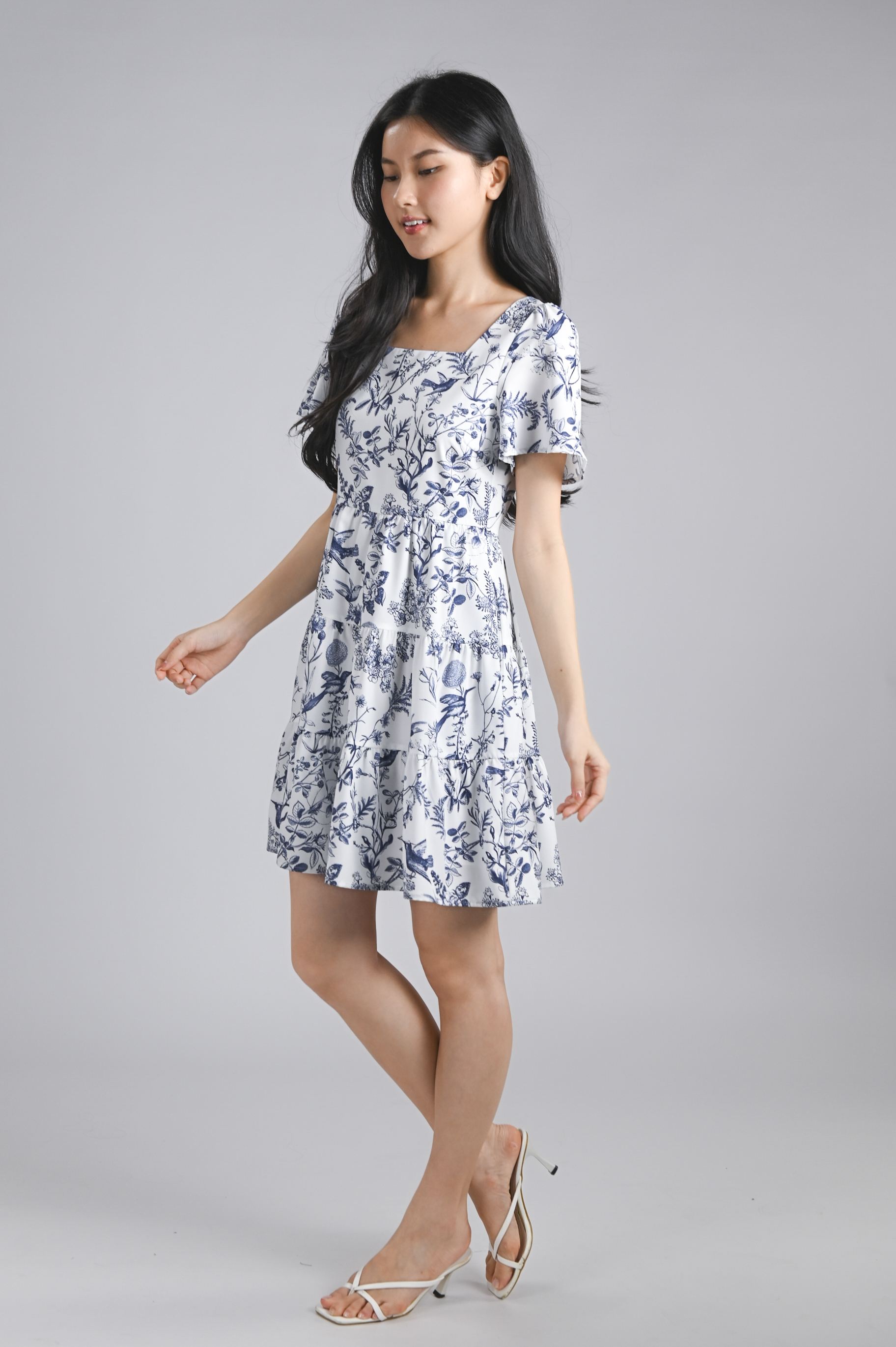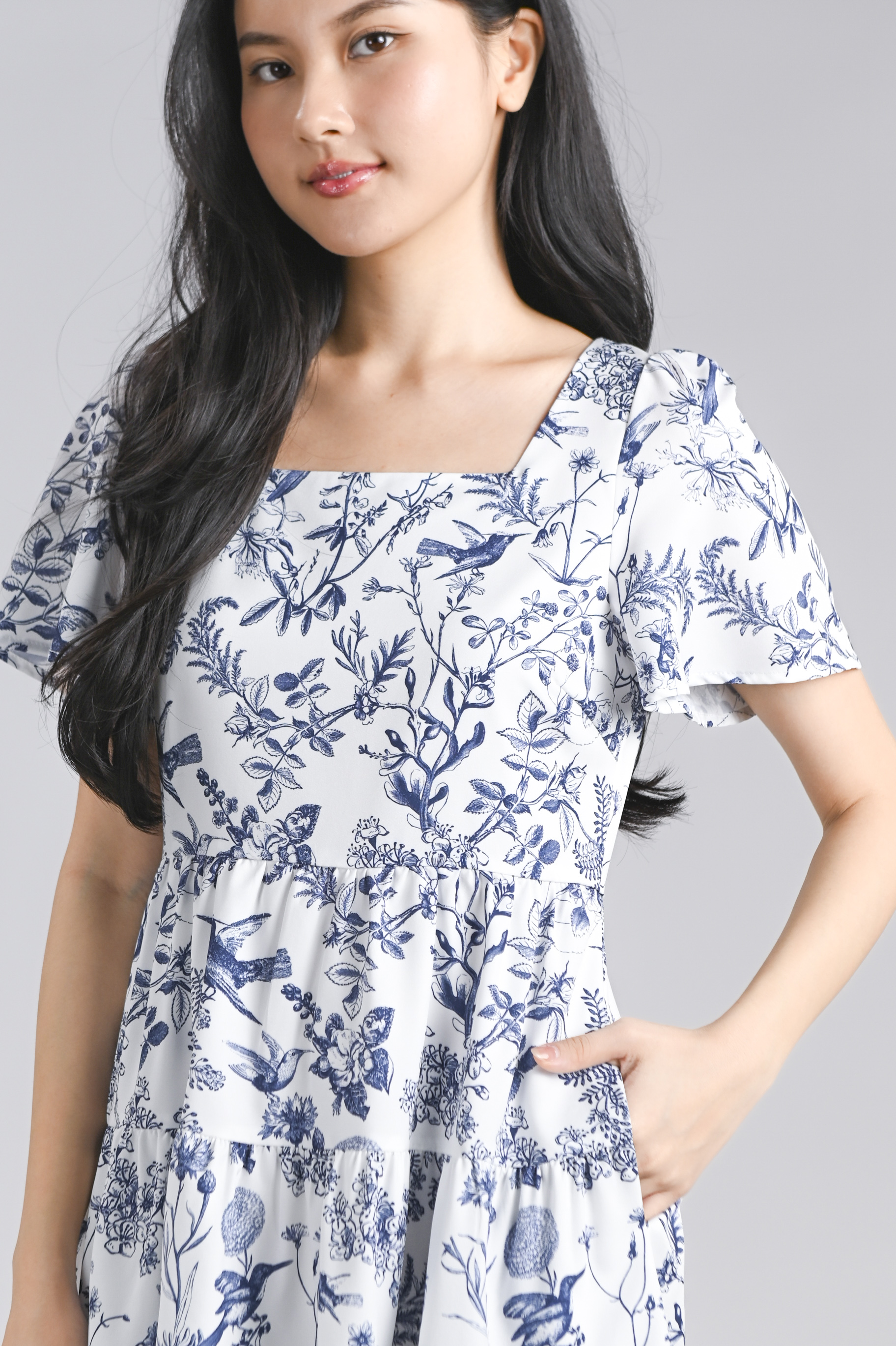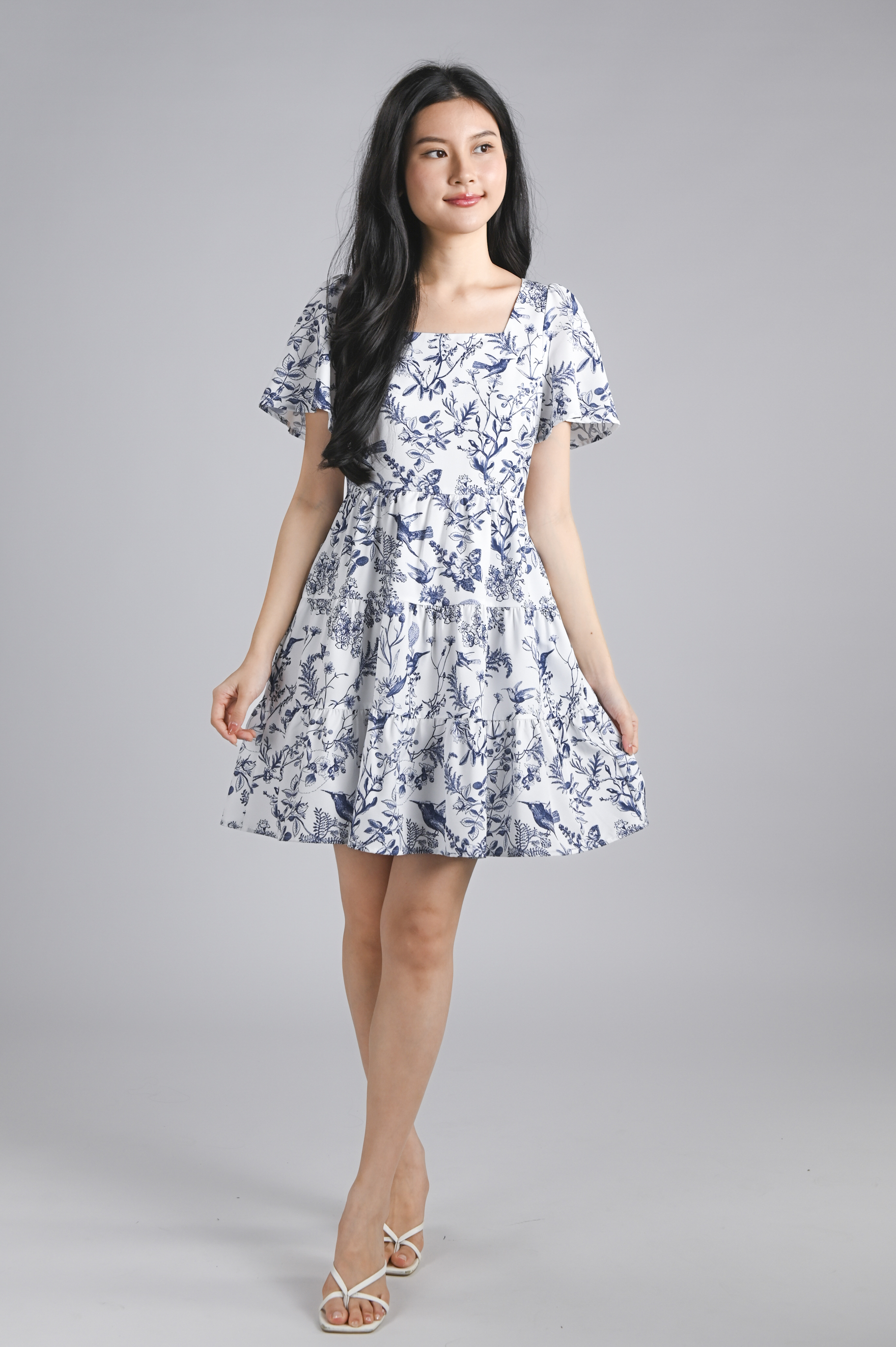 NAVY HUMMINGBIRD SQUARE-NECK BABYDOLL DRESS