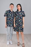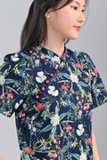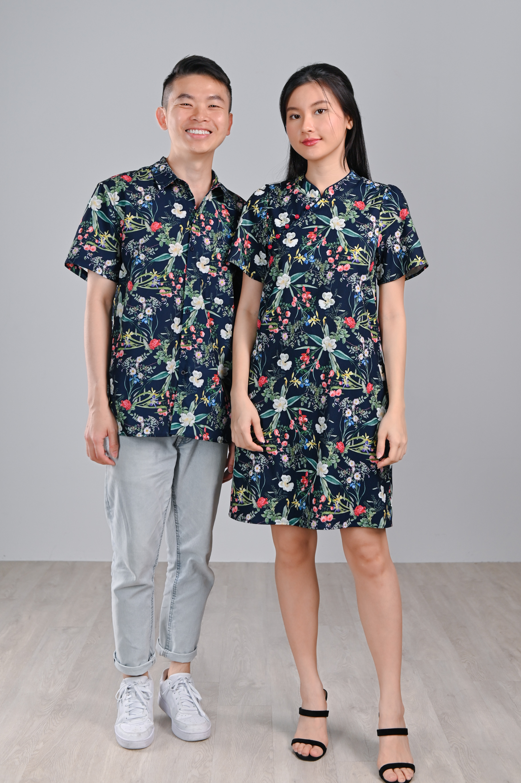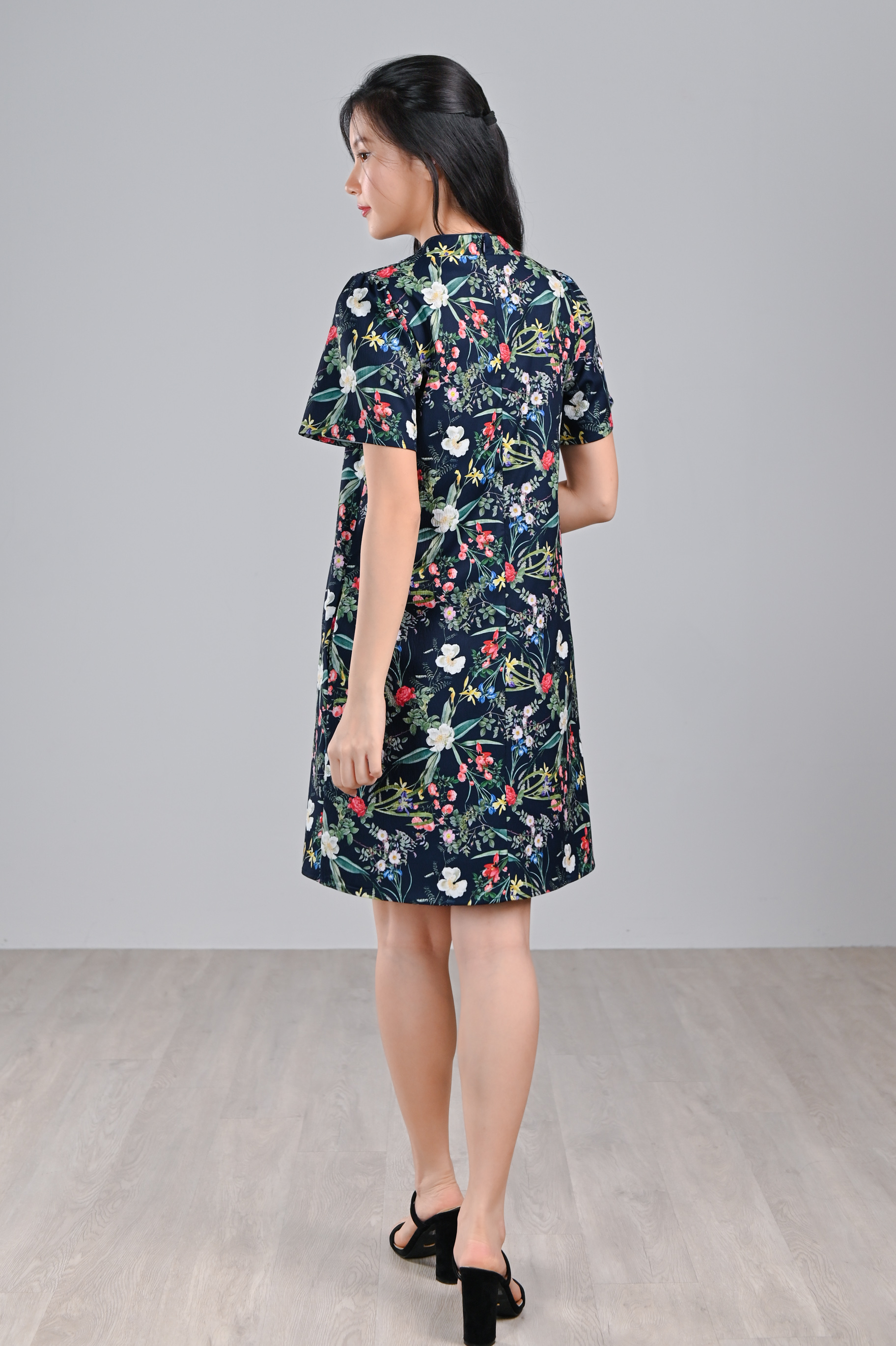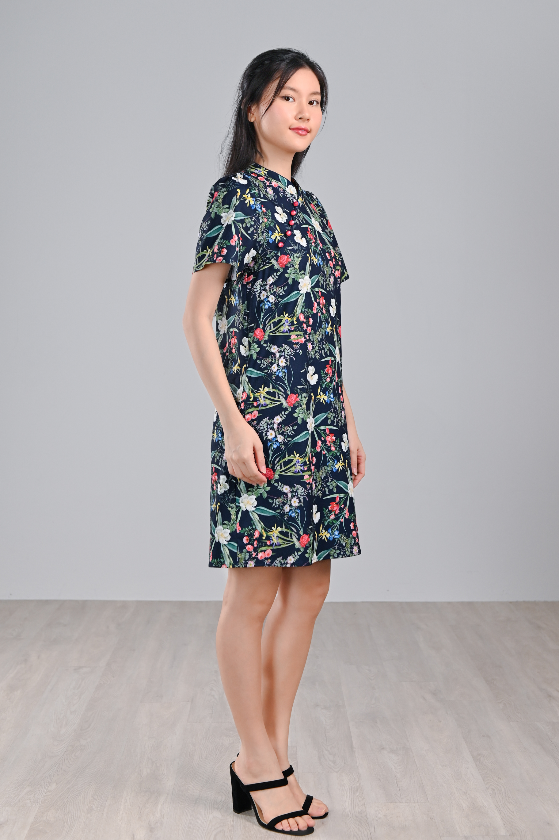 NAVY LUSH FLORALS SLEEVED SHIFT CHEONGSAM